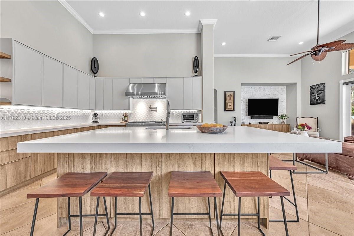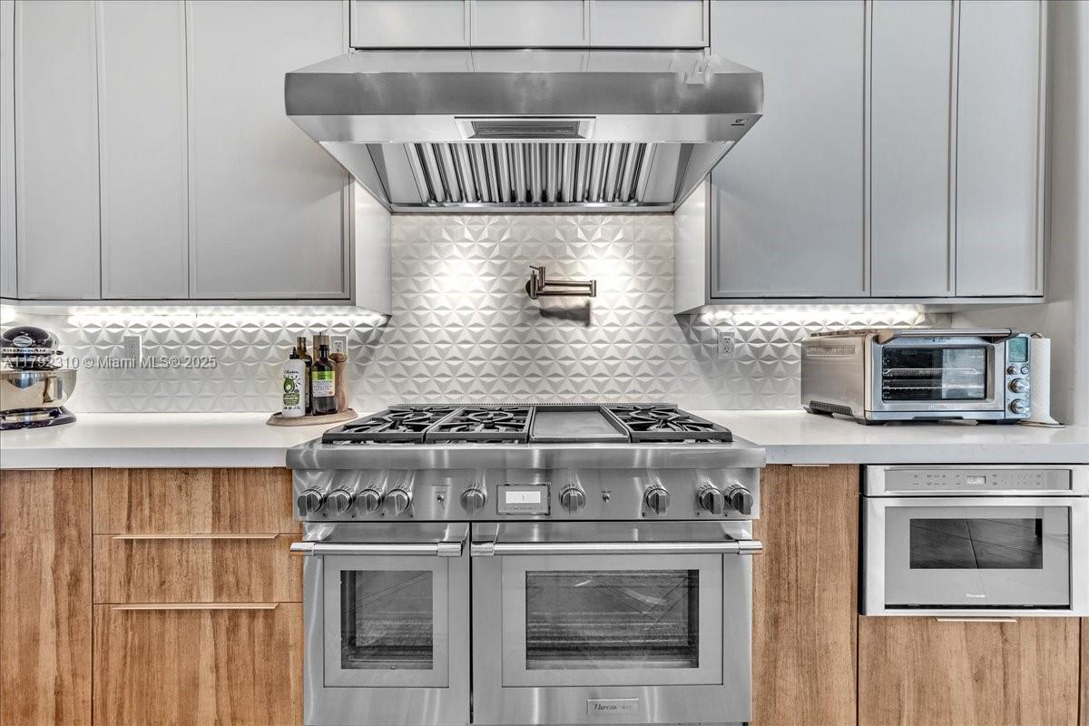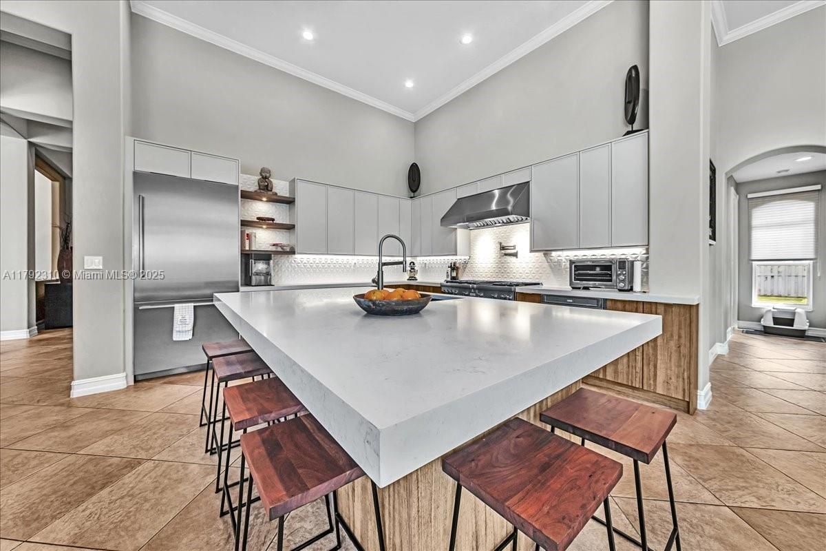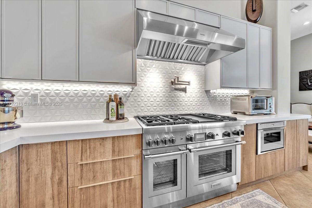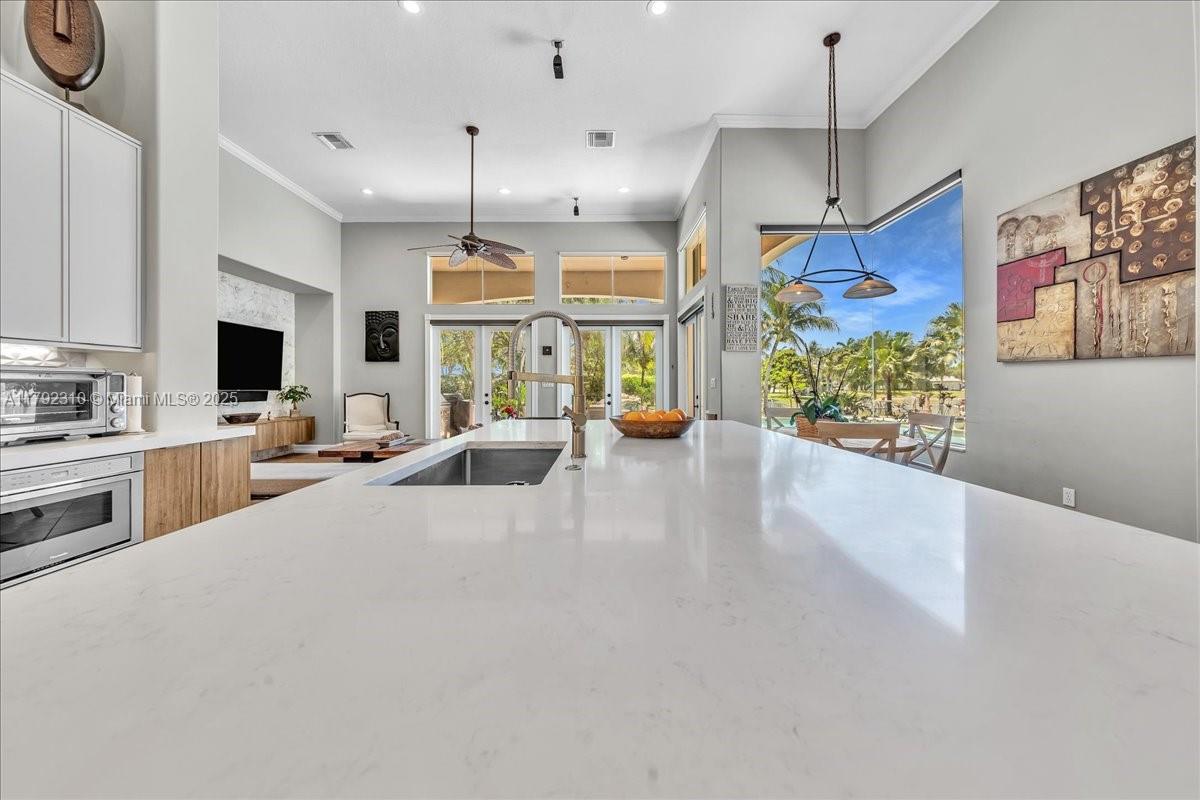 Welcome to an exclusive home in Sanctuary at Pembroke Falls on a rare and private 1/2 an acre lot crafted for luxury and comfort. This 4-bedroom + office, 3.5 bath home & 3 car garage features high volume ceilings and a seamless open layout ideal for entertaining and daily living. Lots of natural lighting which brings up the quality of an amazing updated modern kitchen, a chef’s dream with a 48" gas range, 6 burners, double ovens, built-in refrigerator, wine cooler, large island, drawer microwave, and custom cabinets. The spacious primary suite includes a sitting area, dual vanities, Jacuzzi tub, and double shower. Enjoy a private and one of the biggest back yard for community with a saltwater pool, a spa, natural gas grill ready, and fully fenced yard, accordion shutters and so much more.