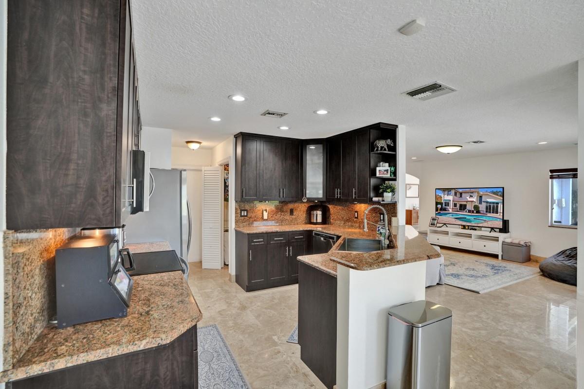 Lakefront retreat with stunning views! This 4-bed, 2.5-bath pool home features remodeled kitchen and baths, marble floors, new roof (2020), A/C (2020), water heater (2025), washer (2024), EV charger, and Vivint smart security. Enjoy hurricane shutters, fenced yard, pool safety fence, and covered patio. Relax or entertain in style. Low HOA. Minutes to beaches, shopping, dining, hospitals, and highways. Move-in ready, stylish, and perfectly located!