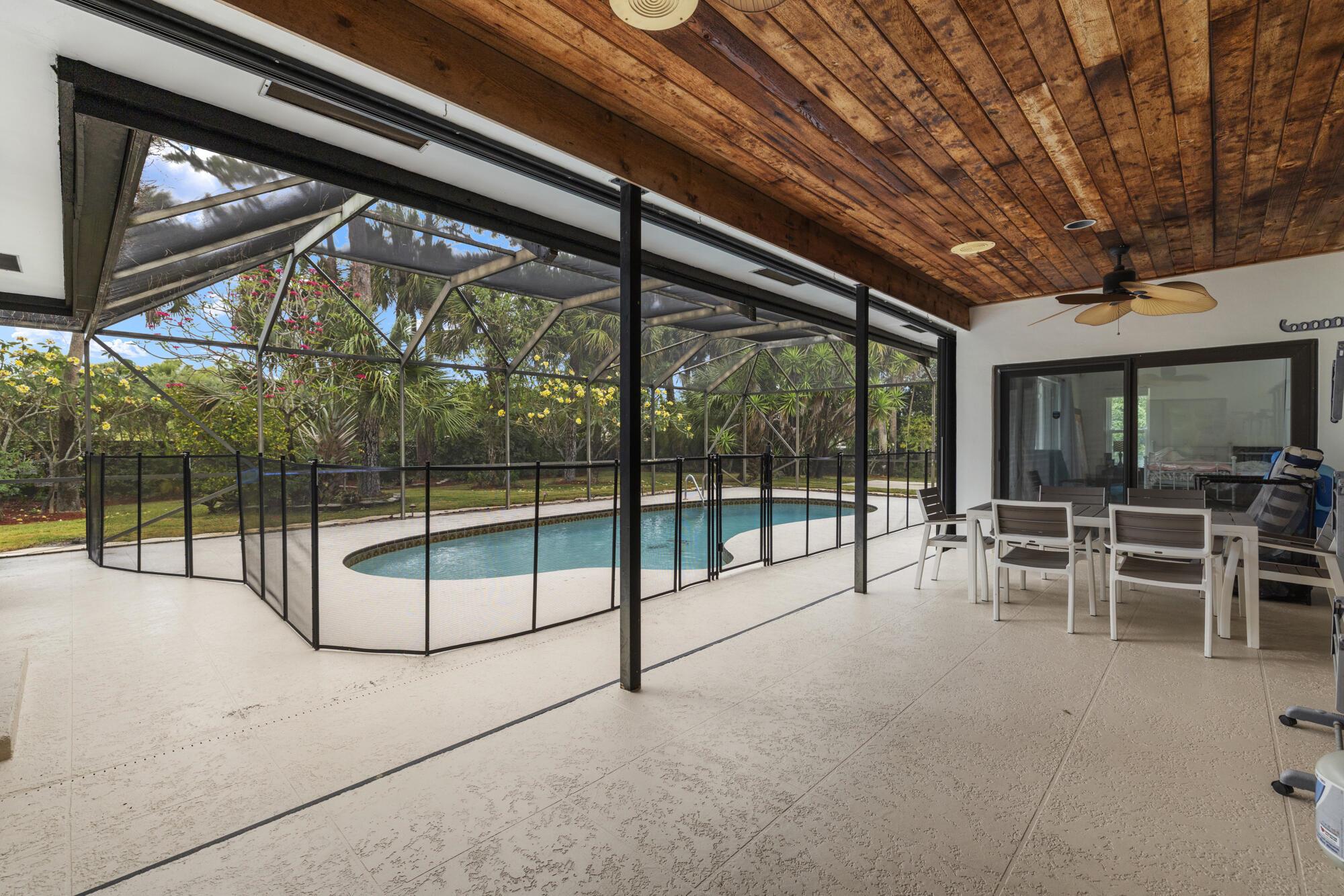 This stunning estate offers 5 oversized bedrooms, a flex room that can be converted into your sixth bedroom, 2 living rooms, renovated kitchen, fireplace, formal dining room, cabana bath, and separate laundry room--all across 4,100+ sq ft of living space. Oversized primary bedroom and bathroom with dual sinks and soaking tub. Situated on a 1.1-acre lot, the home features a screened, heated pool and a huge backyard ideal for birthdays, and entertaining. The home also includes impact windows, a new roof (2022), (2019) A/C, and a generator hook up. Enjoy a dramatic extended driveway with ample parking for guests, plus a 2-car garage. Surrounded by rare flowering plants and mature fruit trees including mango, avocado, papaya, lychee, sugar apple, and coconut, plus a vegetable garden.