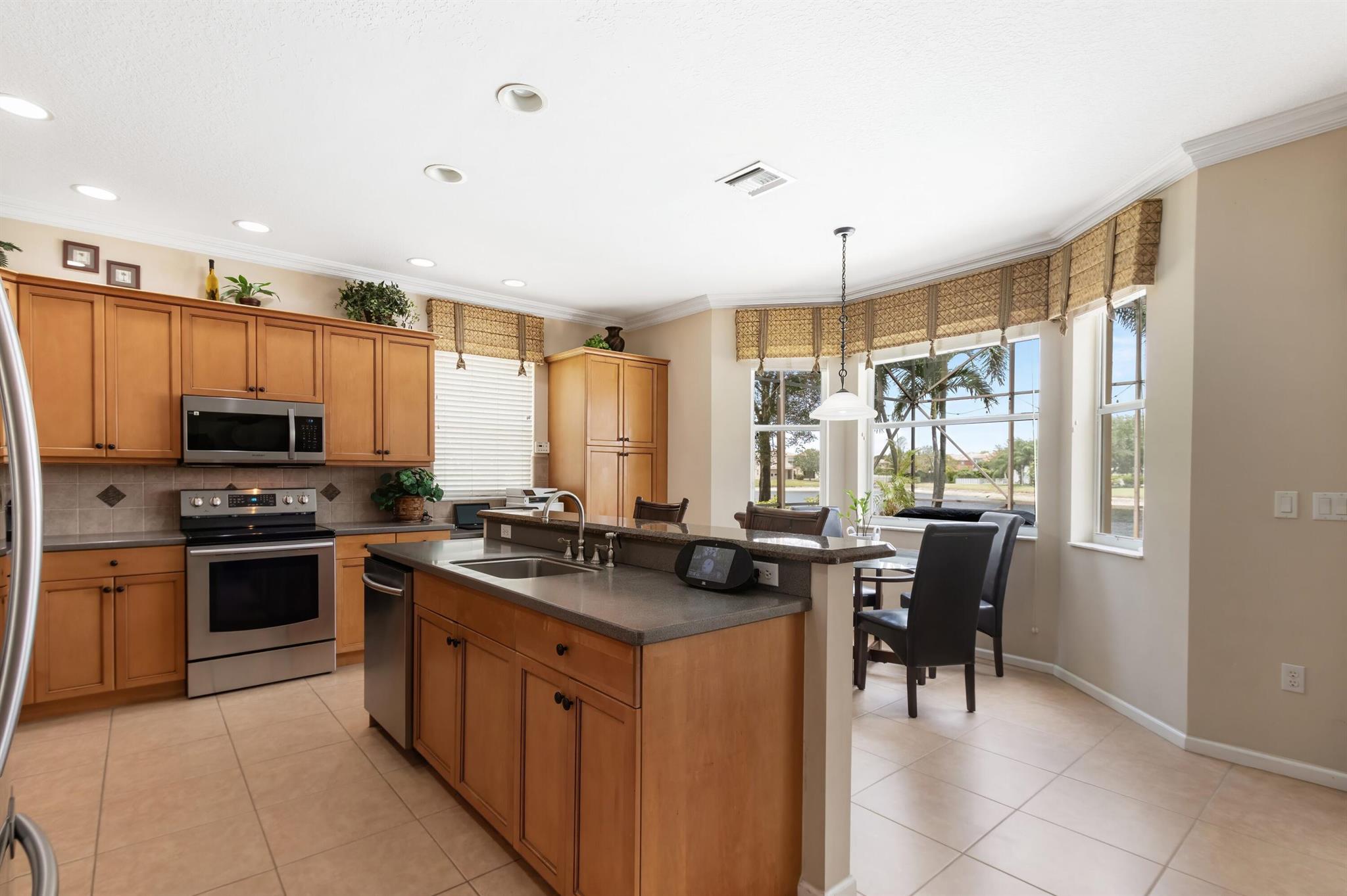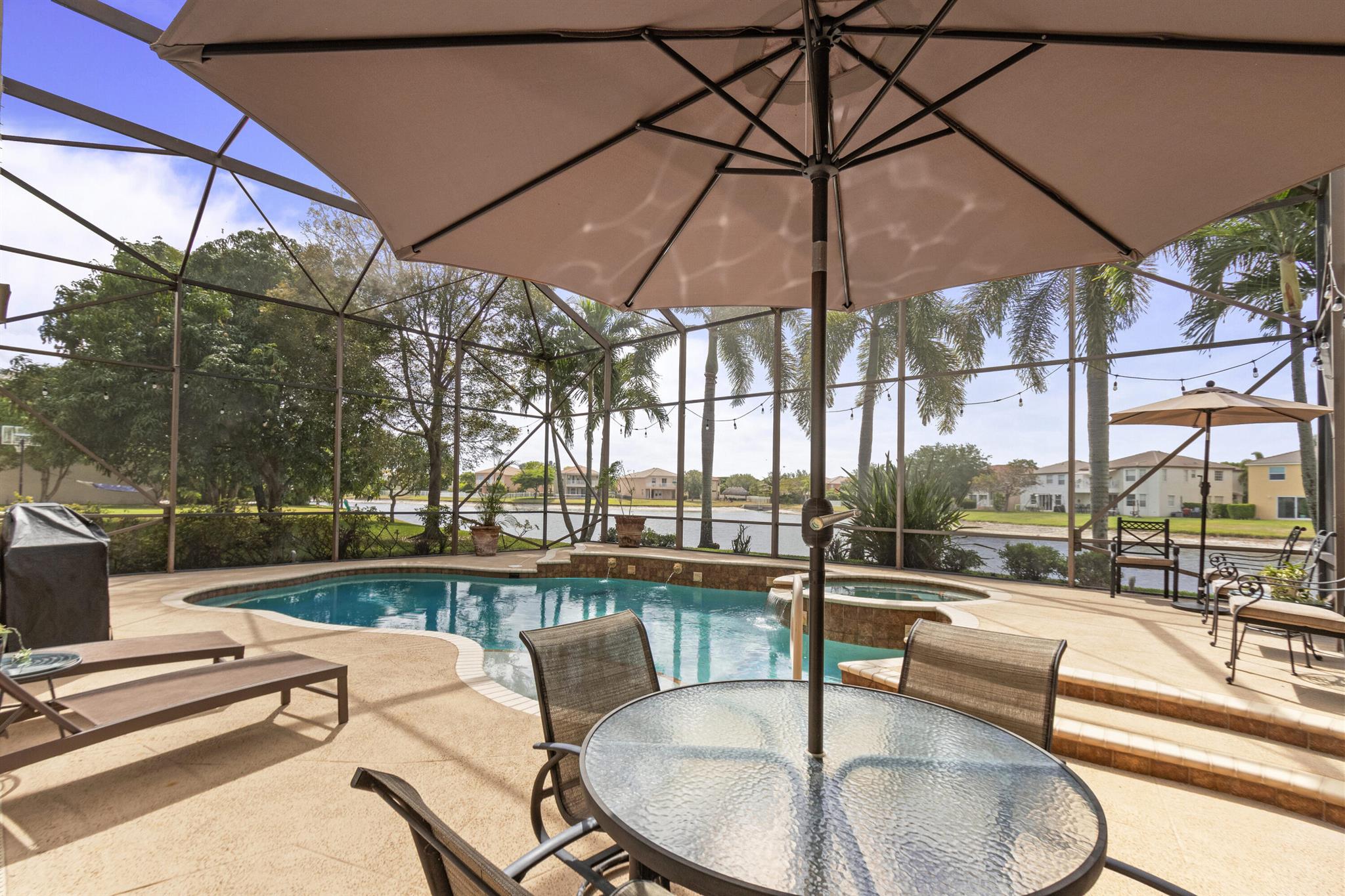 Welcome to Wellington's prestigious and premier resort style community Olympia! You can enjoy paradise living in this over 3300 til sq. ft. Cordova 5 bedroom home with the most gorgeous oversized pool, spa, and water feature on the lake situated for the most stunning sunsets! The yard is truly a vacation from reality and the reason we live in Florida, enjoy your private tropical landscaped oasis, you deserve it! One of my favorite features if the huge screen enclosure making your outdoor living enjoyable and bug free. This home is designed for entertaining with indoor and outdoor space becoming one. Main floor includes formal dining, living, family, and eat in kitchen as well as a huge island for gathering friends.