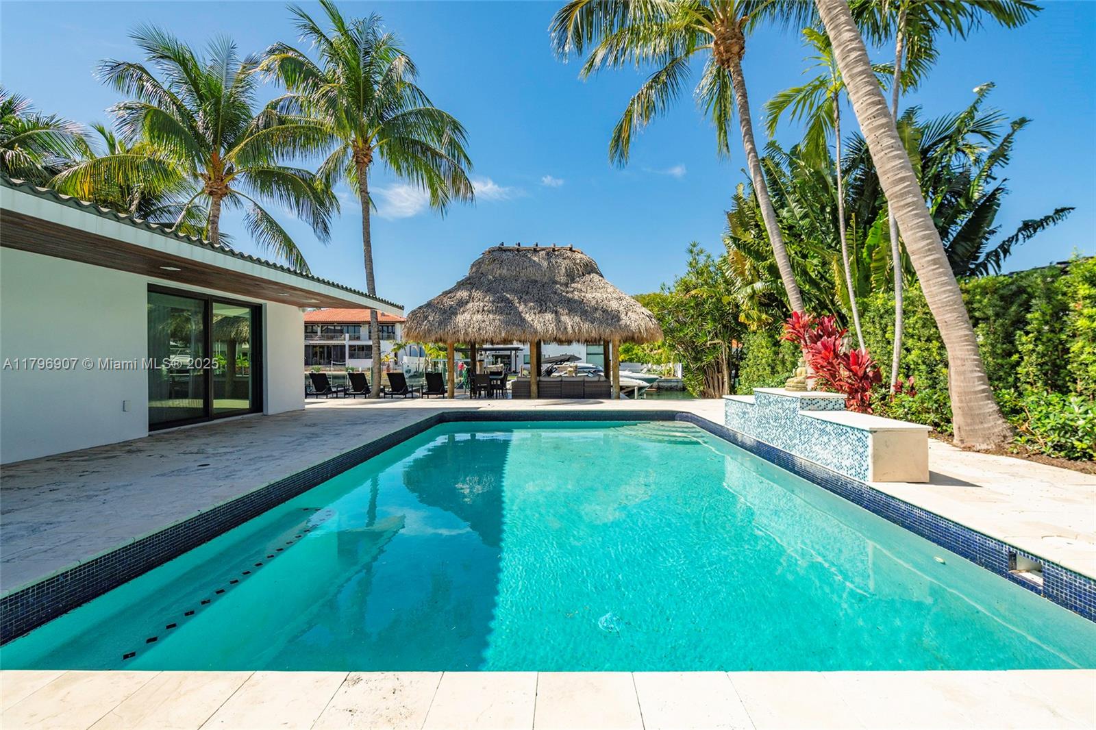 Modern waterfront living in the exclusive gated community of San Souci Estates. This fully renovated contemporary home sits on a 9,375 SF lot with 75 feet of deepwater frontage and direct ocean access—ideal for boaters. Offering over 2,700 SF of thoughtfully designed interior space, the home was completely updated with all-new electrical, plumbing, HVAC, and hurricane-rated smart windows and doors. The Italian-designed kitchen by Cesar features premium appliances, complemented by sleek Italian interior doors and cabinetry throughout. The outdoor area is built for entertaining, with a re-roofed Tiki hut, built-in BBQ, and a 15,000 lb boat lift. A rare opportunity to own a turnkey waterfront retreat in one of Miami’s most desirable neighborhoods.