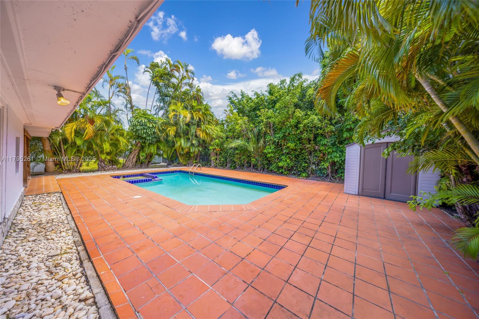 Located in the guard-gated community of Normandy Shores, this 3-bedroom, 2-bath home offers a spacious layout and plenty of potential. Residents enjoy 24/7 security and access to community amenities including golf, tennis courts, basketball court and a children’s play area. The home features tile flooring throughout, updated bathrooms, and upgraded plumbing and electrical systems. Impact windows offer added peace of mind. Inside, you’ll find a spacious living room, open dining area, and a well-sized kitchen, plus a bright Florida room. The converted garage provides additional storage and a utility room. A private backyard with a pool completes this inviting home which is located just minutes from the beach.