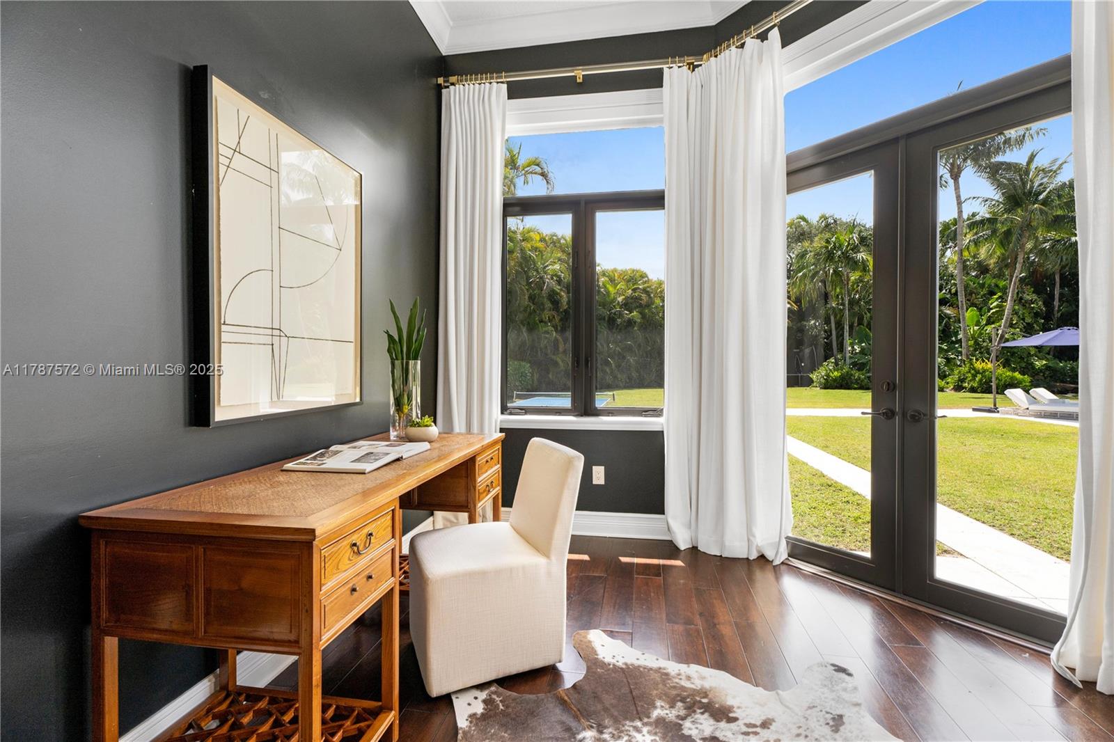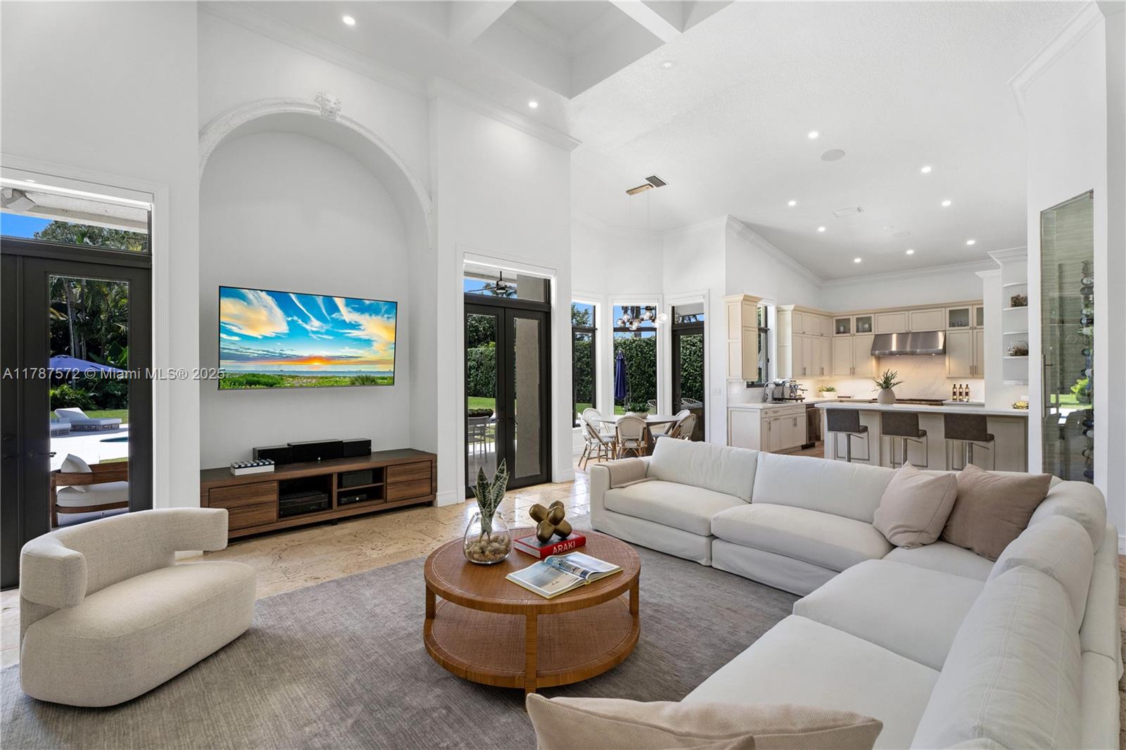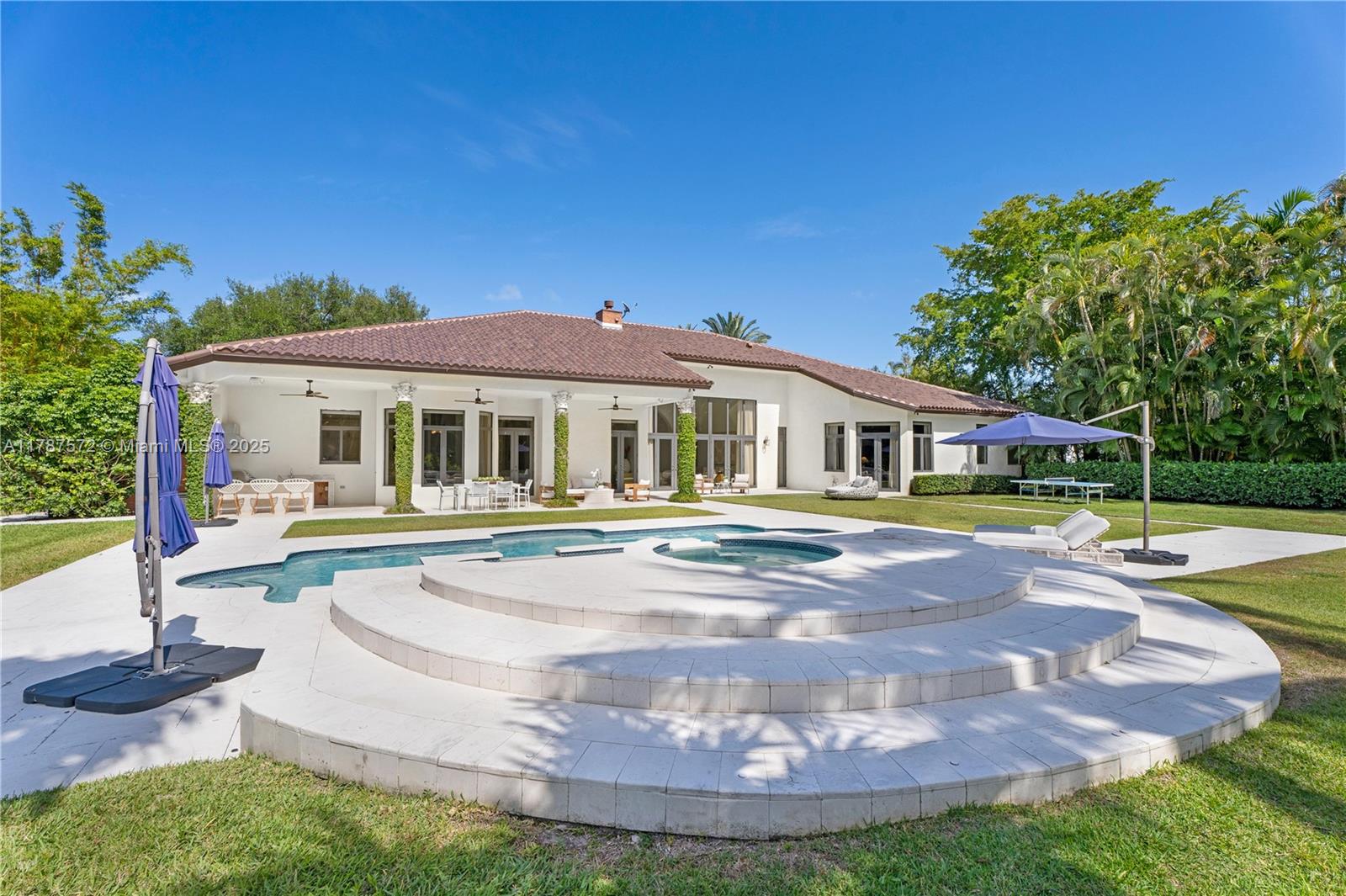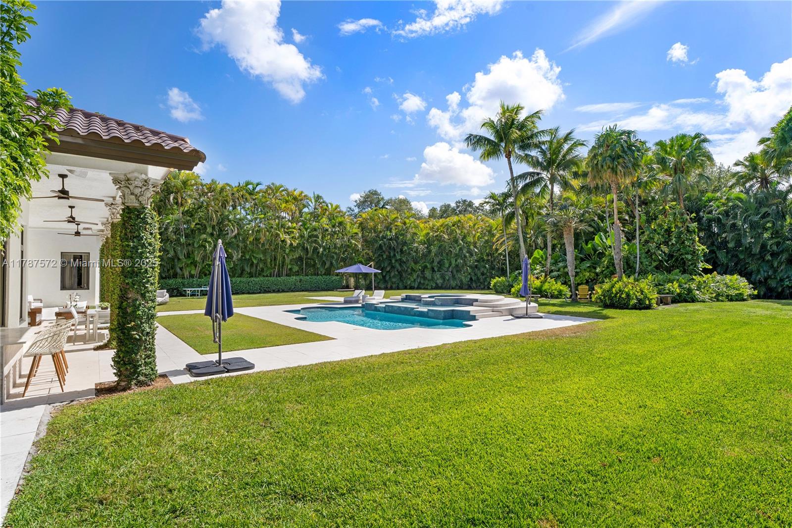 Located on a palm-lined road in sought-after N. Pinecrest, this one-story gated residence offers a designed layout with soaring ceilings & well distributed living spaces. The dine-in chef’s kitchen opens seamlessly to a spacious family room and comes with a glass wine cellar The elegant primary suite includes a large sitting area. Upgrades: impact windows/doors, whole-house generator, New Roof (2023), new garage doors, modern lighting, custom closets, exterior cameras, updated A/Cs, and new appliances. The expansive, landscaped backyard is a true South Florida retreat—featuring a resort-style pool, summer kitchen, koi pond, shaded dining areas, and mature trees for ultimate privacy. Located in the top-rated Pinecrest Elementary School district with quick access to shops, dining, and US-1.