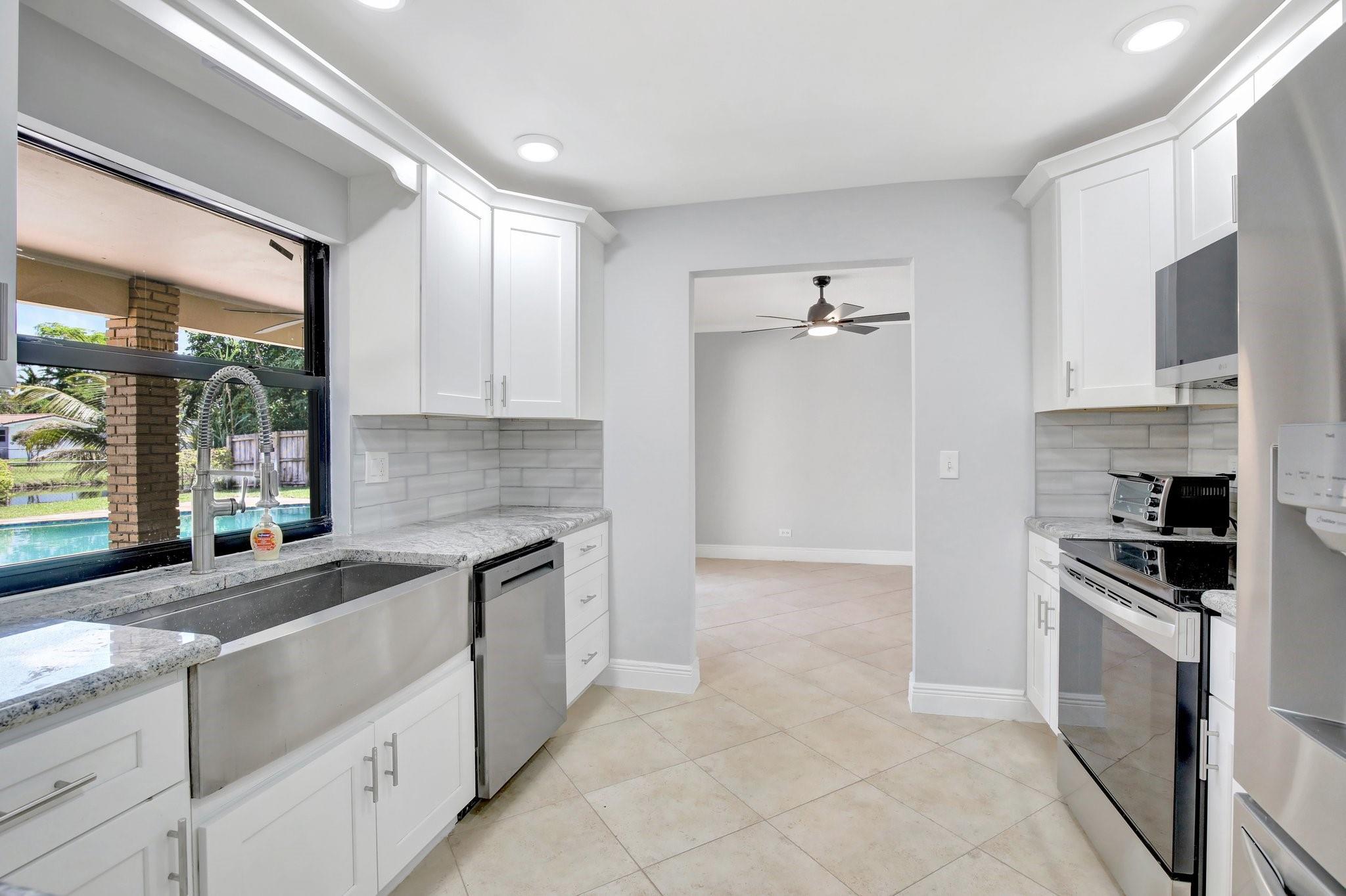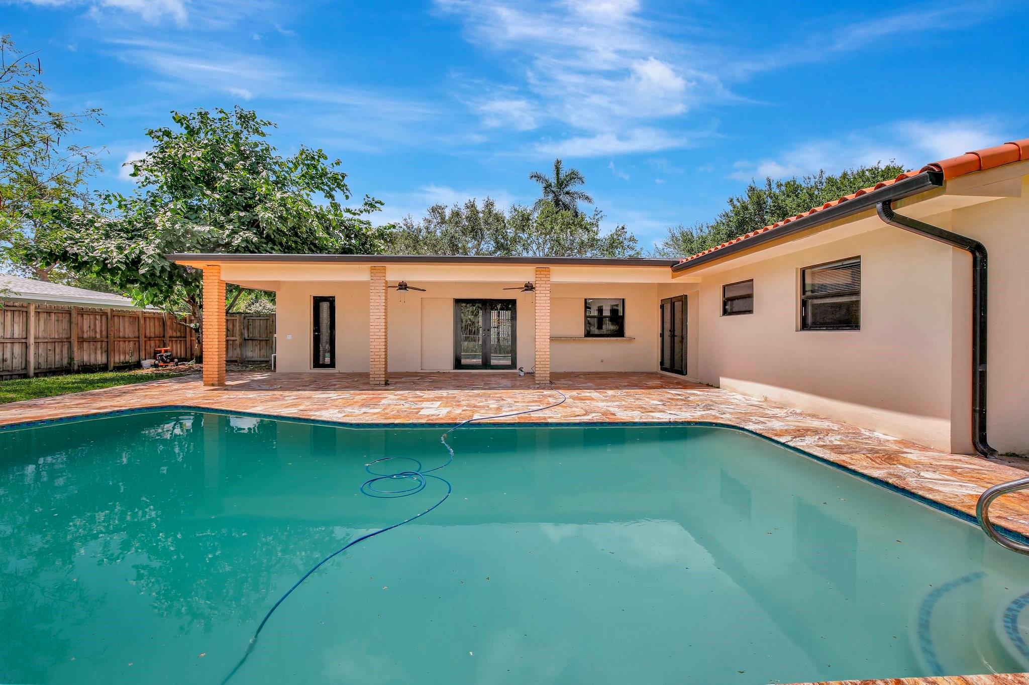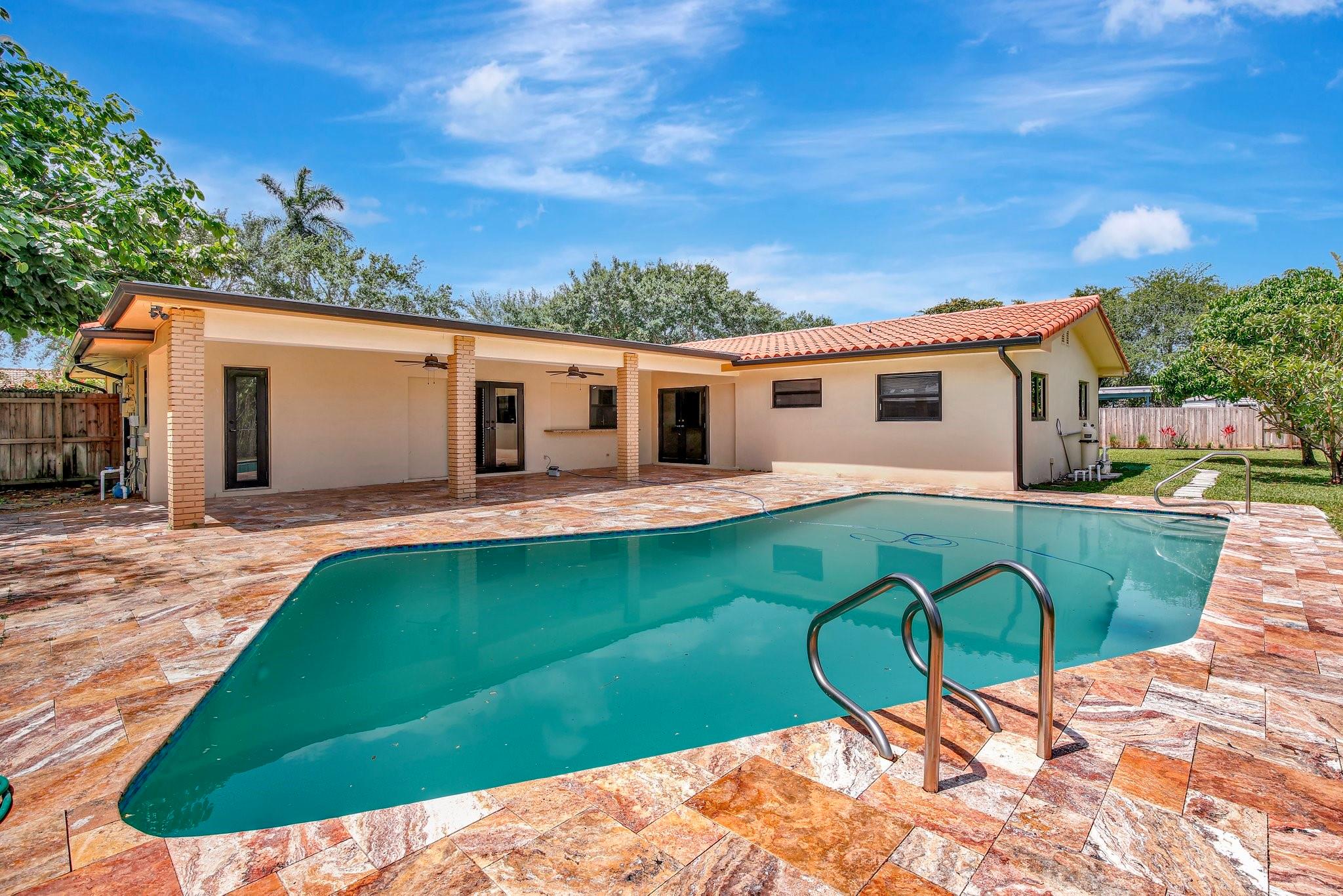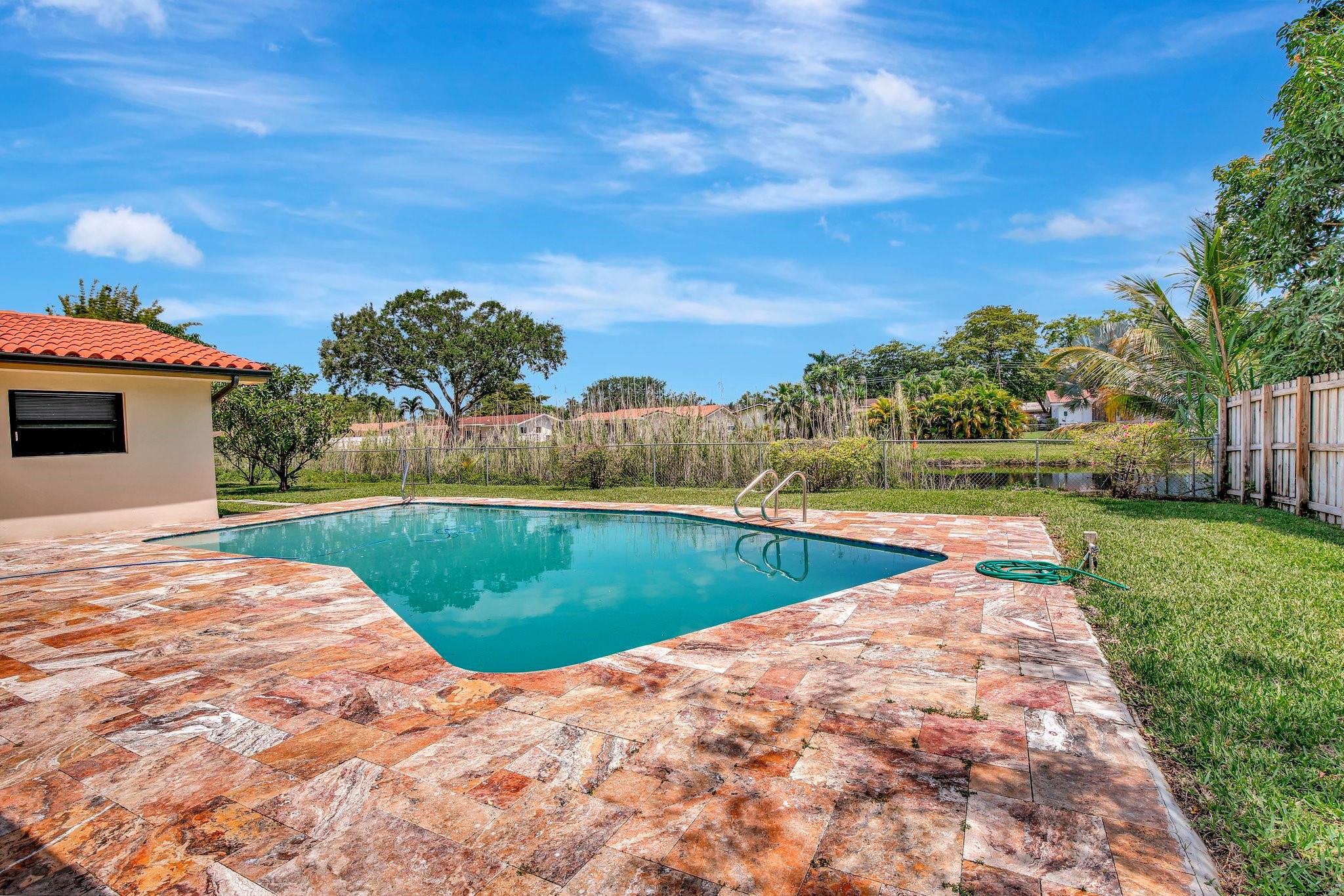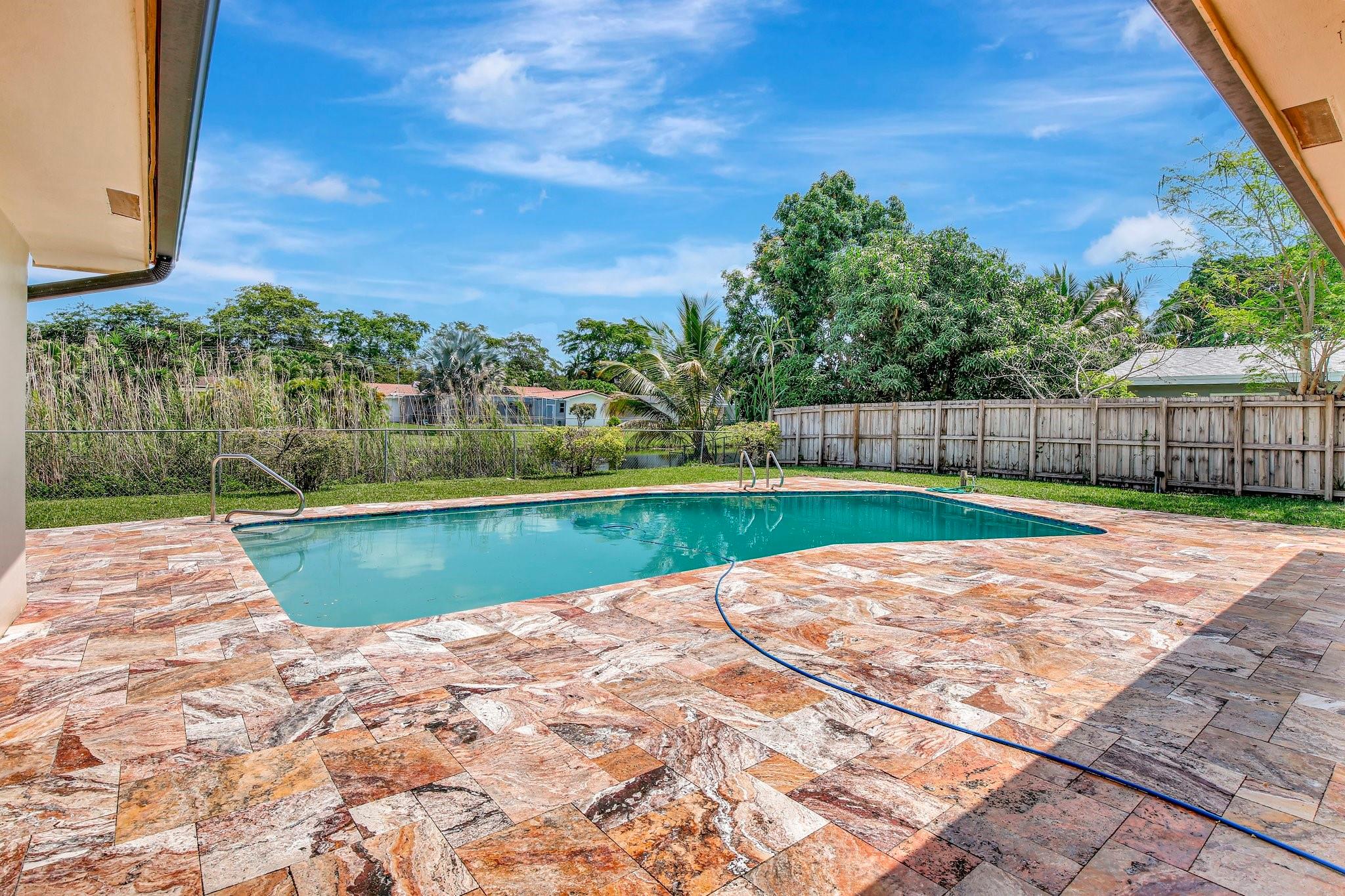 what a wonderful 4 bedroom 2 bath pool and waterfront home. This beautifully updated home offers a modern kitchen with brand-new appliances, two fully renovated bathrooms, and a new water heater, washer, and dryer. Enjoy upgraded laminate flooring in the bedrooms and elegant tile throughout the main living areas. Fresh paint inside and out, along with new blinds. Hurricane impact windows and doors provide peace of mind. The tropical landscaping surrounds a spacious covered patio overlooking the sparkling pool and tranquil waterway. Pool and sprinkler pumps were replaced just four years ago. Move-in ready and packed with upgrades!