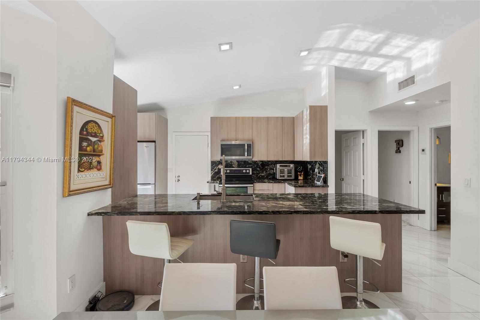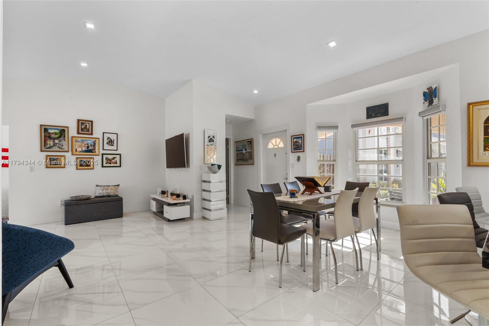 This beautifully remodeled 3-bed, 2-bath residence offers a perfect blend of modern comfort and stylish design. Completely renovated in 2020, the home features a spacious open-floor concept, vaulted ceiling, and a converted garage with an additional bedroom and reach-in closet. The home also features impact windows throughout, a a spacious sunroom, new modern kitchen, new roof and gutters, porcelin tile floors throughout, and a tankless water heater. Step outside to a large backyard perfect for entertaining, complete with an outdoor kitchen for BBQs and gatherings. Located in a gated community with 24-hour security, residents also enjoy fantastic amenities including a pool and kiddie playground. This home combines comfort, security, and outdoor living in a sought-after Doral neighborhood.