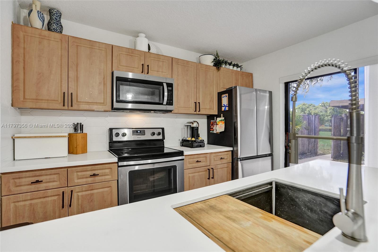 Come view this stunning 3 bedroom 2 1/2 bathroom updated townhome located in the heart of Davie! This home features an updated kitchen with quartz counter tops, stainless steal appliances, new tile floors, updated bathrooms, 2024 ac and water heater, custom closets, golf coarse and lake views with a decked out patio great for enjoying sunny South Florida weather! A new roof was installed in the first week of July 2025. Access to a private golf coarse, club house, heated pool, pickleball, tennis, and biking are just some of the amenities this property has to offer. Located close to major highways making transportation easy to anywhere in the tri county area. Great schools make this a great home to raise a family and feel safe. This is one you don't want to miss. Bring your buyers today!