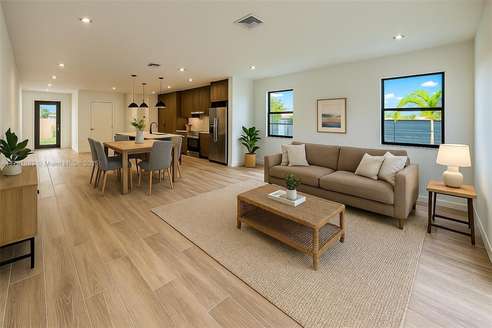 NEW CONSTRUCTION! This spectacular new property is situated on a 7562 SF lot at Chula Vista, Fort Laudedale. This remarkable 2,535 SF masterpiece offers 2,082 SF of A/C one-story floor plan, providing impressive ceiling heights of up to 9’, doors at 8’ and, floor to ceiling glass door that allows for grand views of the expansive landscape-sized yard. The open format kitchen is completely equipped with Whirlpool appliances, room sized pantry, laundry room in AC area, summer kitchen, outdoor terraces among many other features. Make this jewel your future home!