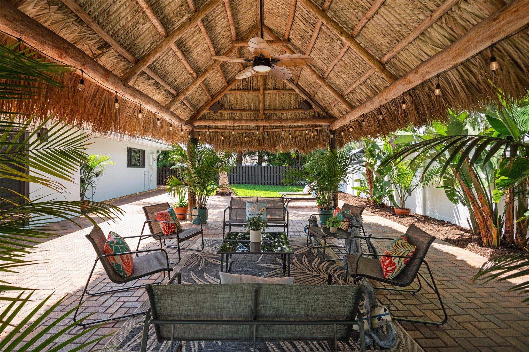Eye catching sought-after East Boca Raton home in desirable Royal Oak Hills, NO-HOA & zoned for A-rated Addison Mizner Elementary, Boca Middle & Boca High, so close to our breathtaking Boca beach's, Boat ramp, Mizner Park, Downtown Boca, Town Center Mall & one of South Florida's top universities, FAU. Homeowner pride like no other, Brand new 2024 roof & exterior paint, all new appliances, New Tiki thatch, New A/C 2021. Delightful open floor plan, newer floors throughout, kitchen, master bath, interior doors, electrical panel, tankless water heater, & AC ductwork done in 2020; all impact doors/windows, reverse osmosis, circular driveway resealed 2024, large utility/storage room w indoor laundry. Spacious tropical backyard surrounded by lush landscaping, large Tiki perfect for entertaining.