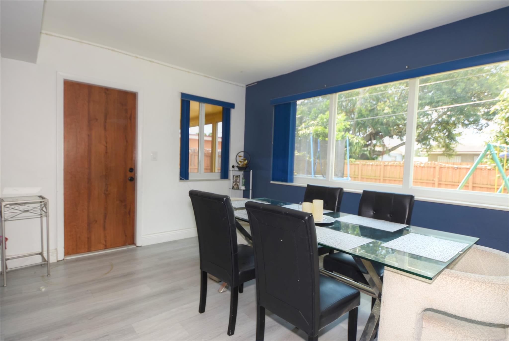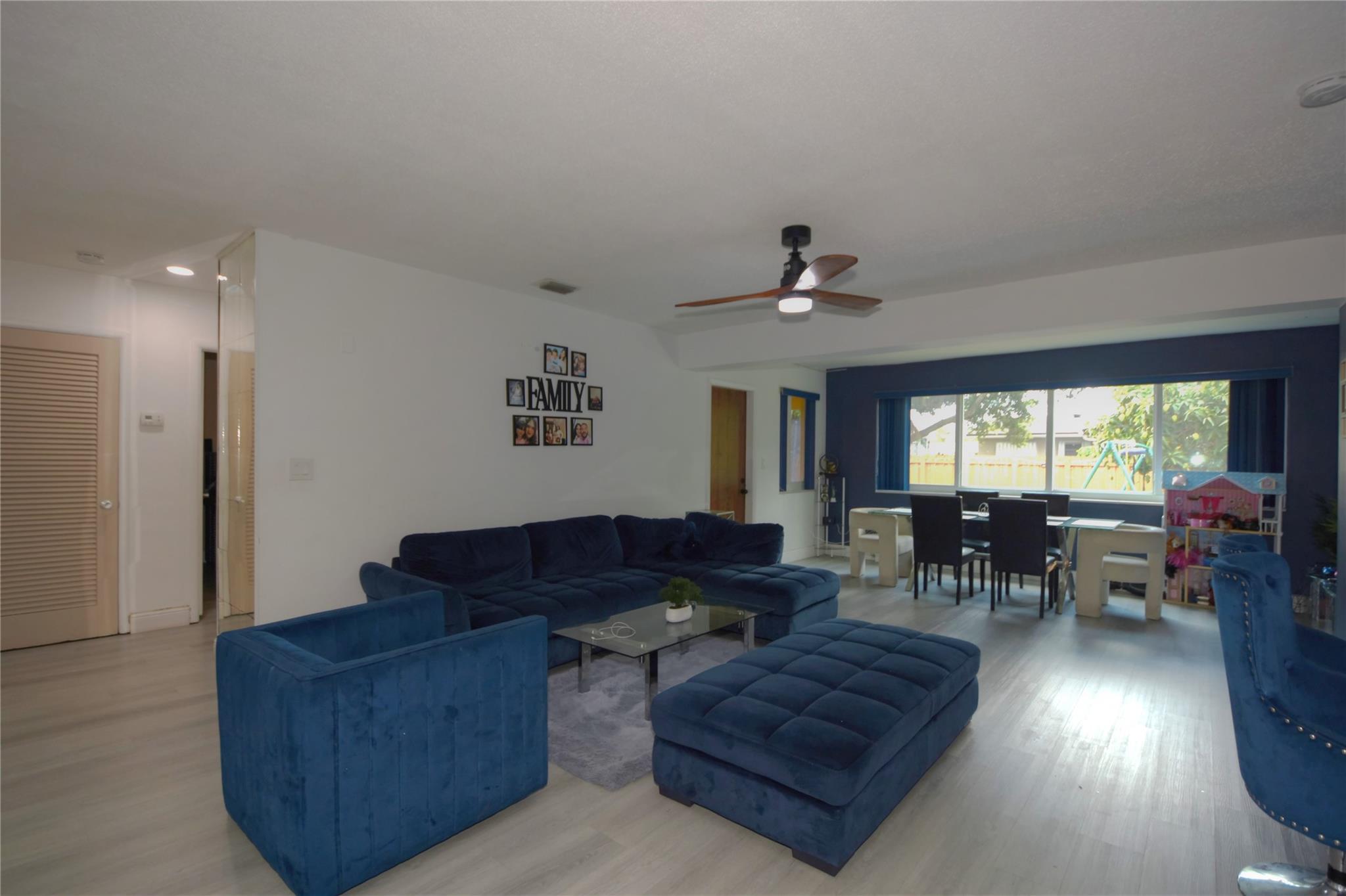 Welcome to your new home! Nestled on a generous lot with a sprawling backyard, this delightful ranch-style residence offers a seamless flow. Step inside to discover a grand living space, easily accommodating distinct dining, living, and family areas. The eat-in kitchen conveniently opens to a sizable laundry and pantry. You'll appreciate the bright and airy bedrooms, along with the added peace of mind of impact windows and a newer septic system. Parking is a breeze with a carport providing direct kitchen access, plus driveway space. The fenced backyard boasts a bountiful mango tree, while a majestic shade tree graces the front. Enjoy the convenience of a fantastic neighborhood park just down the block.