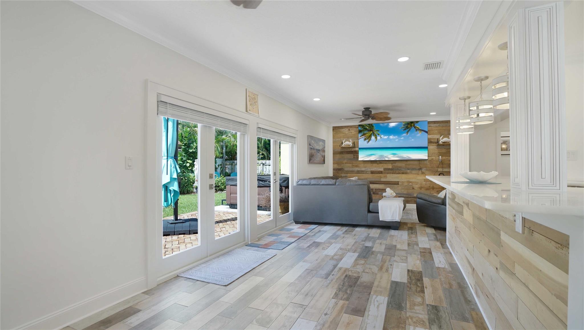 Renovated 2BR/2BA home in Oakland Park’s desirable Royal Palm Acres. This substantially remodeled residence features tile flooring, French doors, a spacious open kitchen with gas range, and updated baths. The lush backyard includes a patio, fruit trees, fenced perimeter, and room for a pool. Exterior features include impact glass, high-impact doors, shed, and extra building/shed for storage or workspace. No HOA, circular driveway, carport, and space for RV/boat parking. Quiet street close to major roads, parks, and shopping.