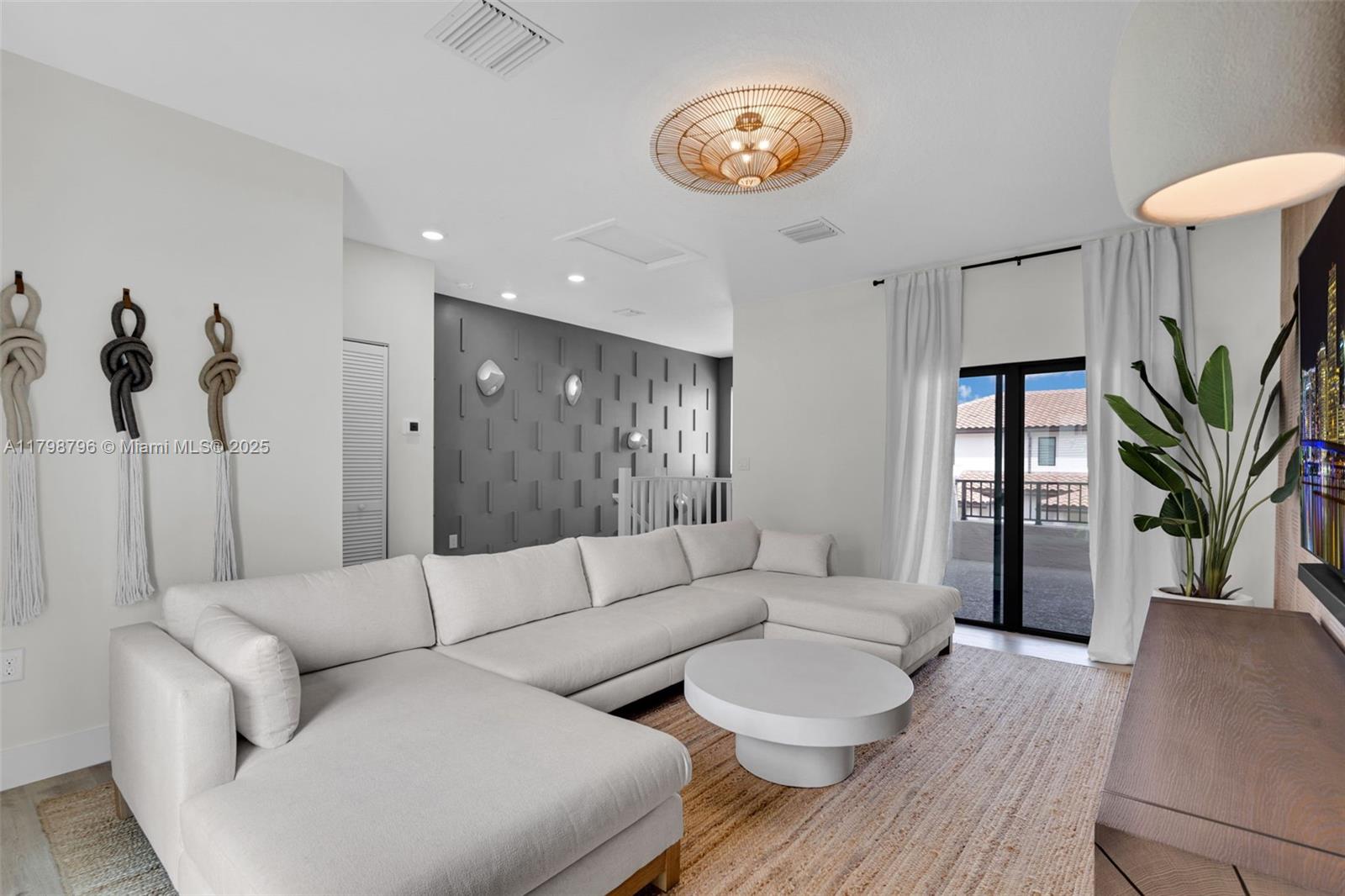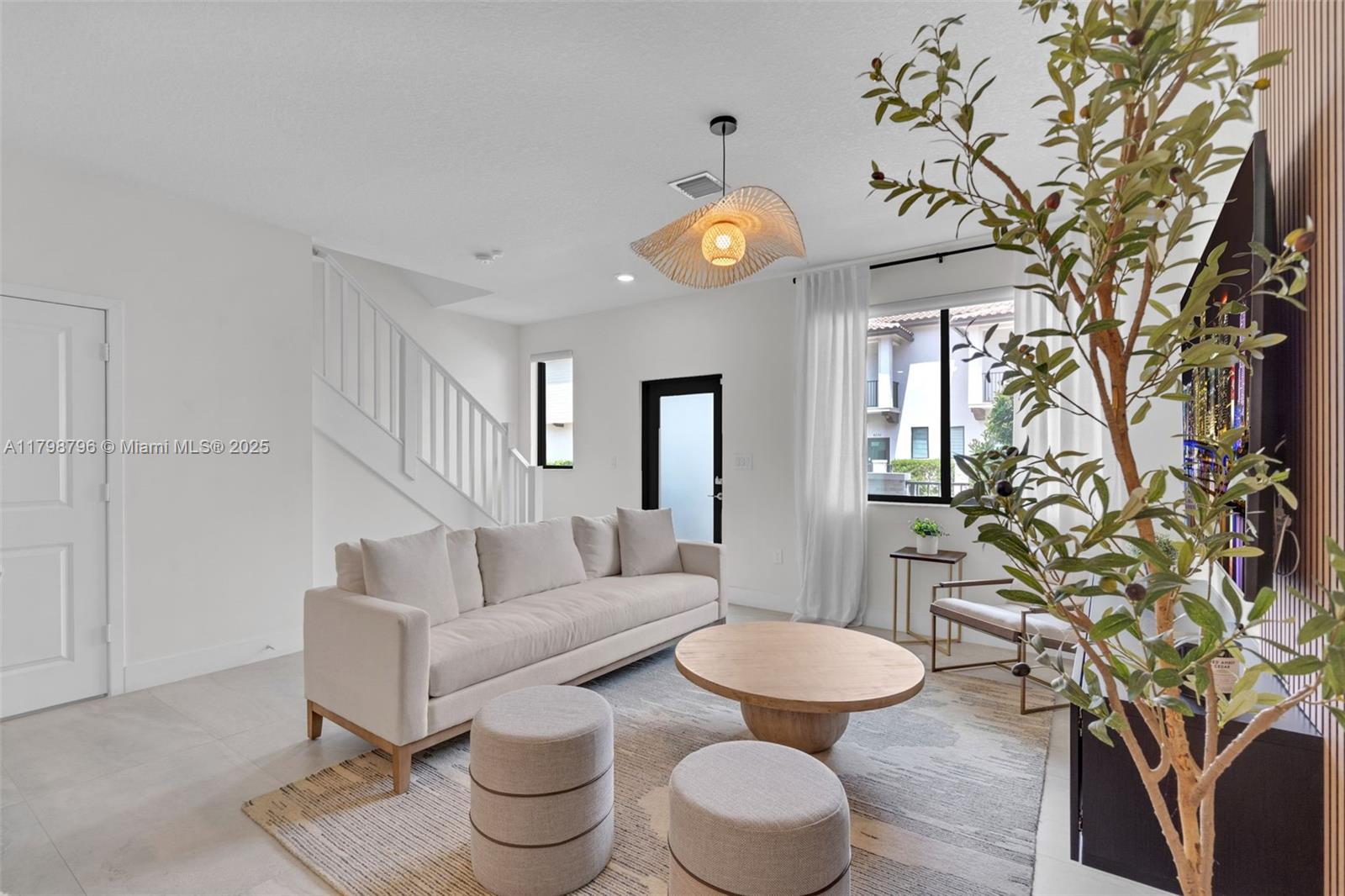 Simply Magnificent 3 bedroom, 2 full/2-Half bath townhouse exceptionally decorated by Three Leaf Interiors. Residence features flooring upgrades, built-ins, pantry built-out, customized walk-in closet, beautiful wall accents, spacious bedrooms, meticulously designed office/work station, phenomenal entertainment area, shaded rooftop patio and open space balcony equipped for BBQ install. Water filtration system throughout the home, EV charger and storage racks in two car garage as well as video camera installations. Perfectly situated in Downtown Doral, which boasts Publix supermarket, restaurants, a state-of-the-art fitness facility, with indoor track, basketball courts, spinning room, pool, business center, parks & outdoor spaces. Quality of life awaits in this gorgeous TH community.