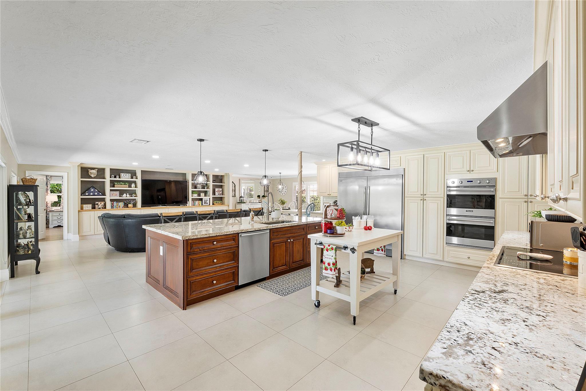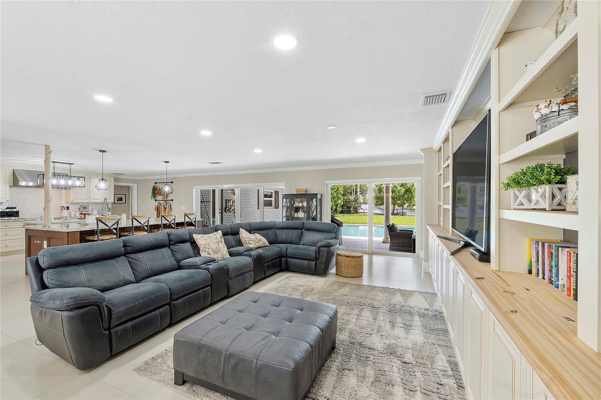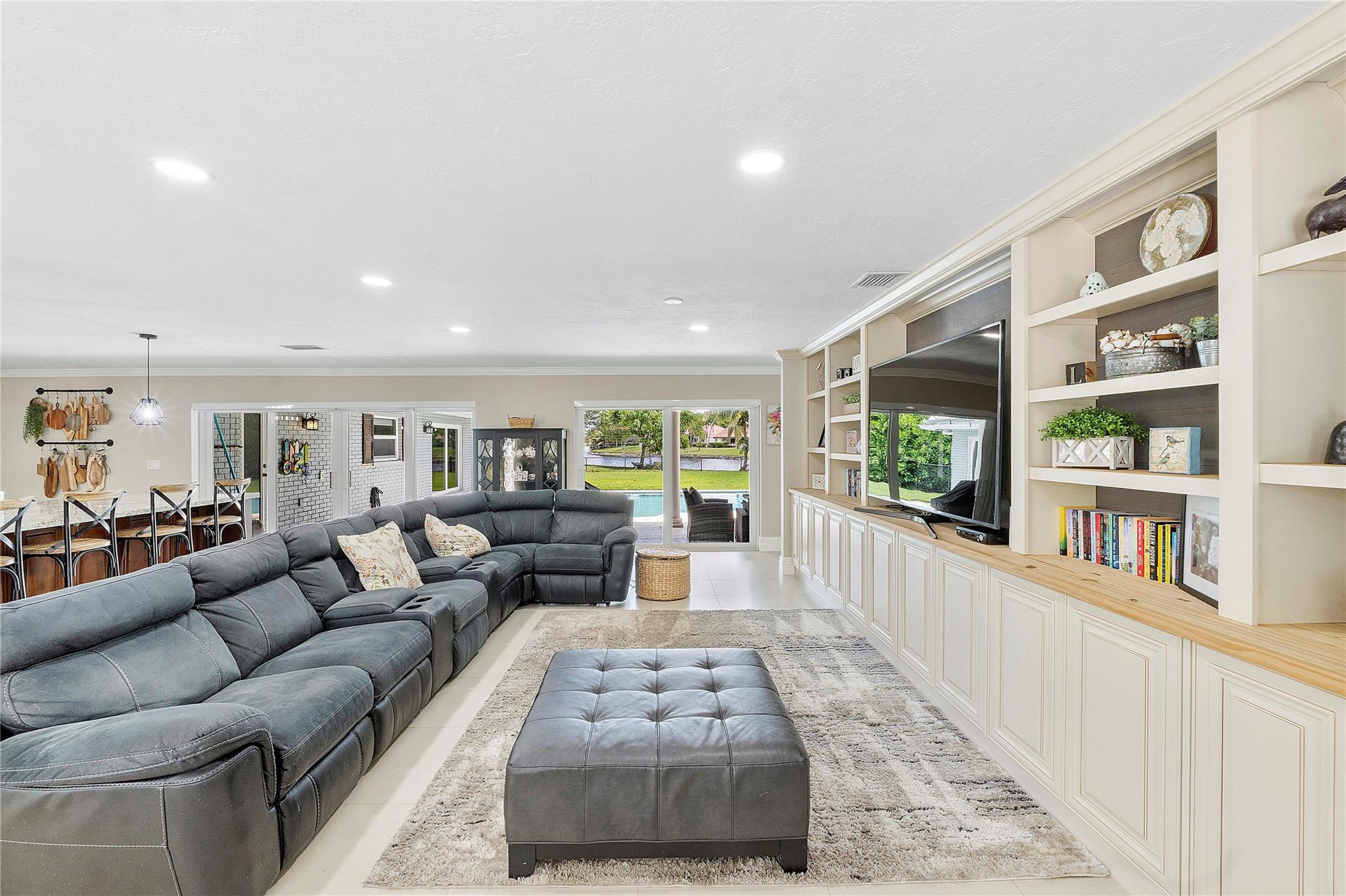 RENOVATED TURNKEY CUSTOM HOME on a 17,929 sq. ft. WATERFRONT LOT with a BRAND-NEW ROOF being installed, featuring IMPACT WINDOWS and DOORS throughout! This 6 BEDROOM (1 is a DEN) and 3.5 BATHROOM boasts a CIRCULAR DRIVEWAY and SIDE DRIVE for ultimate CURB APPEAL. FLEXIBLE FLOORPLAN is ideal for PRIVACY with its SPLIT BEDROOM layout. The heart of the home is a CUSTOM WHITE KITCHEN SUB-ZERO REF and FILTERED WATER, seamlessly connected to the OPEN GREAT ROOM & DINING AREA, perfect for modern living. The HUGE PRIMARY BEDROOM is a LUXURY retreat with an UPDATED BATHROOM and CUSTOM CLOSETS. PRIVATE 5-STAR RESORT-STYLE POOL in the FENCED BACKYARD WATER VIEWS, offering ample SPACE for ENTERTAINING. NO HOA! TOP SCHOOLS, SHOPPING, TENNIS, FITNESS TRAILS, and a PLAYGROUND. FURNITURE is AVAILABLE!