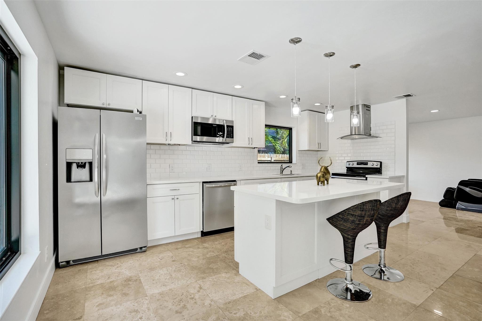Beautiful, turnkey 4 Bed 2 Bath home in desirable East Boca Raton 'Hidden Valley' neighborhood. NO HOA. This home is immaculately kept and tastefully updated. Upon entry you will be greeted with vaulted ceilings and abundant natural light. White & light kitchen with Quartz counters. Open floor plan too all living space. Travertine tile in living space. Wood-look flooring throughout all Bedrooms & Sunroom. Sunroom features double sliders opening to the backyard. Heated + Saltwater pool. Full Impact windows/doors throughout. Two car garage. Fully fenced yard + Bonus Gate in front yard for kids safety. A+ Rated Schools. Close to school bus stops. Quiet neighborhood offers Park & Tennis Courts! 4 miles to the Beach. Under 10 minutes to downtown Boca Raton or Delray Beach with shops and dining!