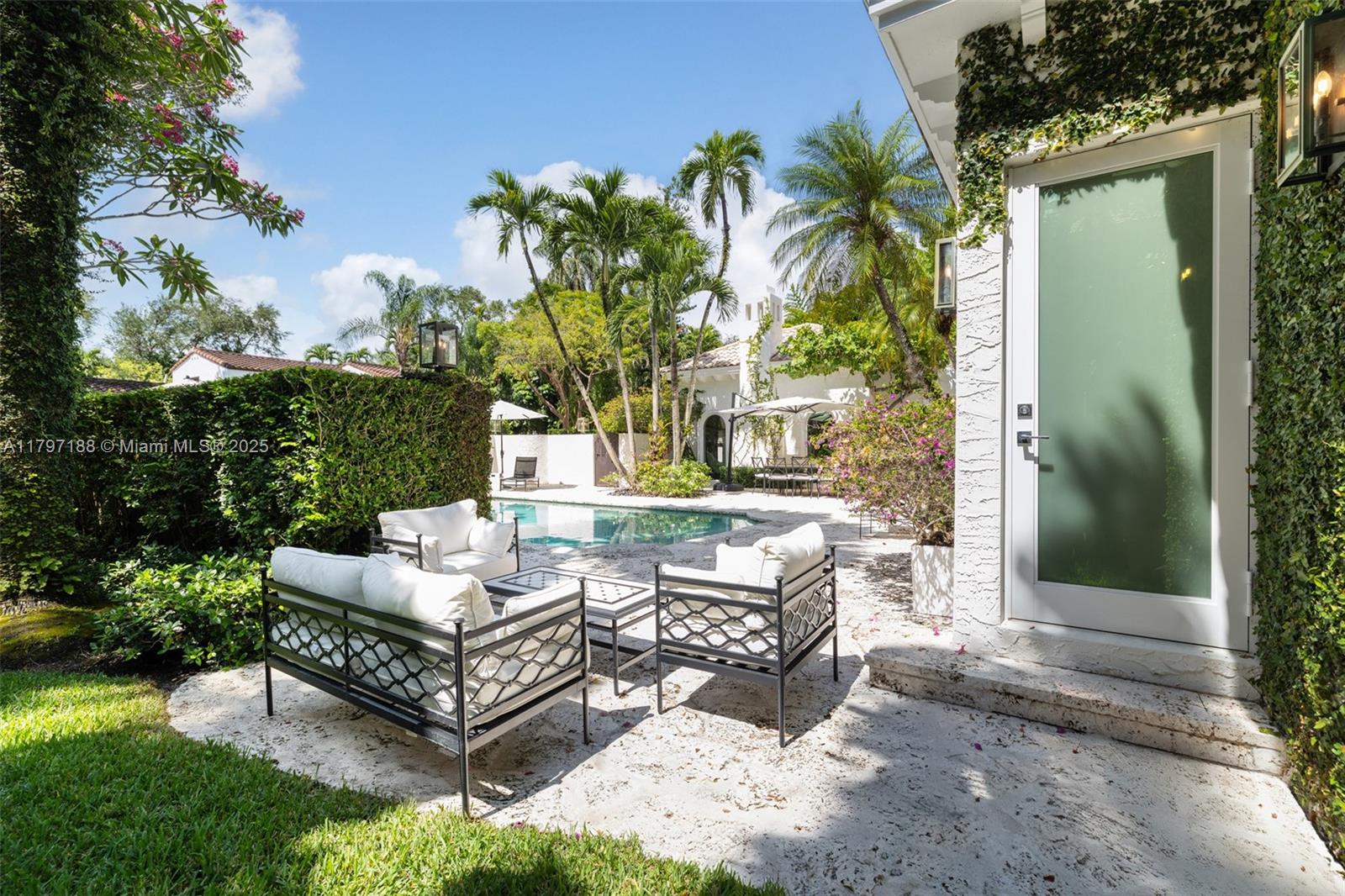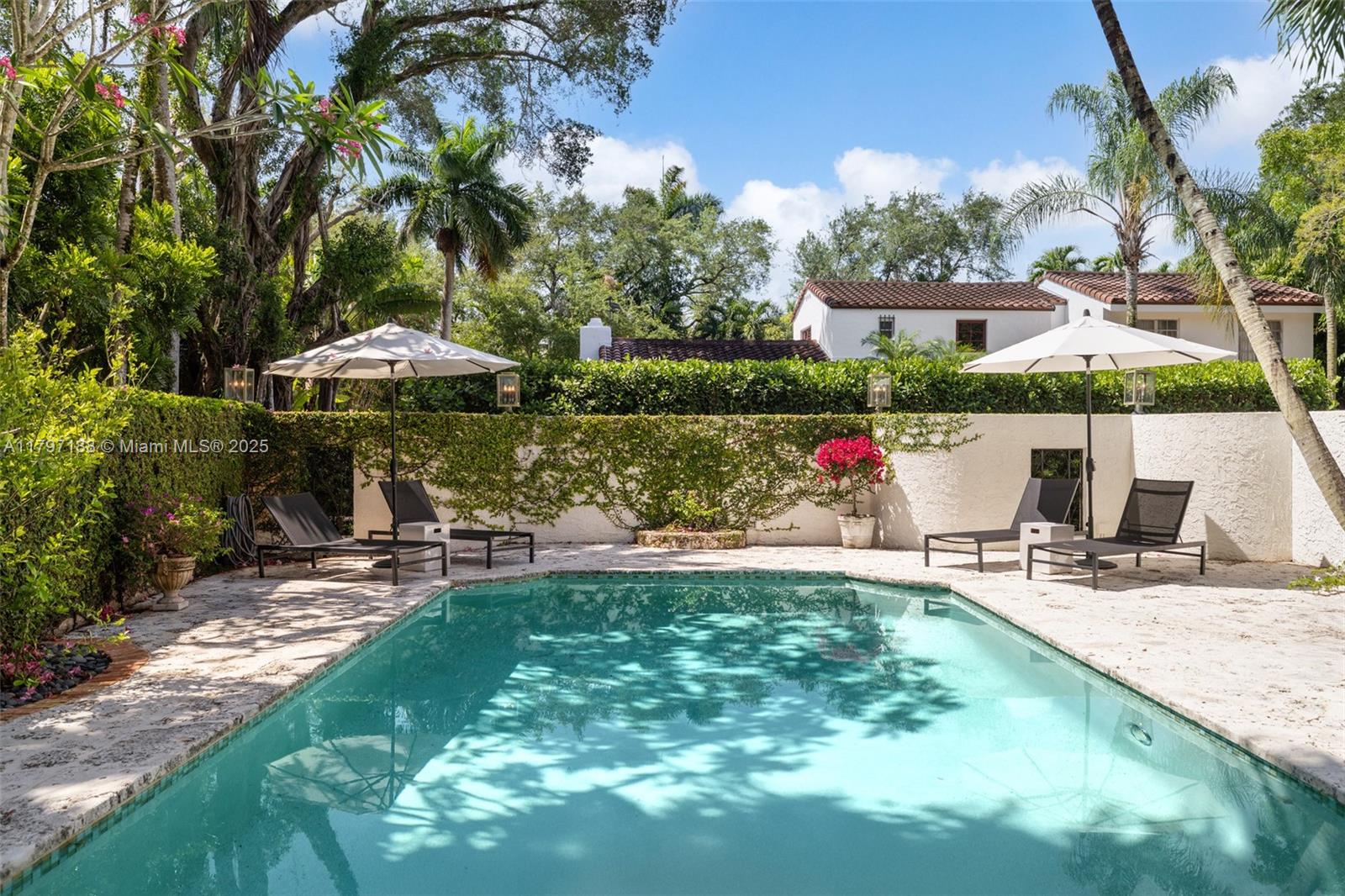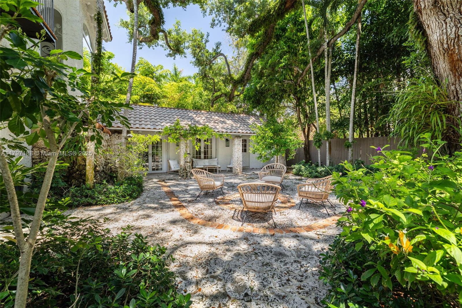 Captivating home in coveted “Ye Little Wood”- a gated enclave nestled along a tree-canopied winding road. Magazine quality total renovation will meet the most discerning buyer’s expectations. Experience a fusion of classic & contemporary design in light-filled living spaces featuring vaulted beamed ceilings, stone fireplace and an abundance of windows - creating a seamless connection between indoor & outdoor spaces. The expansive top-of-the-line kitchen features cooking island, gas range & skylights w/ tree-top views. Charming separate guest house has 1BR/1BA + living room. Enjoy ultra-private outdoor living & entertaining around the tranquil pool and in the magical gardens surrounding the home. Walk or bike to the historic Grove village, top-tier schools and to bayfront parks & marinas.