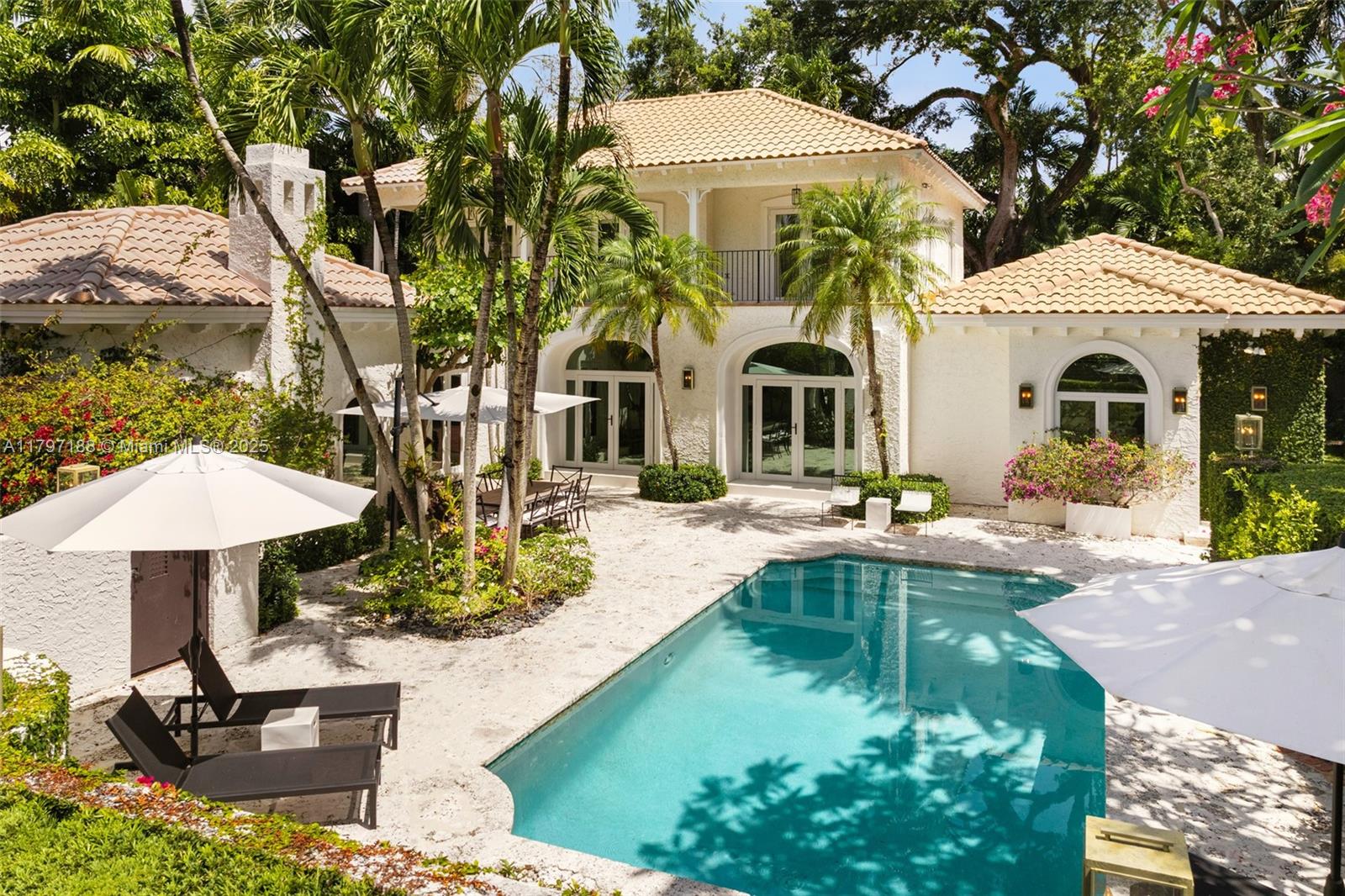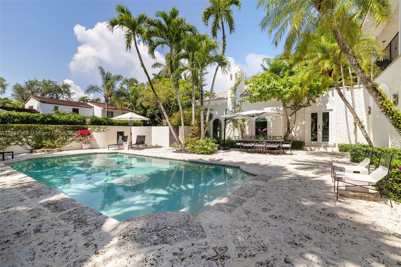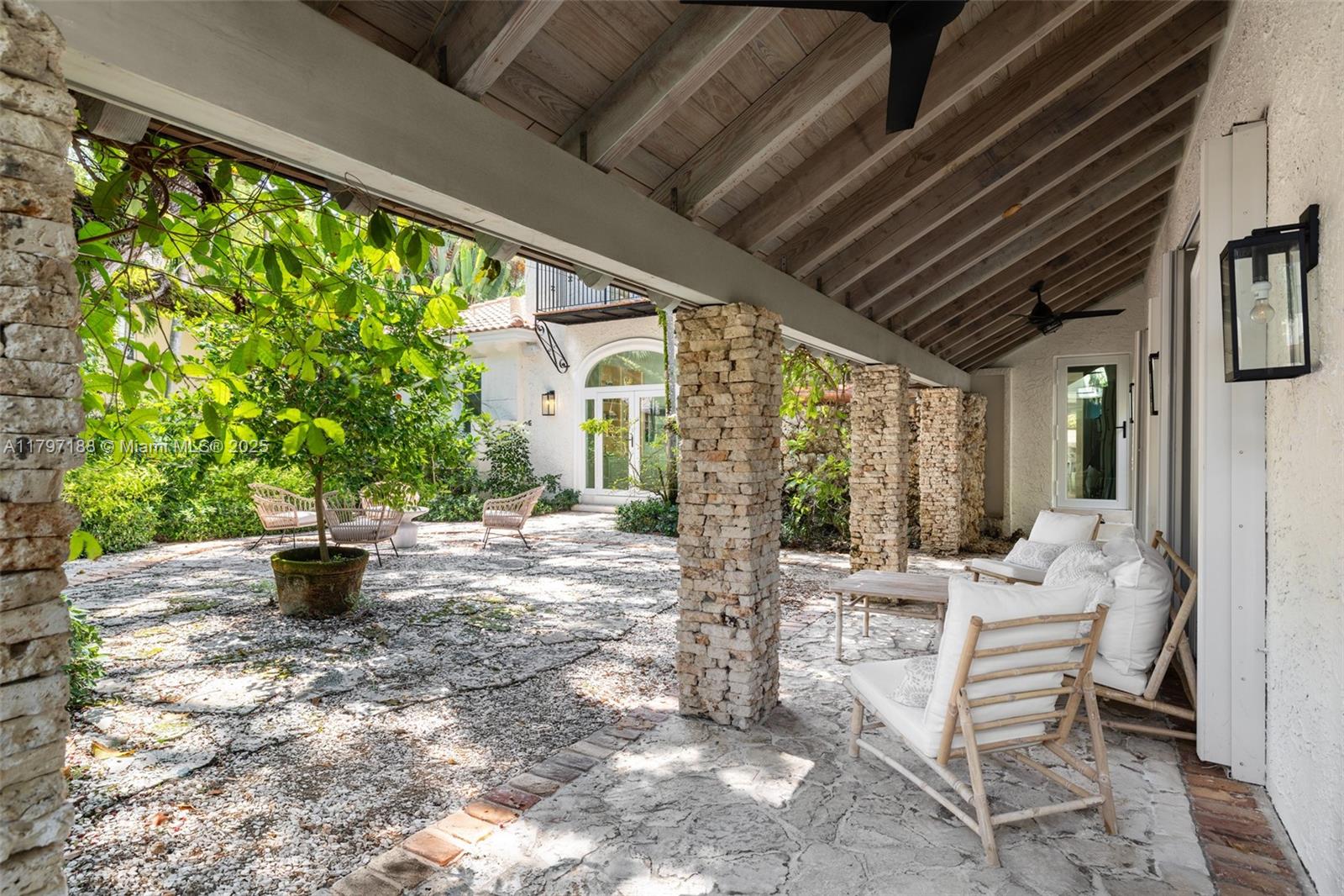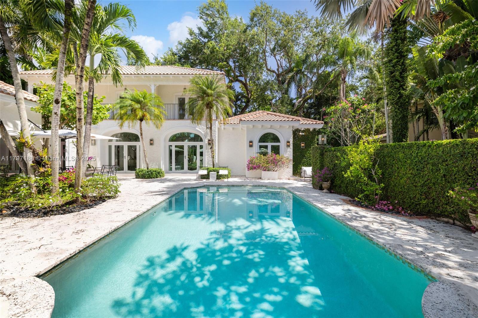 Captivating home in coveted “Ye Little Wood”- a gated enclave nestled along a tree-canopied winding road. Magazine quality total renovation will meet the most discerning buyer’s expectations. Experience a fusion of classic & contemporary design in light-filled living spaces featuring vaulted beamed ceilings, stone fireplace and an abundance of windows - creating a seamless connection between indoor & outdoor spaces. The expansive top-of-the-line kitchen features cooking island, gas range & skylights w/ tree-top views. Charming separate guest house has 1BR/1BA + living room. Enjoy ultra-private outdoor living & entertaining around the tranquil pool and in the magical gardens surrounding the home. Walk or bike to the historic Grove village, top-tier schools and to bayfront parks & marinas.