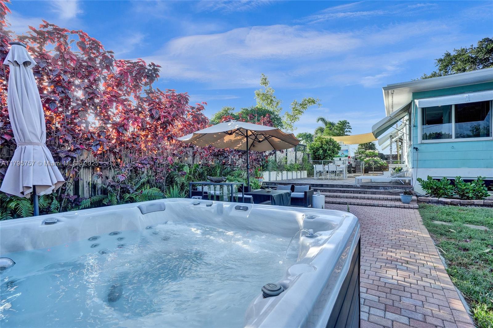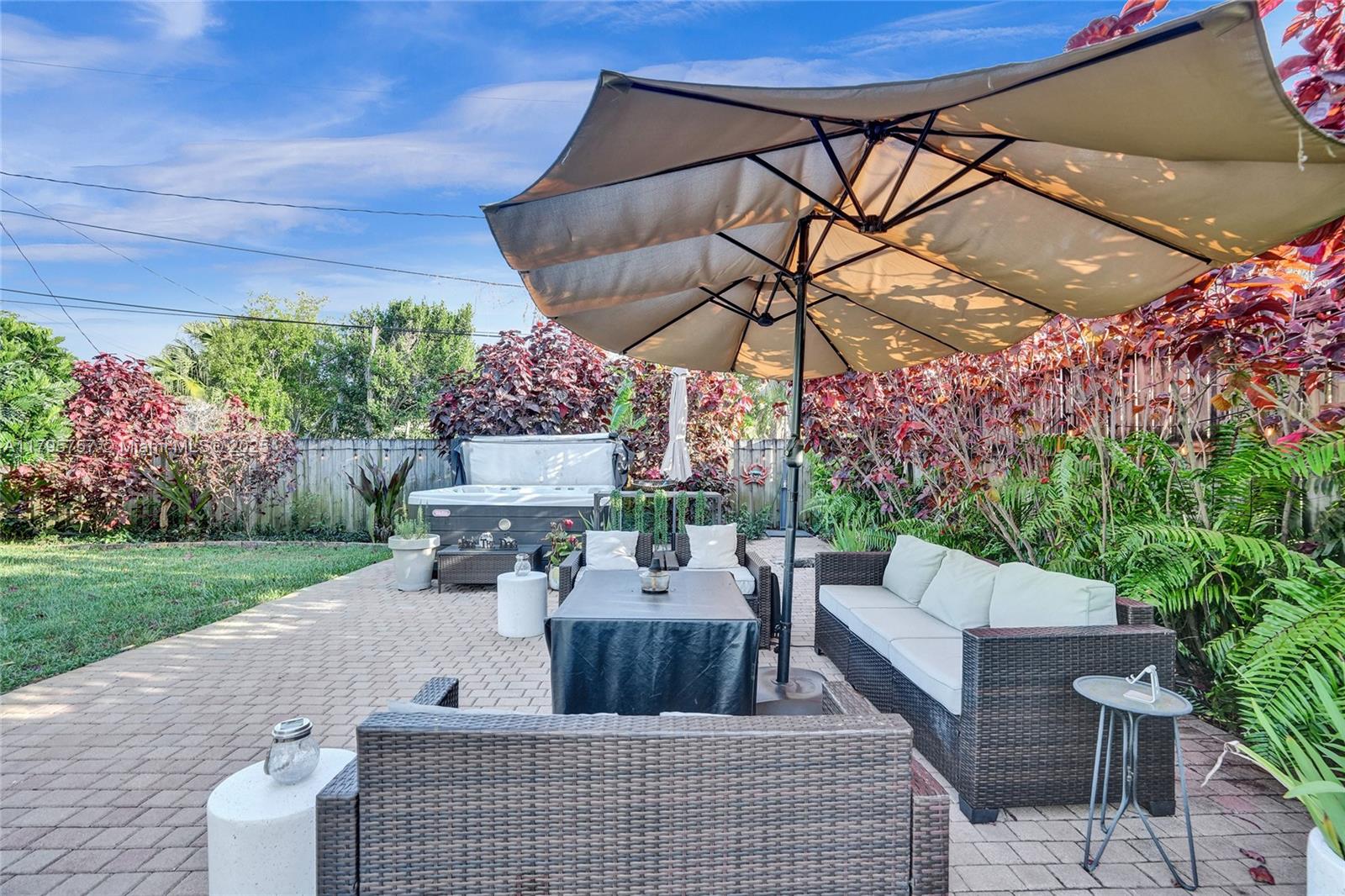 Charming cottage vibe, ranch-style home 1 mile from the beach, tucked away one street off popular Atlantic Blvd. NEW 2021 roof, PVC plumbing, AC 4 yo, 2025 renovated primary bathroom, hurricane impact windows/doors, & spacious basement with both interior & private exterior access, perfect for guests, storage, or studio. Open kitchen with white cabinetry, marble countertops, & stainless steel appliances. Island provides additional prep space & casual seating, seamlessly transitioning into dining area. Large fully enclosed yard with garden, porch & outdoor area ideal for entertaining or relaxing under the sun. Enjoy the zen-inspired outdoor shower, or soak under the stars in the private jacuzzi included with the sale. Oversized driveway perfect for vehicle, boats, jet skis, work trucks etc.