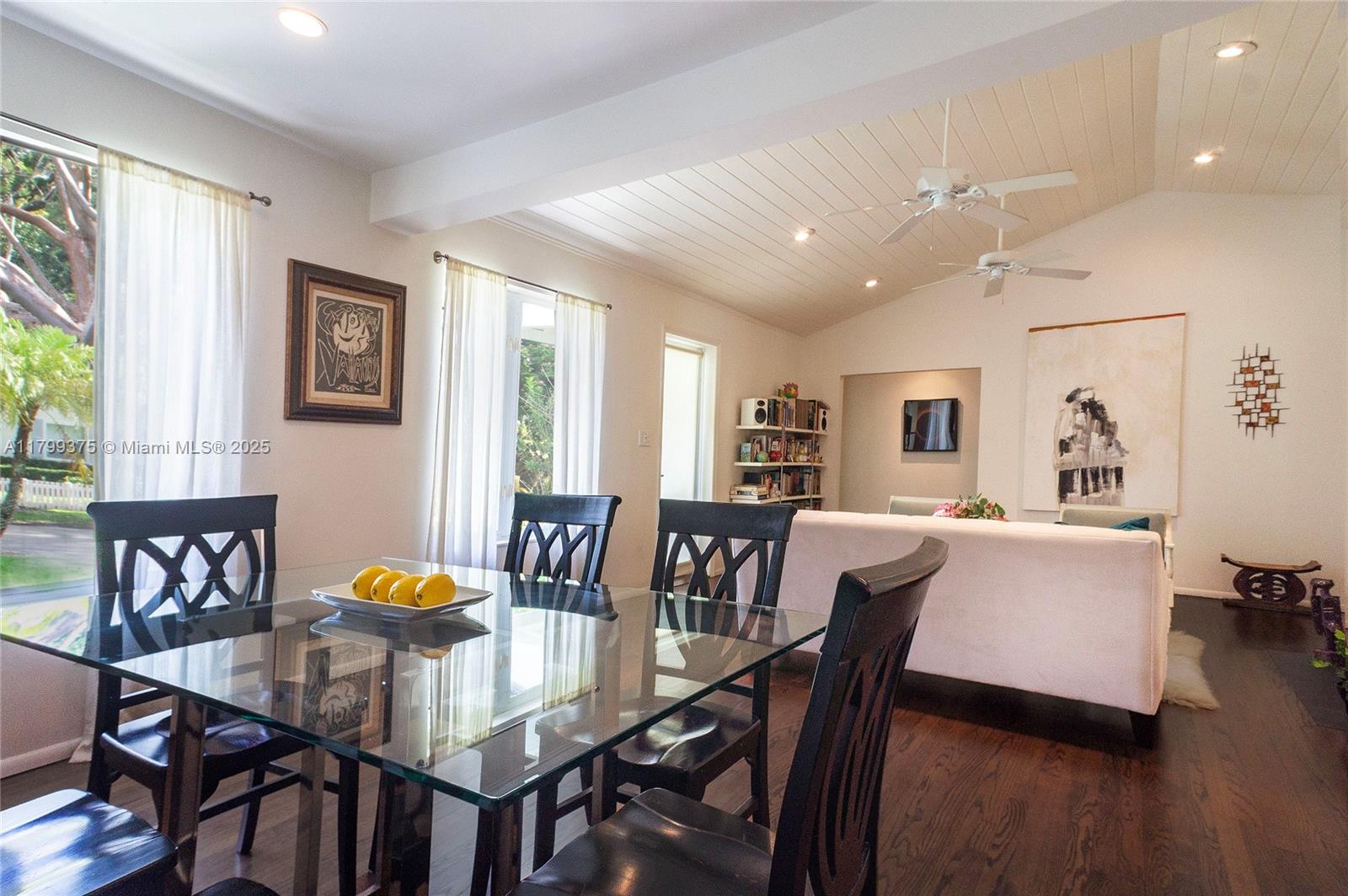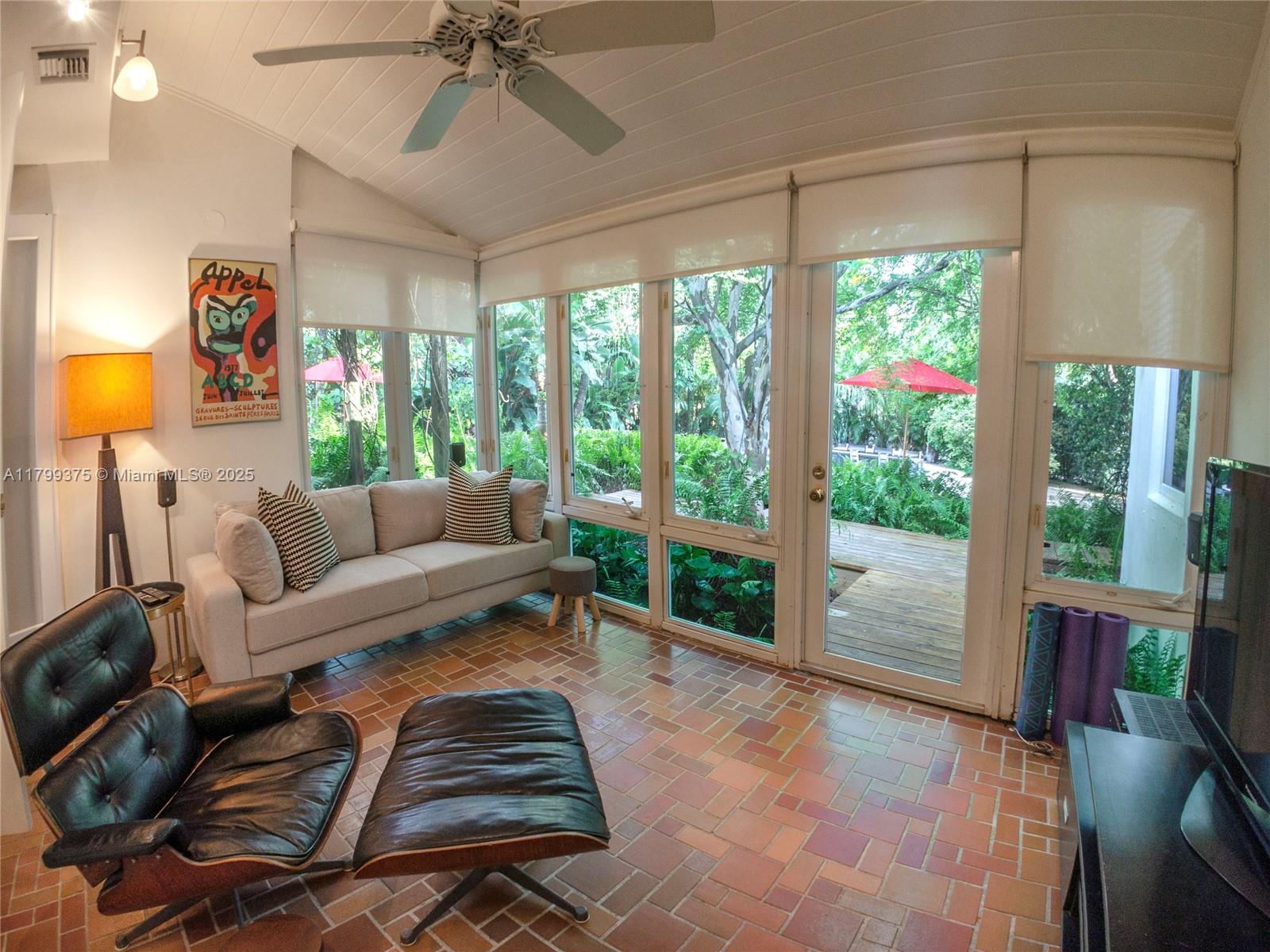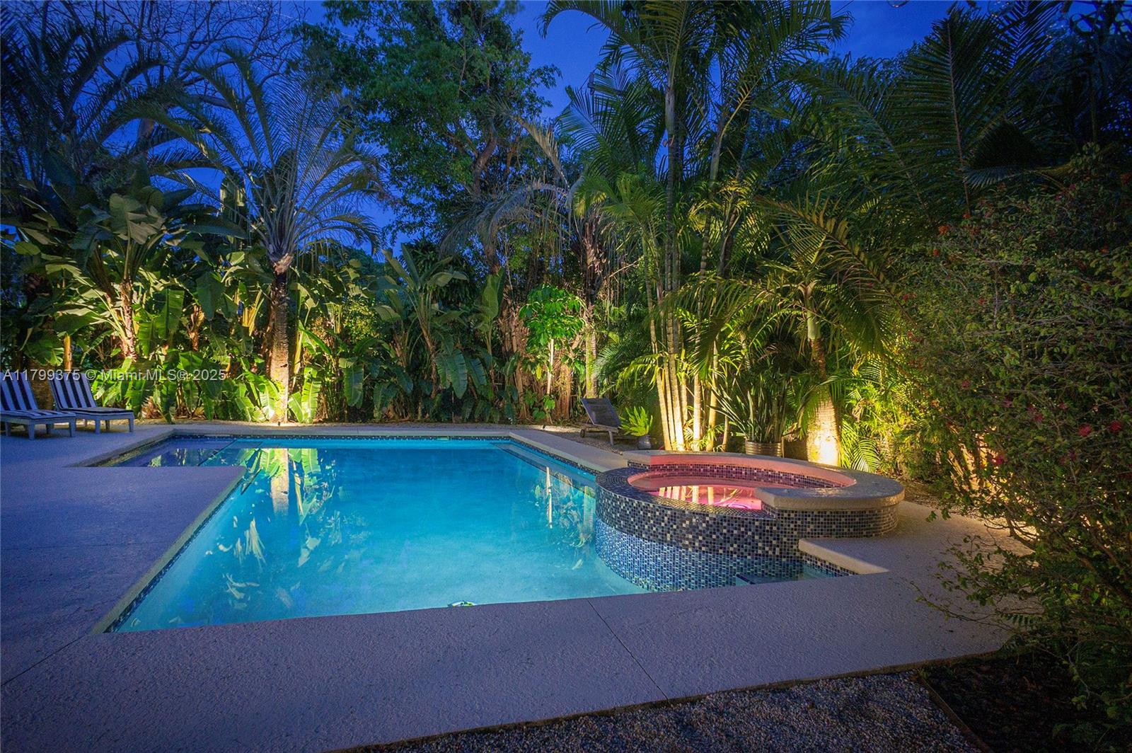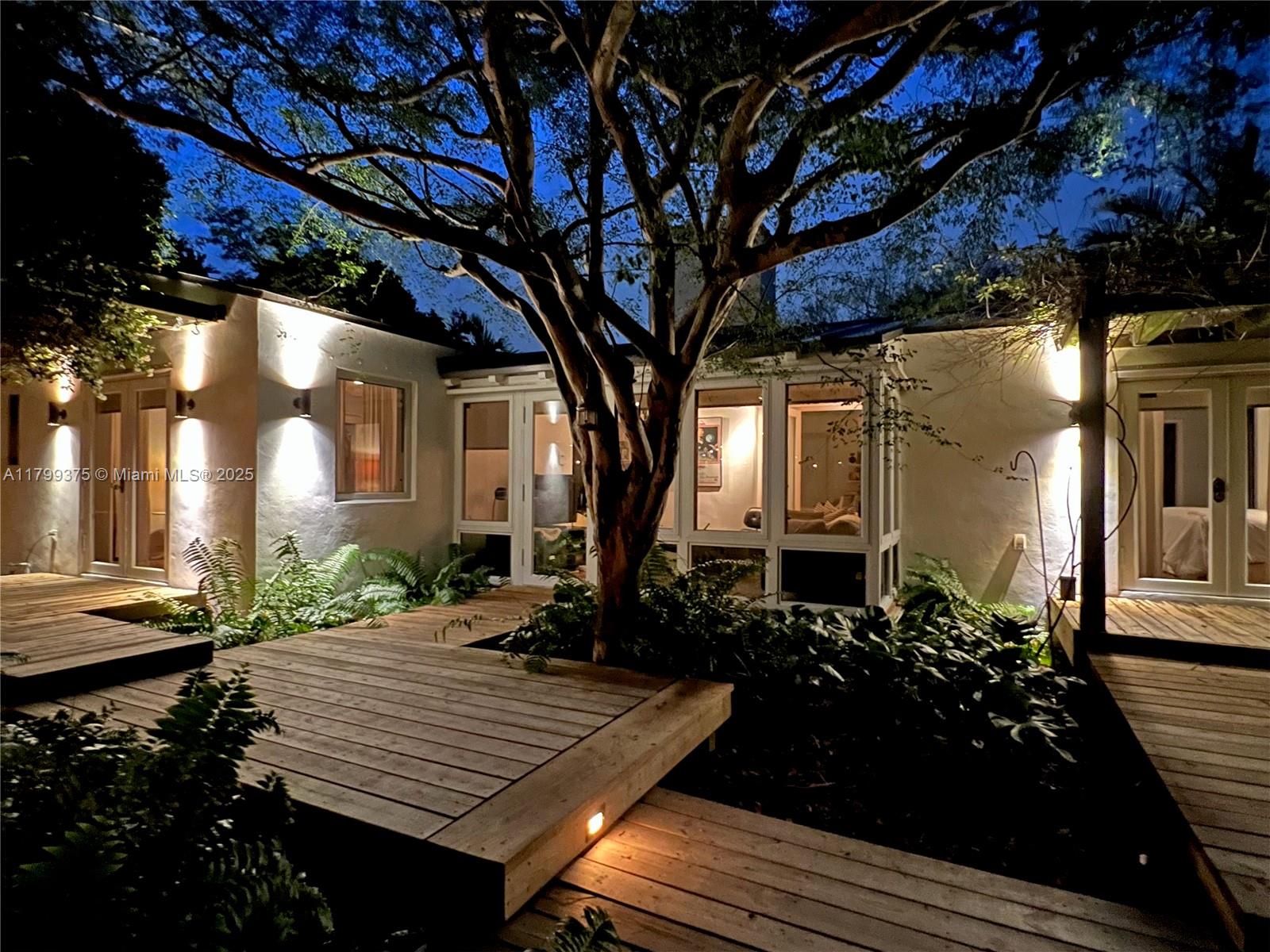 Tropical Charm meets California Cool in a unique pool home in prime Miami Shores location. This storybook house blends vintage character with modern updates and artistic touches w/ a serene private backyard on an oversized 11,700 sq ft lot. Non flood zone. This bright airy home features a desirable split-bedroom layout. The expansive master suite offers generous walk-through closets, a spa-like bathroom and direct access to the lush backyard. A sunny Family Room opens to shaded wood decks and large pool with sun shelf and jacuzzi, ideal for lounging and entertaining! Laundry room w/ ample storage, new spacious storage shed, newer aluminum roof. Live the Miami Shores lifestyle, oak-lined streets, minutes to top schools, golf course, trendy restaurants, shops and beaches. Actual Sq Ft 1,850