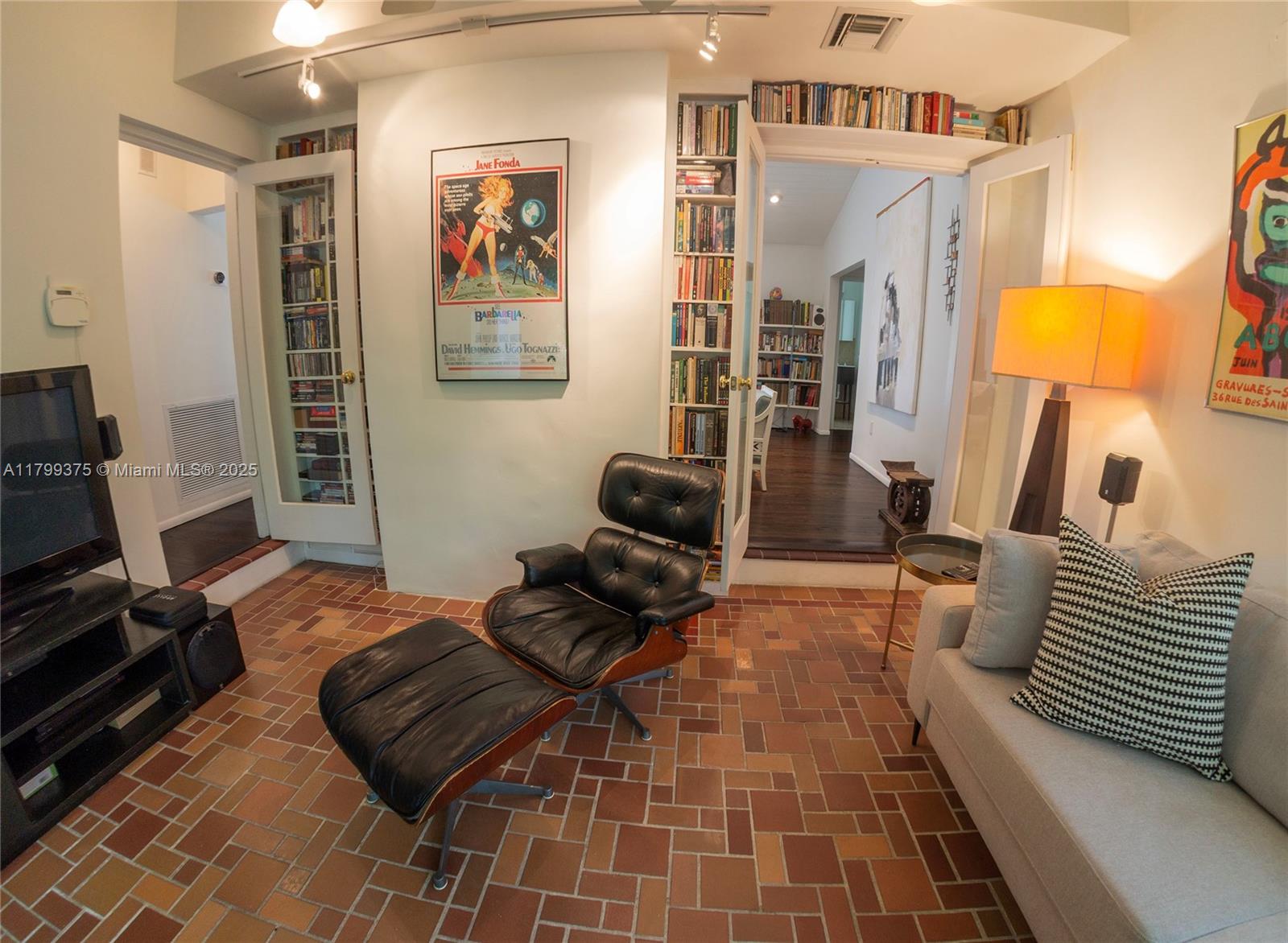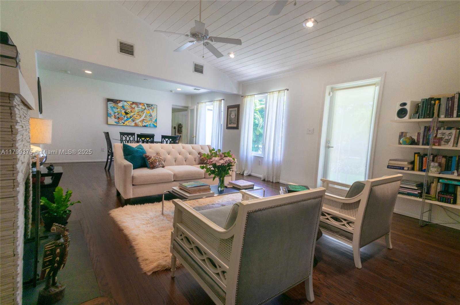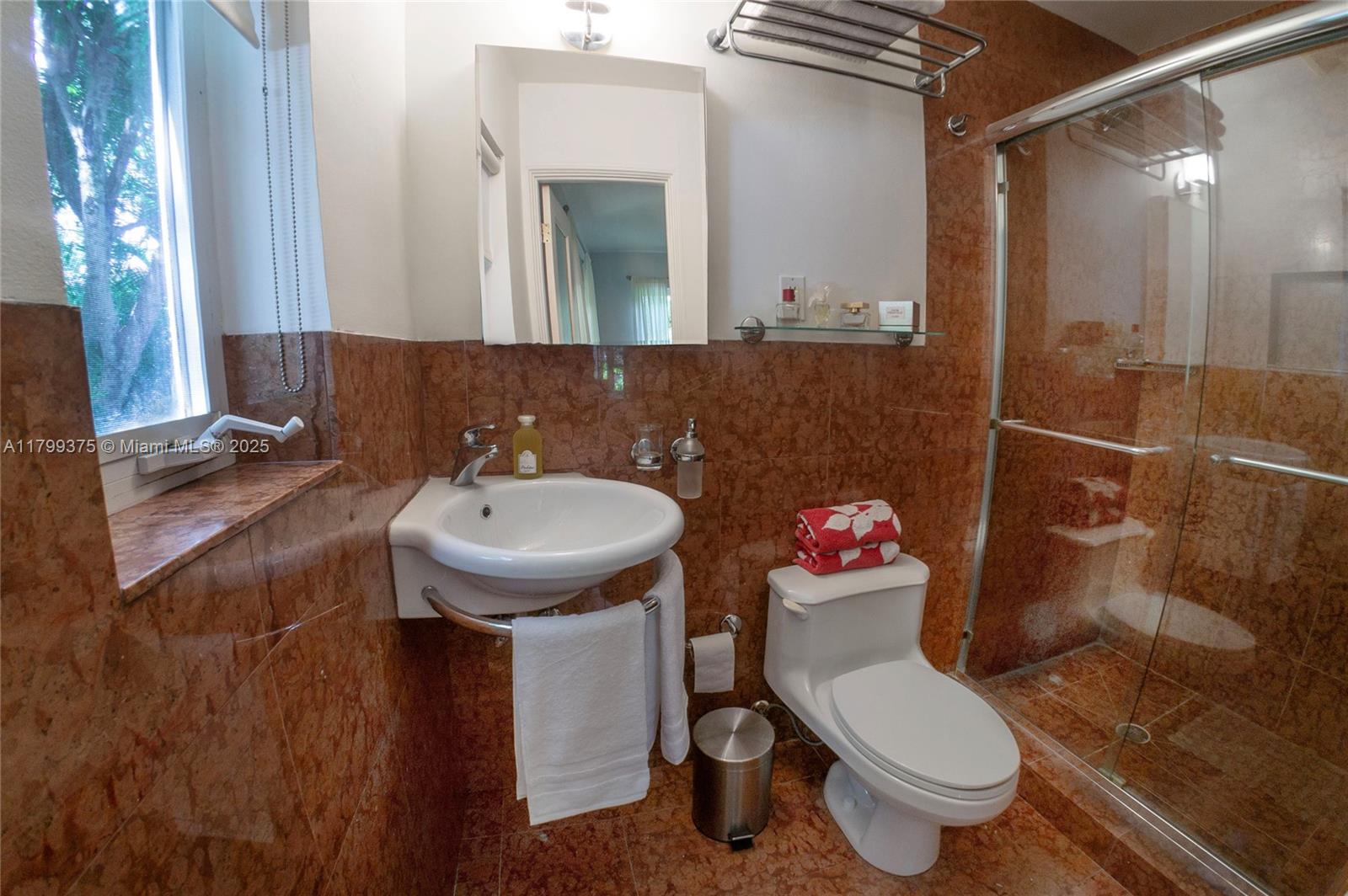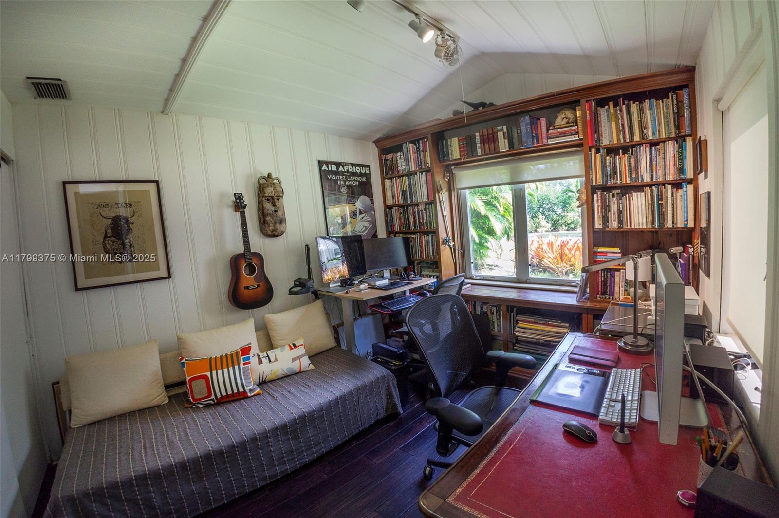 Tropical Charm meets California Cool in a unique pool home in prime Miami Shores location. This storybook house blends vintage character with modern updates and artistic touches w/ a serene private backyard on an oversized 11,700 sq ft lot. Non flood zone. This bright airy home features a desirable split-bedroom layout. The expansive master suite offers generous walk-through closets, a spa-like bathroom and direct access to the lush backyard. A sunny Family Room opens to shaded wood decks and large pool with sun shelf and jacuzzi, ideal for lounging and entertaining! Laundry room w/ ample storage, new spacious storage shed, newer aluminum roof. Live the Miami Shores lifestyle, oak-lined streets, minutes to top schools, golf course, trendy restaurants, shops and beaches. Actual Sq Ft 1,850