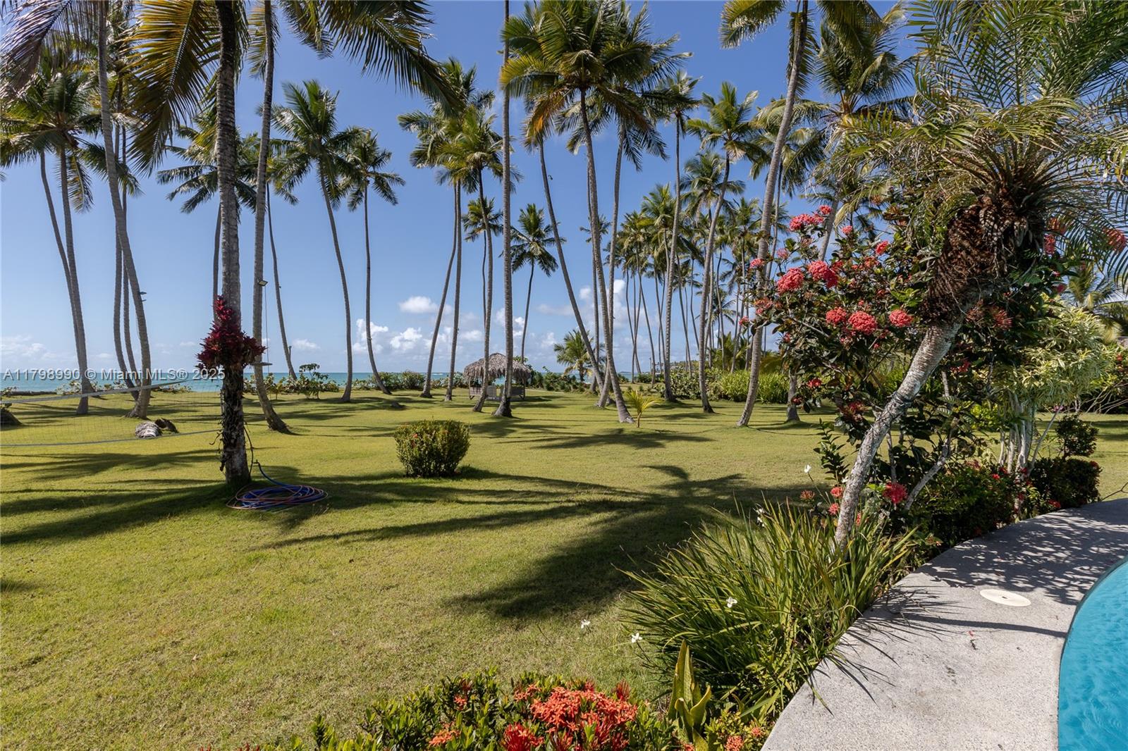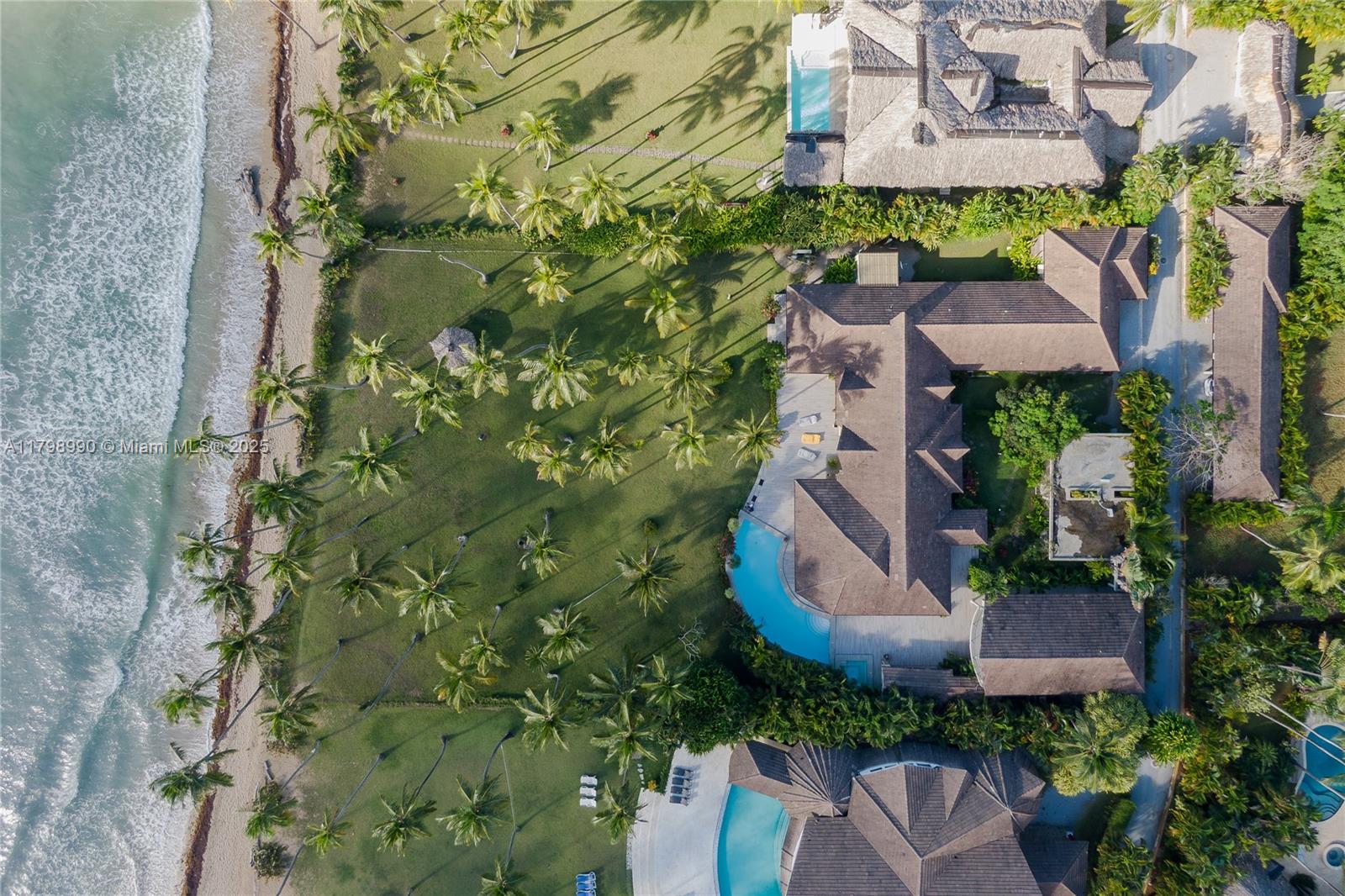 Oceanfront estate in Las Terrenas with 124.7 feet of direct beach frontage. This fully furnished and equipped 9-bedroom, 9-bathroom property includes artwork and decor, offering 7,067 sq ft of interior space, 4,570 sq ft of terraces, and sits on a 51,860 sq ft lot. Includes a 4,306 sq ft guest house and parking area. Built in 2006 and recently renovated. A rare opportunity for luxury living or rental investment in one of the most exclusive areas of the Dominican Republic.