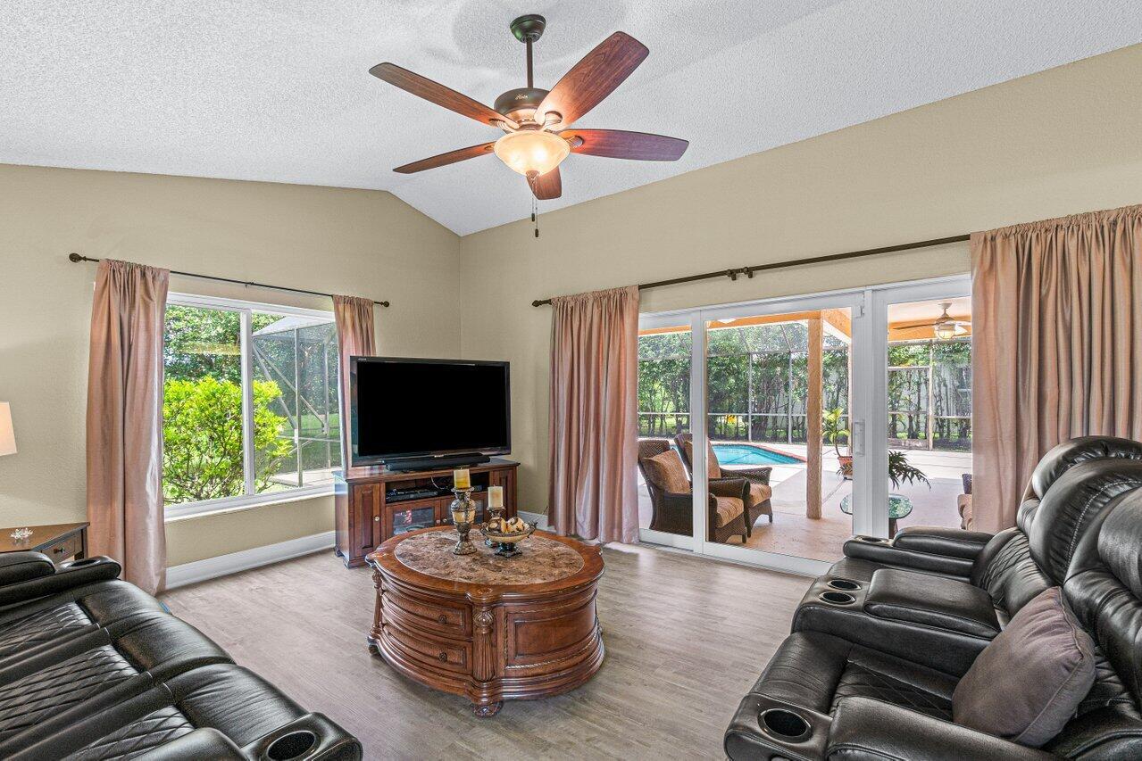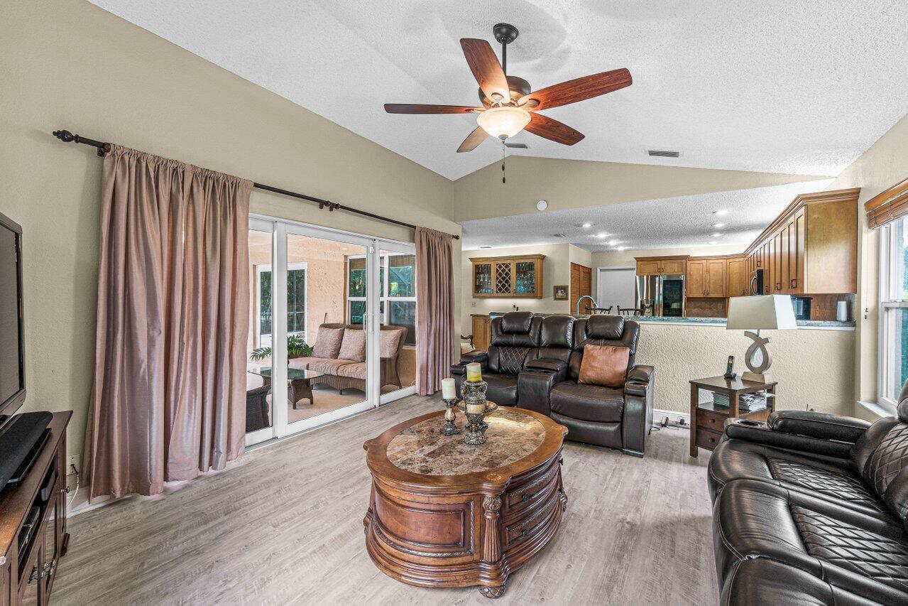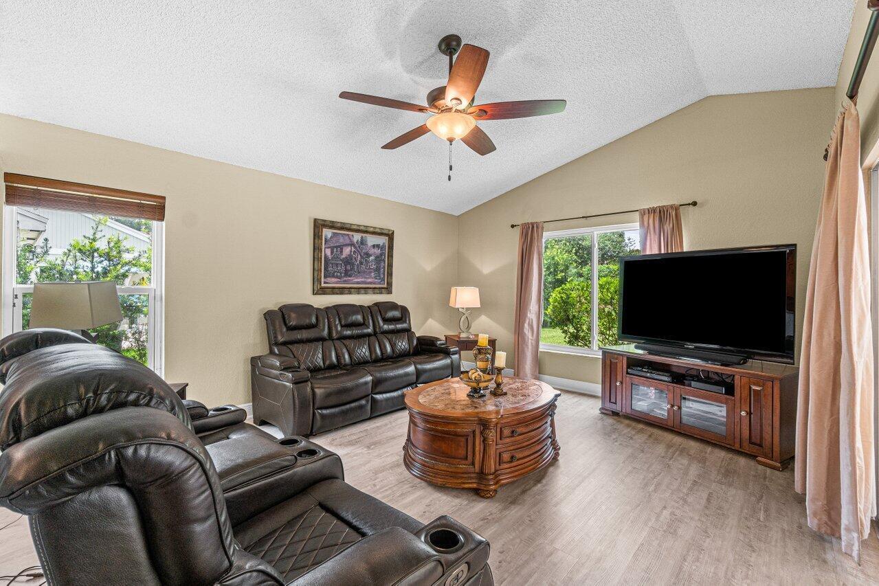 Welcome to 22075 Flower Drive, a beautifully maintained 4-bedroom home featuring a versatile den that can easily be converted into a 5th bedroom. Boasting 2.5 bathrooms, this residence offers a thoughtfully designed layout with space and comfort for the whole family. Enjoy peace of mind with HURRICANE IMPACT windows and doors throughout, a 2023 A/C system, and a working fireplace. The updated kitchen includes sleek stainless steel appliances, blending style and functionality to elevate your daily living experience. Step outside into your private oasis, where a screen-enclosed pool area awaits. Surrounded by lush landscaping and fruit trees, this backyard is perfect for both relaxation and entertaining.