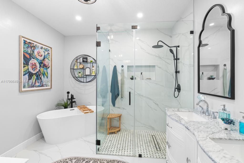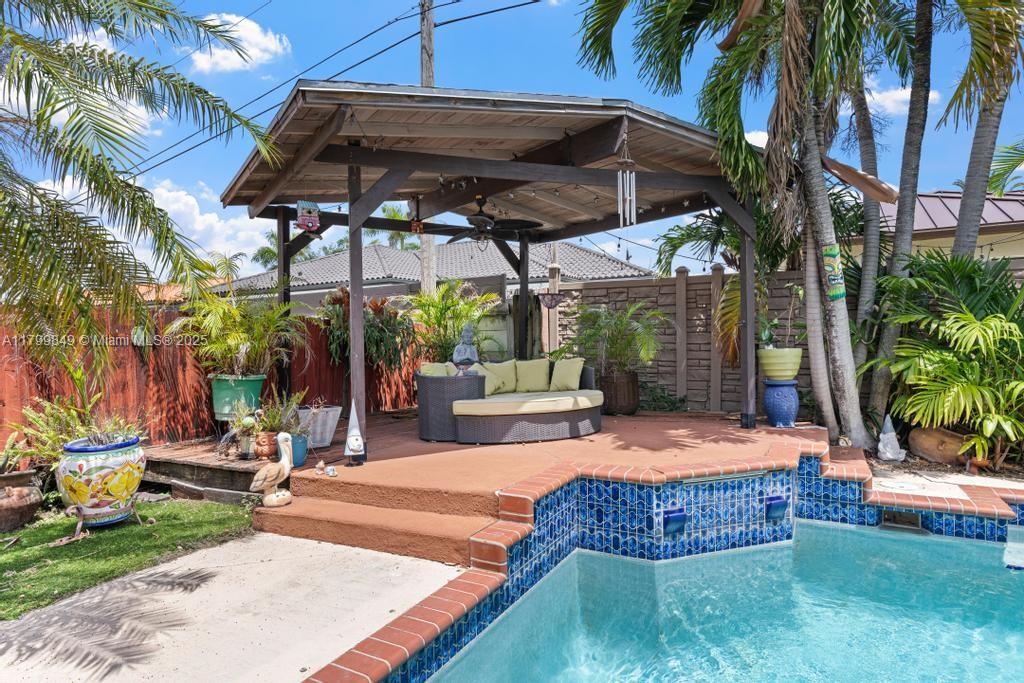 Welcome to your slice of paradise in the desirable Miami Lakes area! This beautifully designed 3-bedroom, 2-bathroom home is perfect for families and entertainers alike. Step inside to discover a brand-new kitchen that boasts elegant marble countertops and modern stainless appliances, ideal for culinary enthusiasts. The spacious master bedroom features a luxurious newly renovated bathroom, providing a serene retreat for relaxation. Enjoy Florida's sunshine in your expansive outdoor space, complete with a large pool, generous patio area, and outdoor kitchen, are perfect for hosting gatherings or simply lounging in the sun. With a two-car convertible garage and a spacious driveway, parking is never an issue. Don't miss your chance to make your dream home a reality!