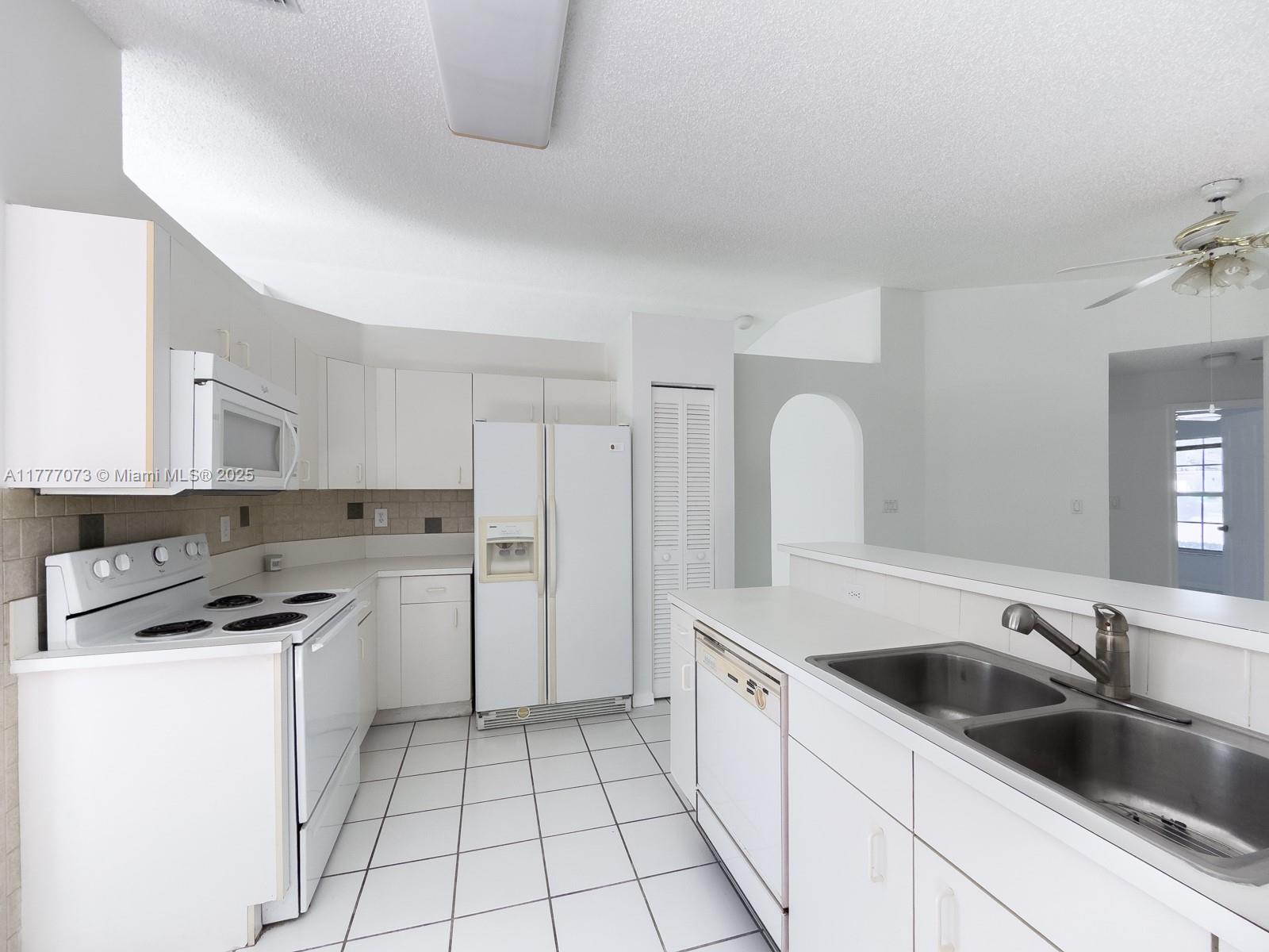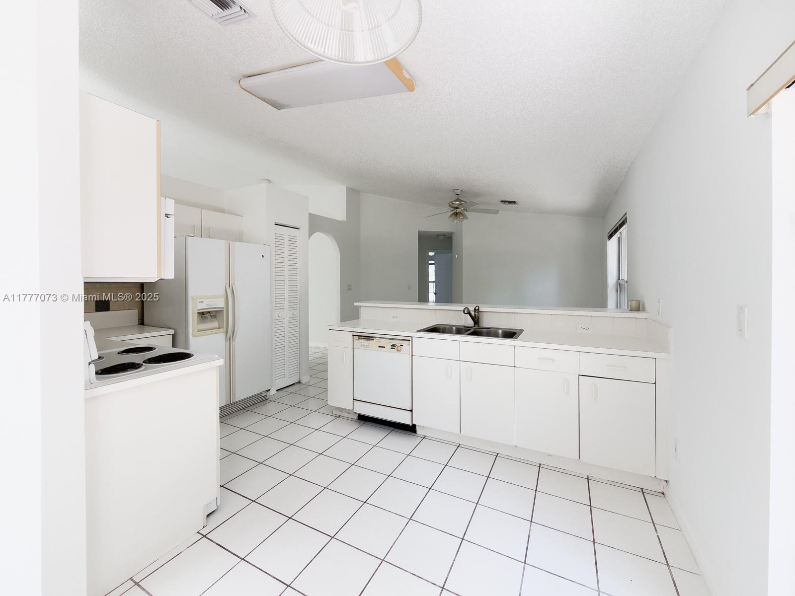 Excellent Opportunity to Customize Your Dream Home! Freshly painted one-story home in a private community with vaulted ceilings and a split floor plan. Features neutral tile flooring, spacious primary suite with dual sinks, separate tub/shower, and walk-in closet. Accordion shutters, fenced yard & covered patio ideal for relaxing or entertaining. Major updates: new A/C (2022), water heater (2023) & a brand-new roof being installed before closing! Low $148/month HOA includes front lawn care, night security, and community pool. Prime location near highways, top restaurants, shops, parks, and not in a flood zone!