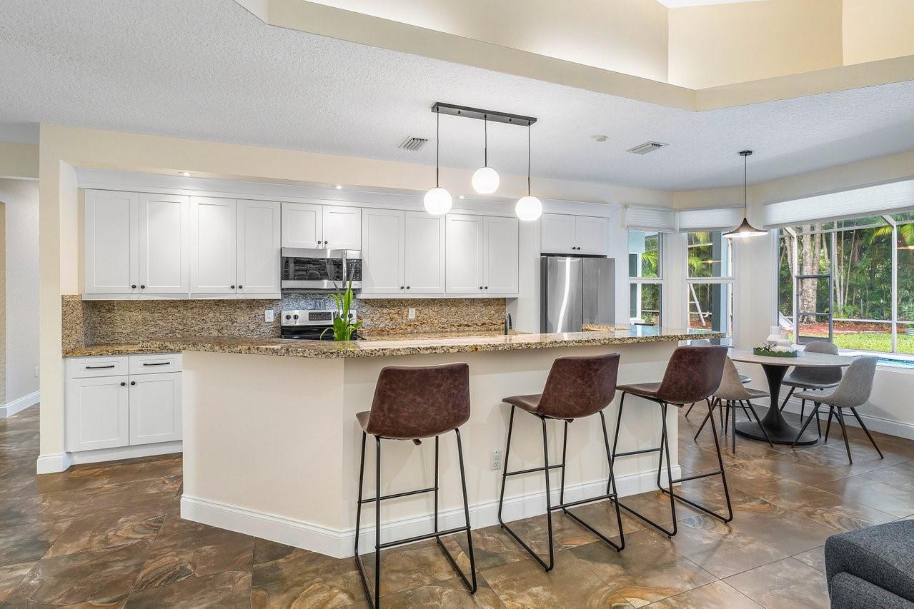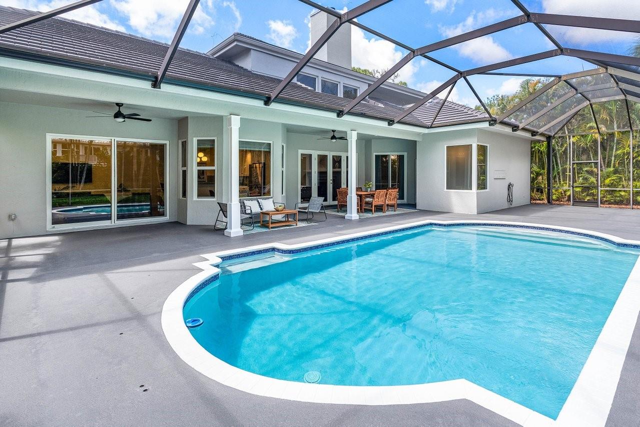 This stunning 5-bedroom, 4-bathroom home offers a spacious and light-filled layout with 2 bedrooms and 2 full bathrooms conveniently located on the first floor. A 2020 roof and full impact windows and doors provide peace of mind. Soaring 2-story ceilings and expansive windows flood the interior with natural light, creating an airy, welcoming atmosphere and allowing for panoramic views of the pool and manicured grounds. The open-concept family room flows seamlessly into a crisp white island kitchen, perfect for entertaining. Step outside to enjoy lush landscape, heated pool, and serene outdoor spaces. The 1st floor secondary bedroom is suitable for the in-laws.
