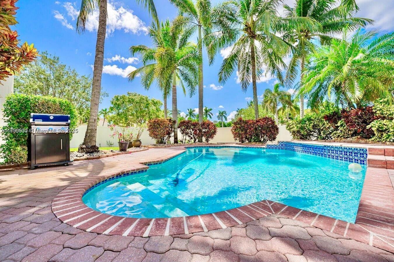 Turnkey Pool home located on an oversized Double Corner-Lot. Located within the private and guard-gated community of Marina Isles, this home features high volume ceilings, all custom bathrooms, and a sleek modern kitchen complete with a large center-island, and breakfast nook. Home boasts porcelain tile and real wood flooring throughout, and is fully protected with accordion-shutters. Enjoy a Huge primary suite with THREE Walk-In Closets, plus a spa-inspired bathroom. Fully Fenced Backyard shows a large pool area with green open spaces. Home is located within walking distance to The Miramar Tennis Complex. HOA includes Internet, Cable, and more!