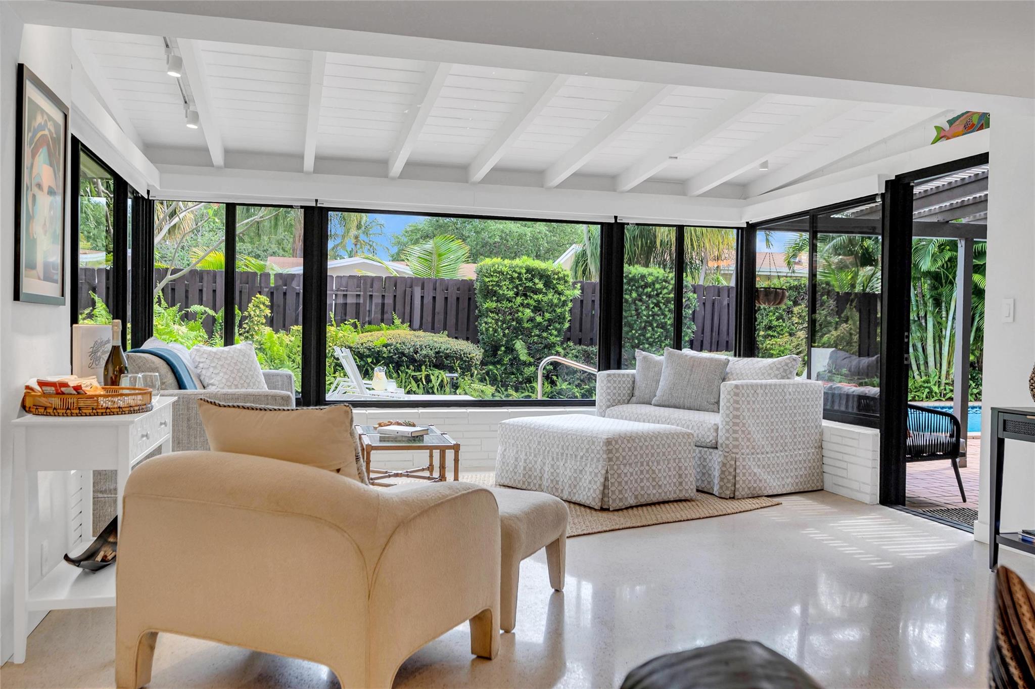 Boho-chic 3BR/2BA bungalow in Fort Lauderdale’s exclusive Harbor Beach Inlet neighborhood. This open-concept home features original refinished terrazzo floors throughout with 2 spacious living areas, fully equipped kitchen, dining room for 8, & a laundry room. The lush tropical backyard is a private oasis with a heated pool, outdoor dining for 6, grill, & loungers—perfect for entertaining & relaxing. Attached carport for 2 plus a driveway for an additional 2 cars. Ideally located .5mi from world-renowned Pier Sixty-Six, Port Everglades, Las Olas, & top restaurants. Whether used as a private retreat or high-demand rental, this home offers the perfect blend of style, comfort, & unbeatable beachside convenience. Currently a high income producing Luxury Short term rental w. Latitude Key.