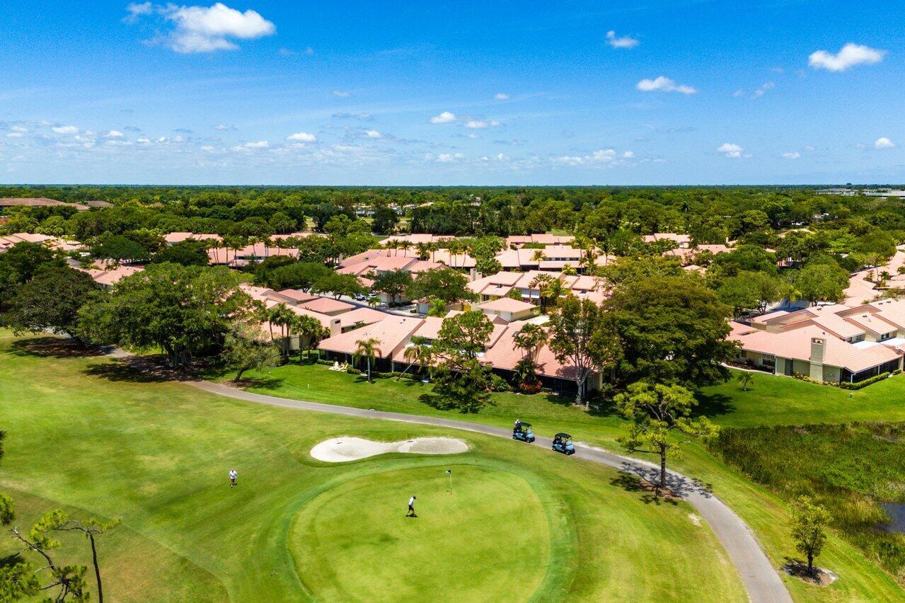 Discover resort-style living at its finest in this rarely available three-bedroom, three-bathroom home, ideally situated in one of PGA National's most sought after Golf Course locations. This low-maintenance gem is within a five minute leisurely walk to the PGA National Resort and PGA's top-tier, fine dining. Enjoy stunning golf course views overlooking the 10th hole of the Fazio course from your own backyard. with a desirable southern exposure. This home is designed for comfort and style, featuring high volume ceilings, an updated kitchen with granite countertops, and a beautiful community pool just steps away.
