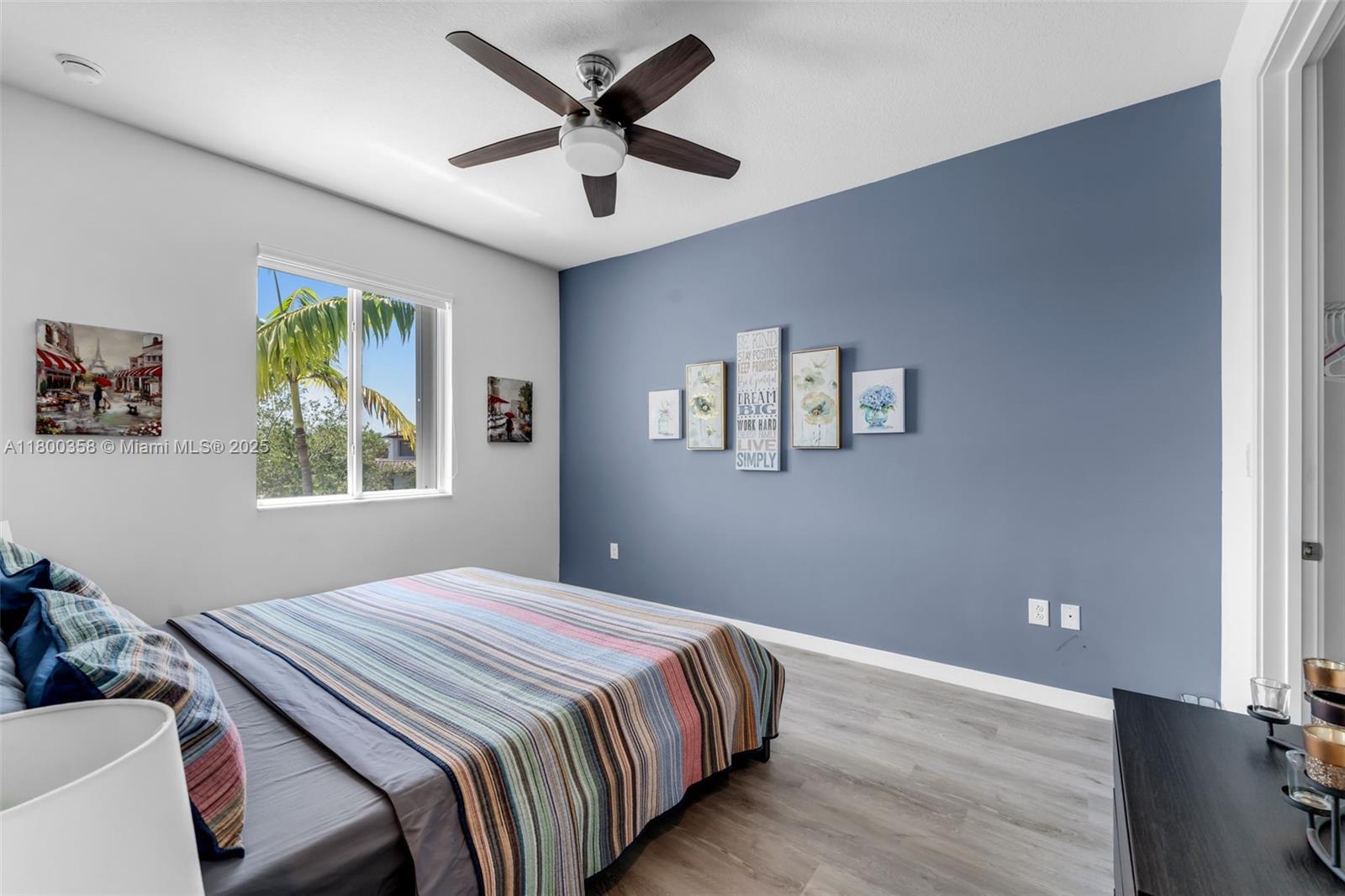 Discover refined living in this spacious 1,902 sq ft townhome, boasting 4 bedrooms and 3 full bathrooms. Enjoy the convenience of a first-floor bedroom with full bath, elegant tile flooring throughout the main level, and beautiful hardwood on the stairs and second floor (absolutely no carpet!). The modern kitchen features new, less than one-year-old appliances, including a washer and dryer. Step outside to a newly laid concrete backyard, perfect for container gardening. Added perks include an electric car charger outlet, a security system for peace of mind, ceiling fans in every room, and impressive 10 ft coffered ceilings. Upstairs, generously sized bedrooms with walk-in closets, and a large primary suite complete with two walk-in closets, a soaking tub, separate shower and double sinks.