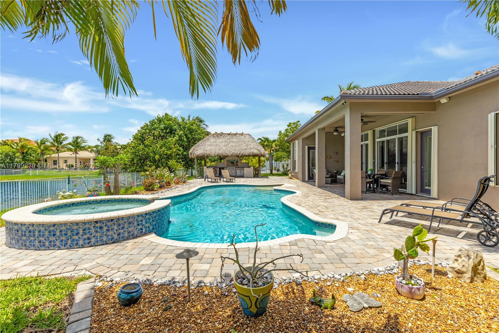 Beautiful 4BD/3BA lakefront home in a gated Cooper City community! Enjoy serene lake views from your private backyard with a full tiki hut & built-in kitchen, perfect for entertaining. This spacious, well-maintained home offers an open layout, updated kitchen, and bright living areas. Located in a quiet, desirable neighborhood, close to parks, top schools, dining, & highways. Don’t miss this rare opportunity to live the ultimate Florida lifestyle! The oversized primary suite offers water views, dual walk-in closets, & a luxurious en-suite bath. Additional highlights include high ceilings, hurricane protection, a 3-car garage, and ample space for families & gatherings. Move-in ready & waiting to impress!