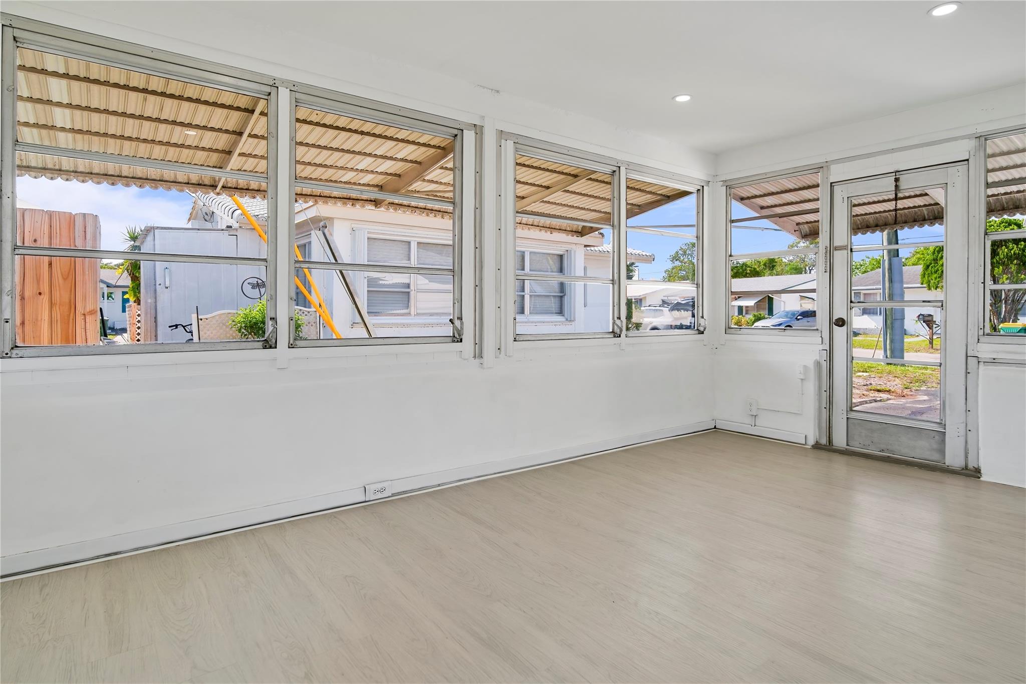 Move in Ready! Beautifully updated 2/2 with the ability to easily convert to a 3 bedroom home. Featuring an open floor plan, this residence offers a spacious living area and a modern kitchen with stainless steel appliances. All ages! Low Hoa! Great central location close to beach, I95 and Turnpike. New roof in April 2025. Modern bathrooms, Newer AC from 2023, New tankless water heater, New waterproof LVT (Luxury Vinyl Tile) flooring. Community pool & access to a local park and local waterways for endless entertainment. The home has two separate entrances - the rear bedroom/Florida room has its own separate entrance. The home has two separate driveways too and parking for 3 vehicles. Per the HOA, nor rentals allowed in first 5 years of ownership. Owner agent.