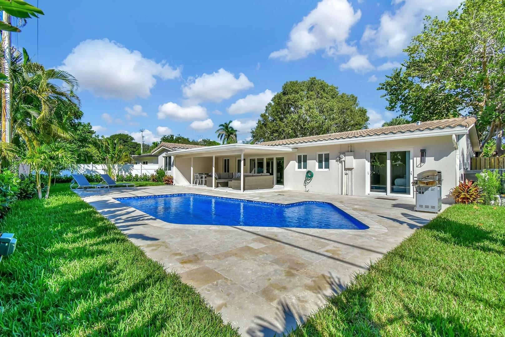 A rare opportunity to own a fully renovated home on one of Lighthouse Point’s most desirable streets! This beautiful 3-bed, 3-bath home offers 1,900 total sqft of modern design with timeless elegance. Renovated in 2022, it features bedrooms with en-suites, an open floor plan, a kitchen island, and spacious living areas. Step outside to your private oasis with a heated pool, BBQ, covered patio, and outdoor dining space—perfect for relaxing Florida evenings. Enjoy a 1-car garage, circular driveway, and lush landscaping.