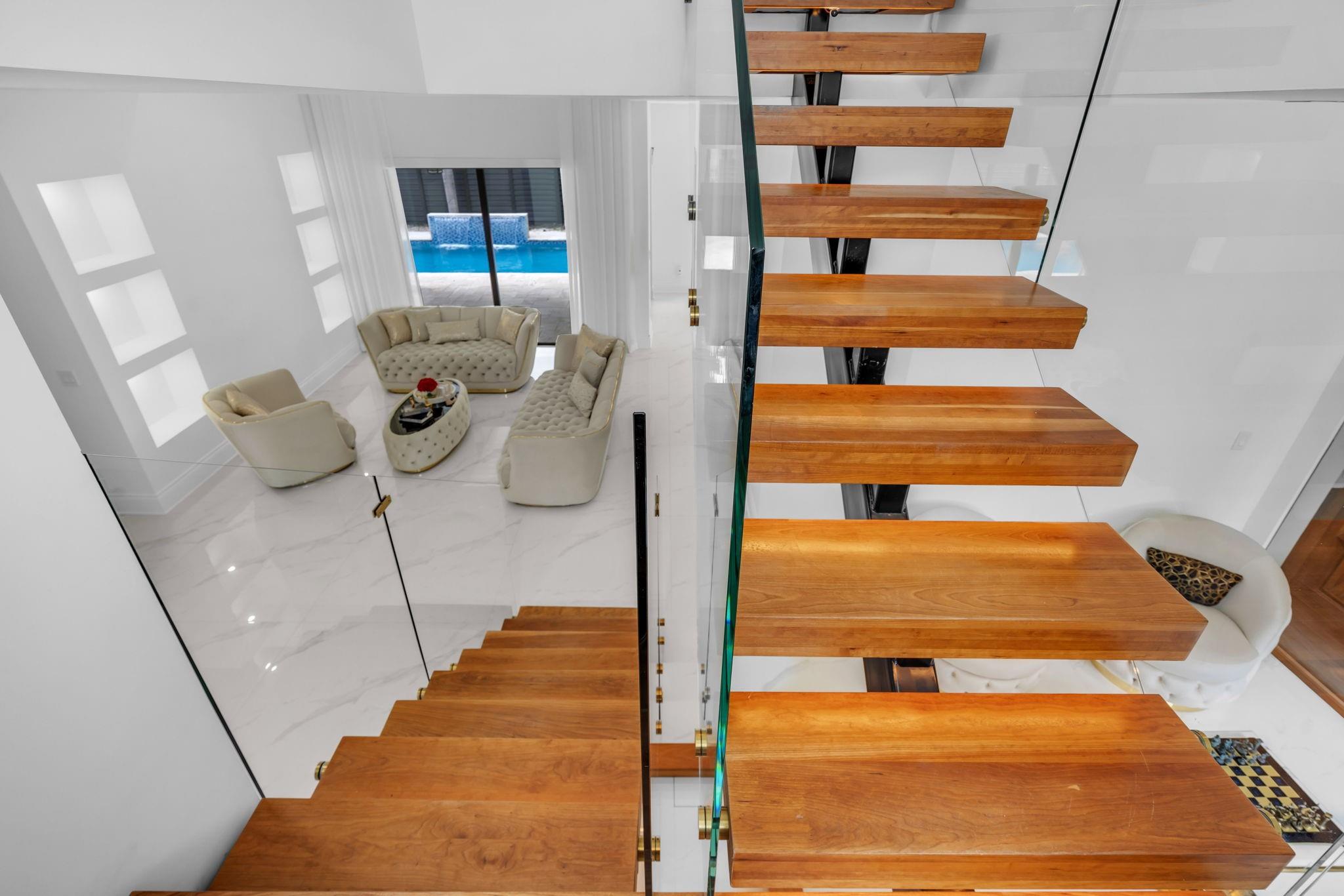 This exquisite Miami Lakes estate, rebuilt in 2024 with no HOA, redefines luxury. Featuring impact-resistant windows, all-new electrical and plumbing systems, and a gourmet kitchen with Italian appliances and custom solid wood cabinetry, every detail exudes sophistication. The grand staircase and wine cellar showcase rich American red cedar, while hand-carved Italian marble fountains and statues add European elegance. Spa-like bathrooms with Moen fixtures and professionally landscaped grounds complete this masterpiece—a rare blend of modern craftsmanship and timeless prestige.