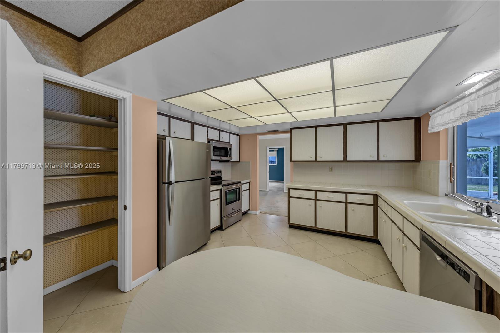 Spacious 4-bedroom pool home featuring an excellent floor plan and complete storm protection. This well-cared-for home is full of potential and ready for your personal touch! With generously sized bedrooms, tons of closet space, and stainless steel appliances, there is plenty to love. This home has been maintained with pride and includes partial impact glass, accordion shutters, and impact-rated front and garage doors for peace of mind. Located in a great family-friendly neighborhood within walking distance to beautiful parks and recreation areas, close to schools, shopping, and major highways. No HOA allows boats, RVs, and no restrictions—minutes to downtown Fort Lauderdale, beaches, and the airport.