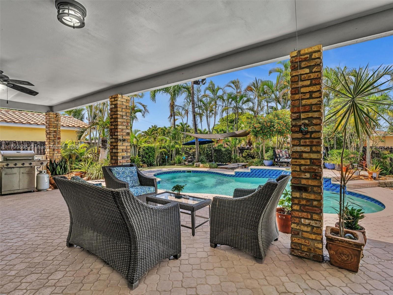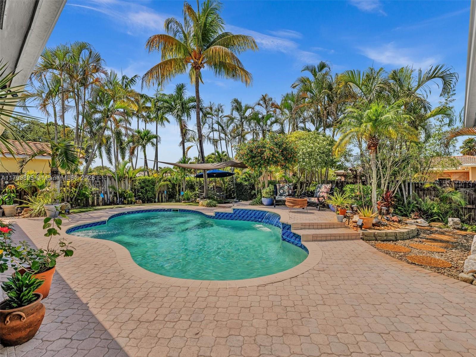 Discover your Hollywood Hills Oasis! This beautifully maintained, spacious 3/2 with a den/office. Perfect for a home office or a creative studio, ideal for anyone looking to blend work and comfort. A remodeled kitchen, granite counters, double oven, oversized pantry, and snack bar. Step out into the magical backyard, a covered patio, butterflies fluttering by, and a waterfall pool accented with a stunning mural on the side wall. Practice putting green, or simply enjoy the lush tropical landscaping. 3 serene ponds filled with w/Koi fish surrounded by water lilies, plus a welcoming pond in the front. Additionally: updated primary bth, 2-car gar. w/attic, new roof & water heater 2022, C/A/C 2024. No HOA fees. Mins. to schools, FLL Airport, shops, Memorial Hosp., FL Turnpike, US-441, and I-95.