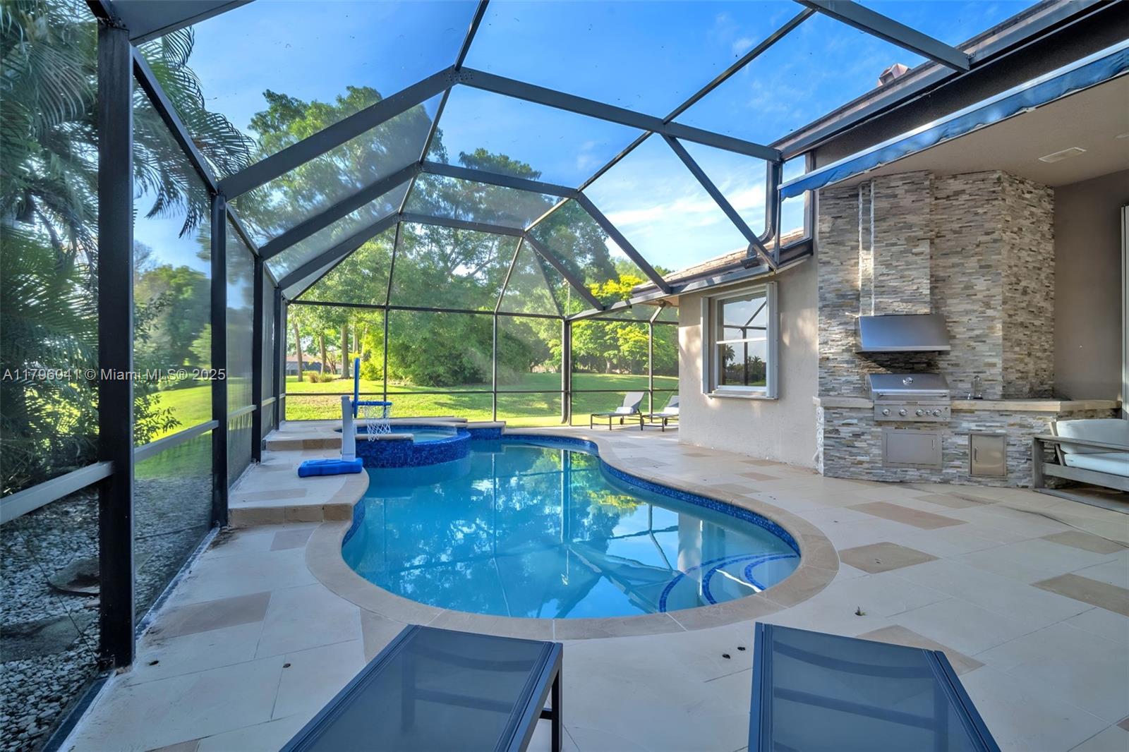 Welcome to this stunning one-story home nestled on 9,852 sq ft in the exclusive Weston Hills Country Club. With over 3,000 sq ft of refined living space, this 5-bed, 3-bath lakefront estate features a brand-new 2025 roof, soaring ceilings, marble floors, and a gourmet kitchen with quartz countertops and stainless steel appliances overlooking the pool and lake. The professionally designed interior and bathrooms add style and sophistication. The primary suite offers spa-style luxury with direct garden access. Lake views from the home’s main living spaces — a daily postcard. Minutes from A-rated schools, golf, and fine dining — this is Weston living at its finest.