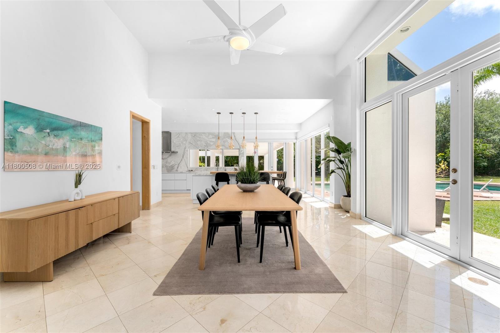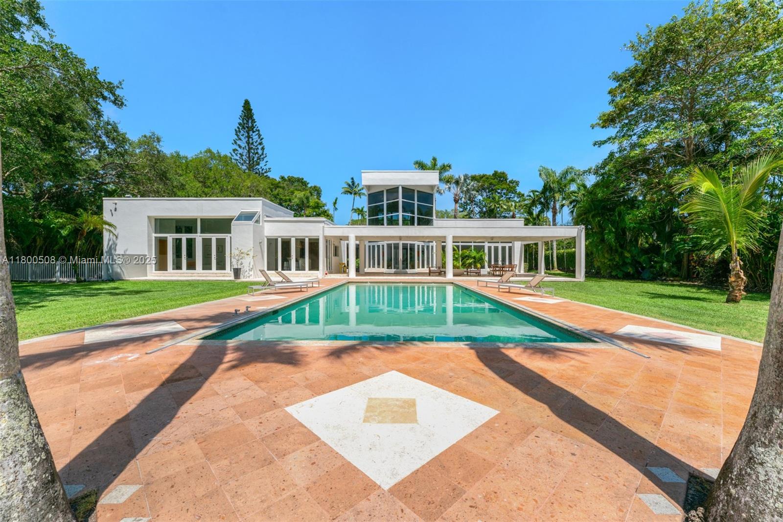 Step into refined luxury at this reimagined contemporary estate, nestled on a gated deep acre along one of North Pinecrest’s most prestigious streets. Fully renovated and filled with natural light, this home features soaring ceilings, marble floors, elegant formal living and dining rooms, and a gourmet natural stone kitchen with bar that opens to a spacious family room. Enjoy views of the beautifully landscaped grounds and oversized open pool. The split floor plan includes a separate upstairs loft with full bath, a lavish primary suite with spa-like bath, custom walk-in closets, and private office, plus three ensuite bedrooms in the children’s wing and a maid/guest suite. An expansive covered patio and a gated entry complete this entertainer’s dream.