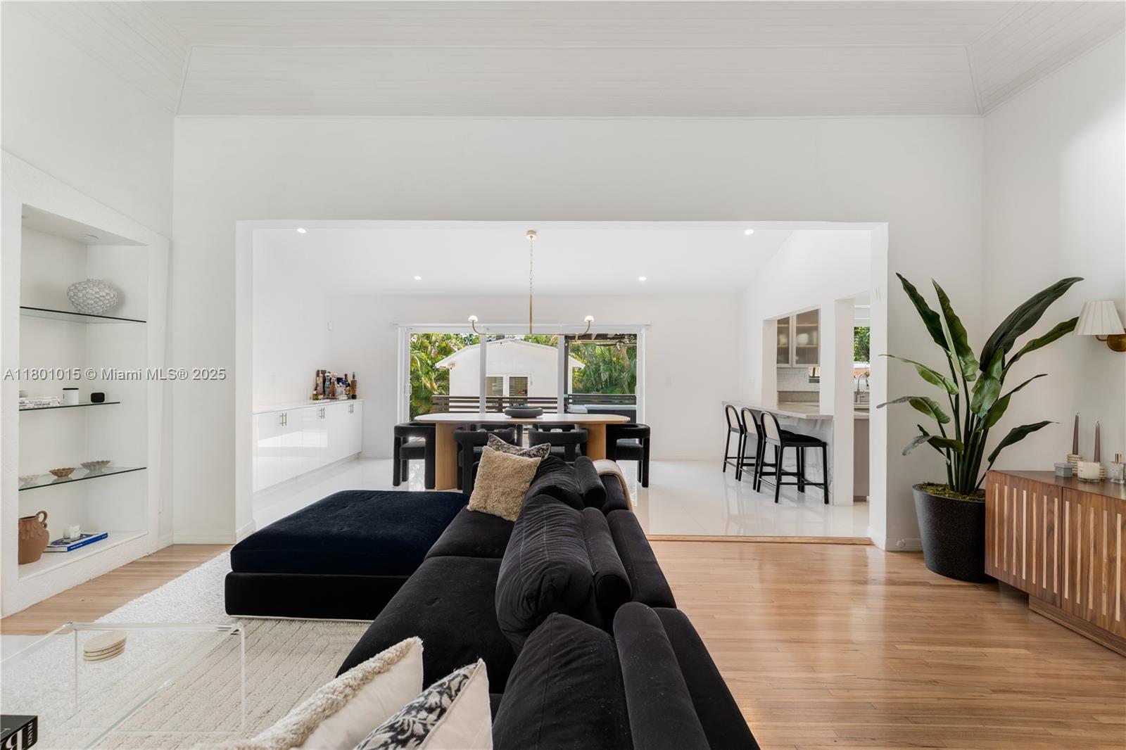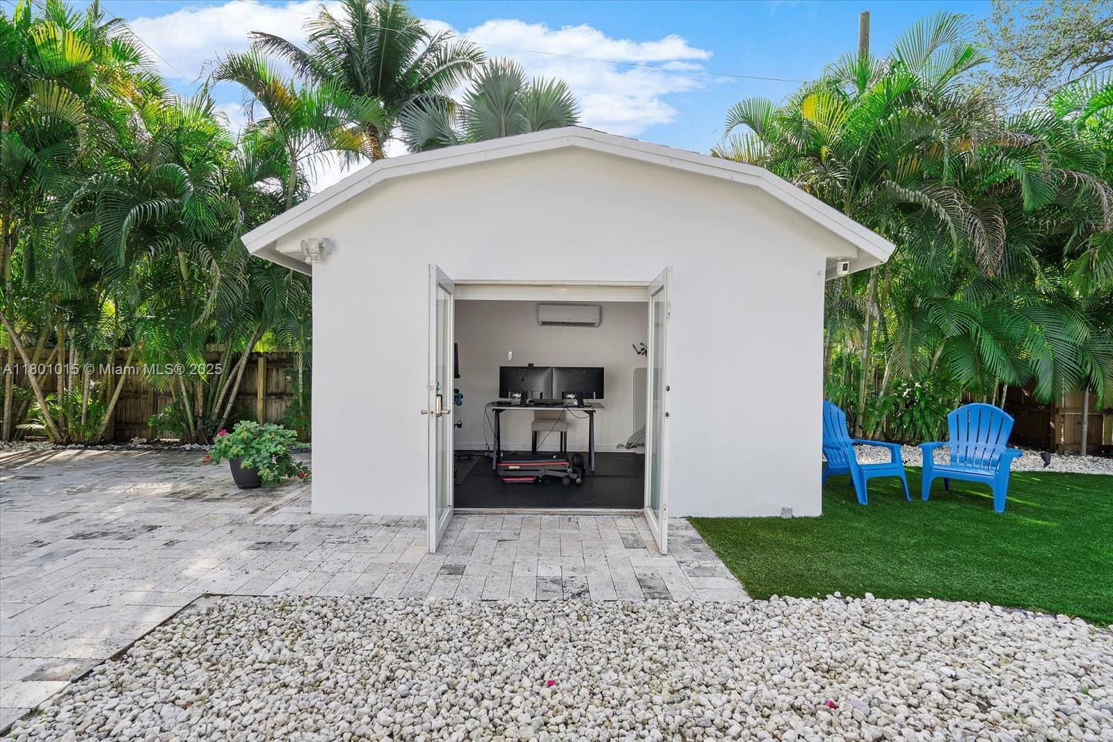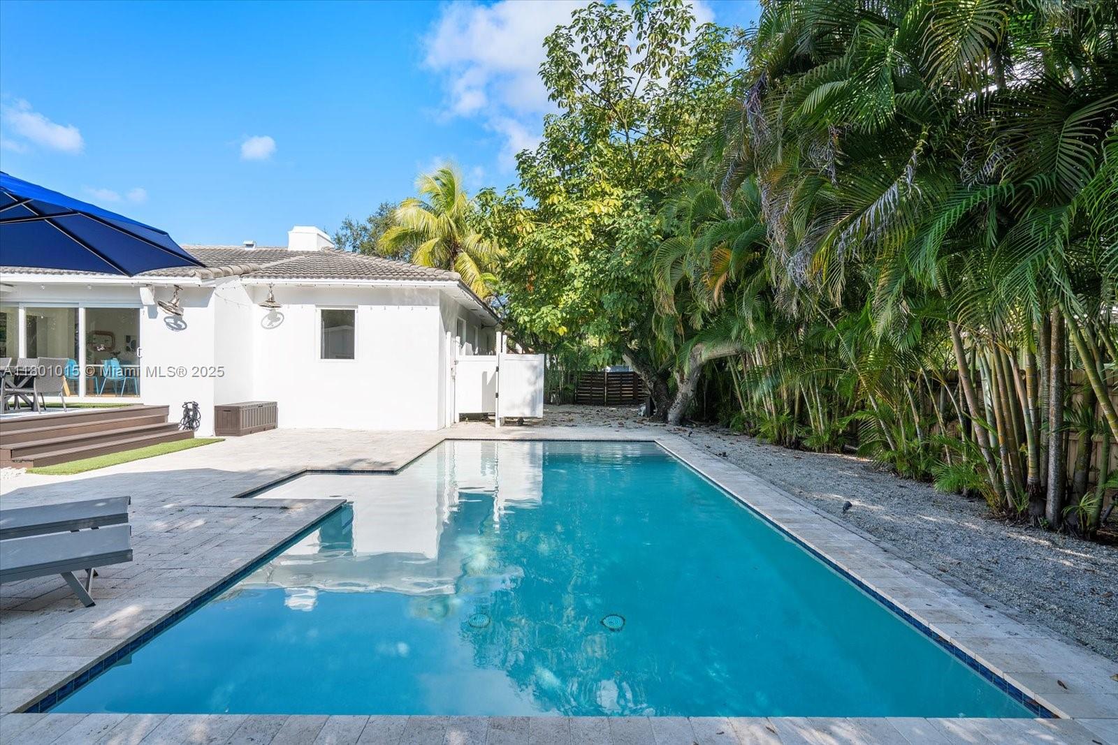 Step inside this exceptional Miami Shores residence, where style meets comfort in a prime cul-de-sac location. This stunning 3-bedroom, 3-bathroom home also features a 4th Flex Room and a fully air-conditioned detached studio, perfect for a home office, gym, or pool cabana. Designed for seamless indoor/outdoor living, the home is set on a double lot. The open floor plan boasts vaulted ceilings, updated kitchen and ample storage. The dining area flows effortlessly through sliding glass doors onto a covered deck and brand-new turf lawn. Additional highlights include a large circular driveway, recessed lighting, an electric car charger, a fully equipped outdoor security system, and a 2-zone AC system, & Impact windows. Near A+ schools.
