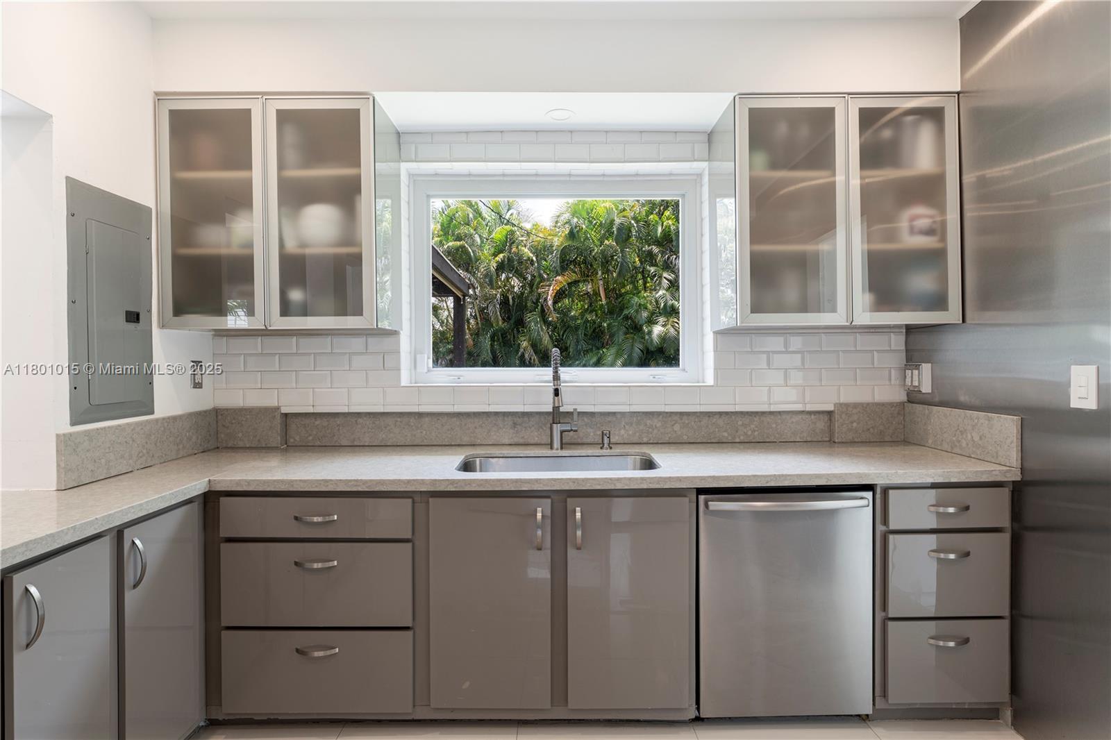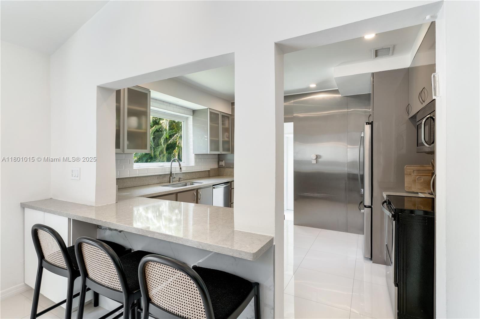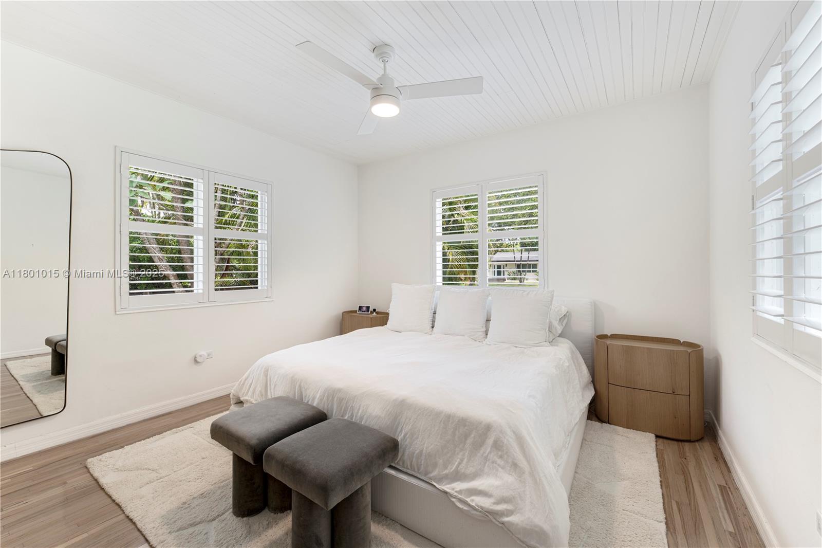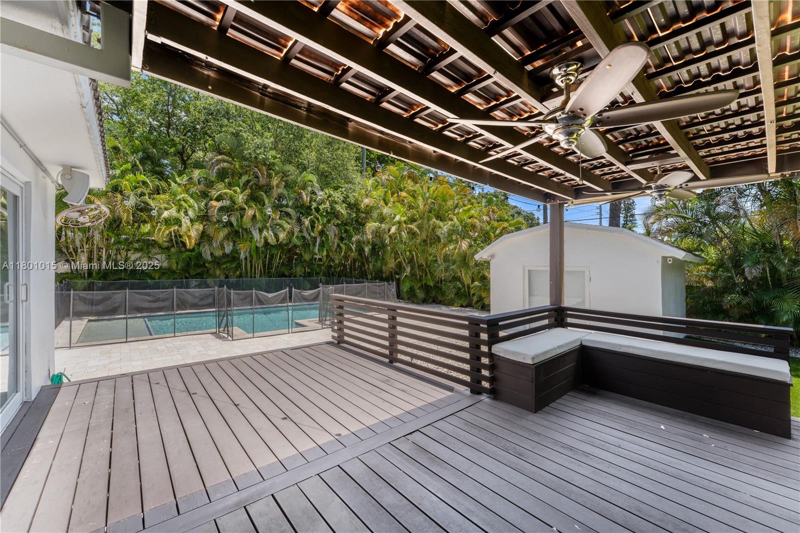 Step inside this exceptional Miami Shores residence, where style meets comfort in a prime cul-de-sac location. This stunning 3-bedroom, 3-bathroom home also features a 4th Flex Room and a fully air-conditioned detached studio, perfect for a home office, gym, or pool cabana. Designed for seamless indoor/outdoor living, the home is set on a double lot. The open floor plan boasts vaulted ceilings, updated kitchen and ample storage. The dining area flows effortlessly through sliding glass doors onto a covered deck and brand-new turf lawn. Additional highlights include a large circular driveway, recessed lighting, an electric car charger, a fully equipped outdoor security system, and a 2-zone AC system, & Impact windows. Near A+ schools.