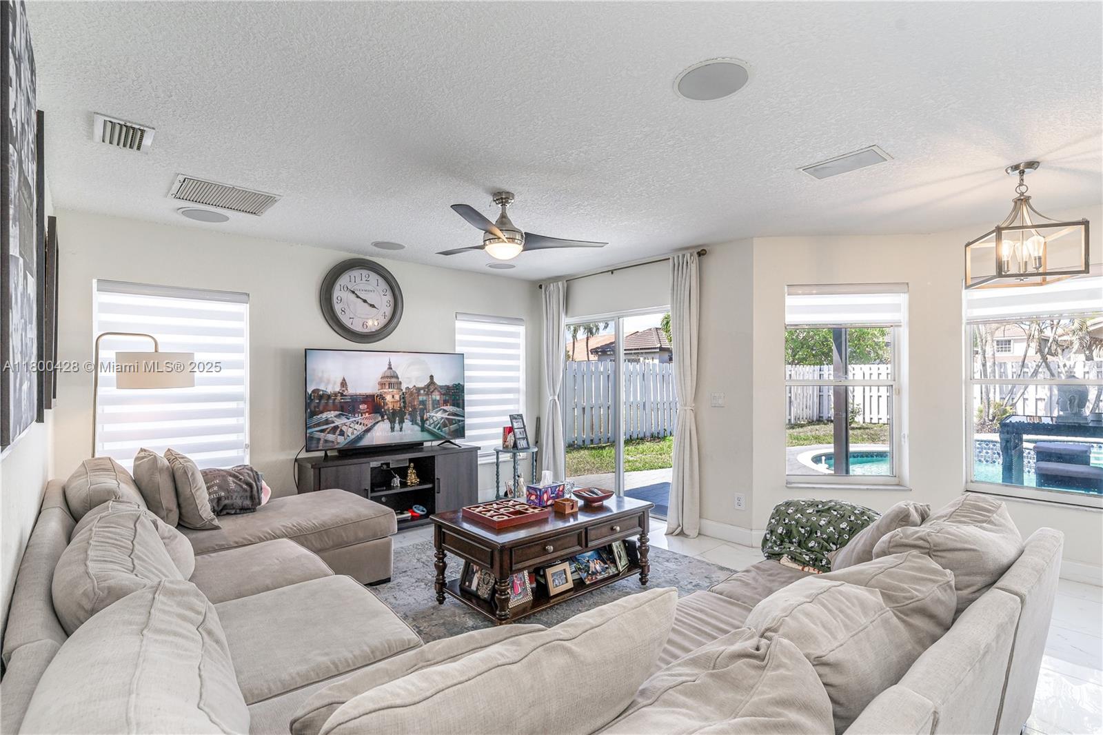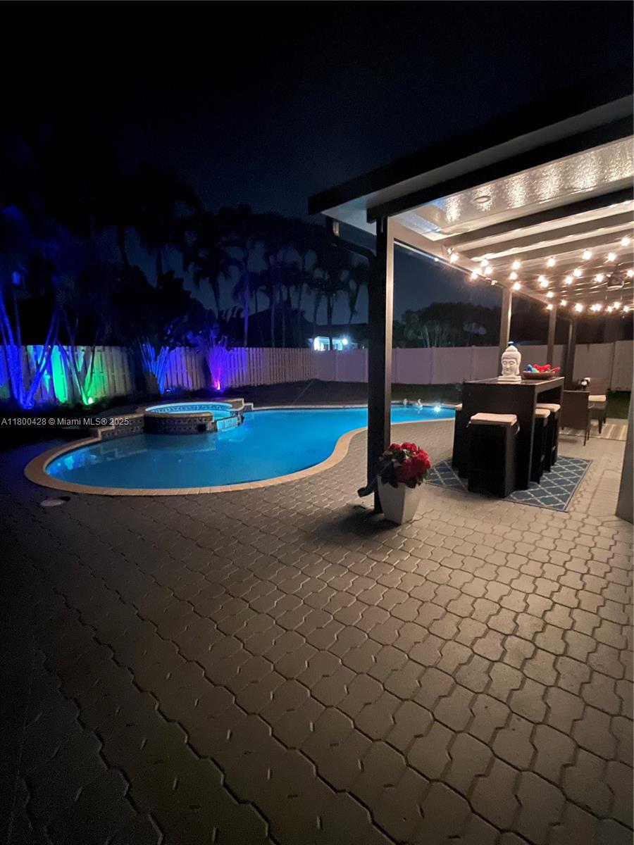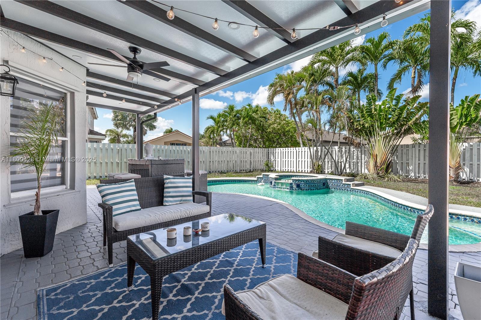 This stunning 4-bedroom, 3 full-bath home also features a spacious loft that can easily serve as a 5th bedroom. Soaring ceilings and abundant natural light greet you upon entry. Porcelain tile floors span the entire first floor, flowing into an updated kitchen with modern finishes. All bathrooms have been beautifully renovated. The home includes two brand-new A/C units, a new roof, and a new pool pump, offering comfort and peace of mind. Upstairs boasts fresh paint and warm laminate floors. The oversized backyard is perfect for entertaining, featuring a sparkling pool and a large pergola ideal for relaxing or hosting. With its flexible layout, stylish updates, and inviting outdoor space, this home is move-in ready. Schedule your private showing today!