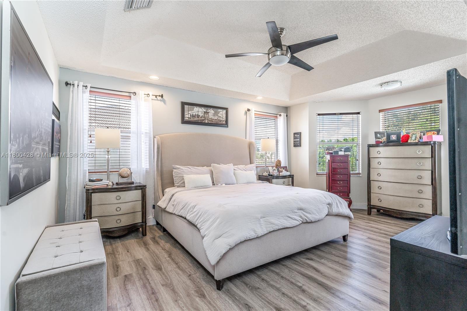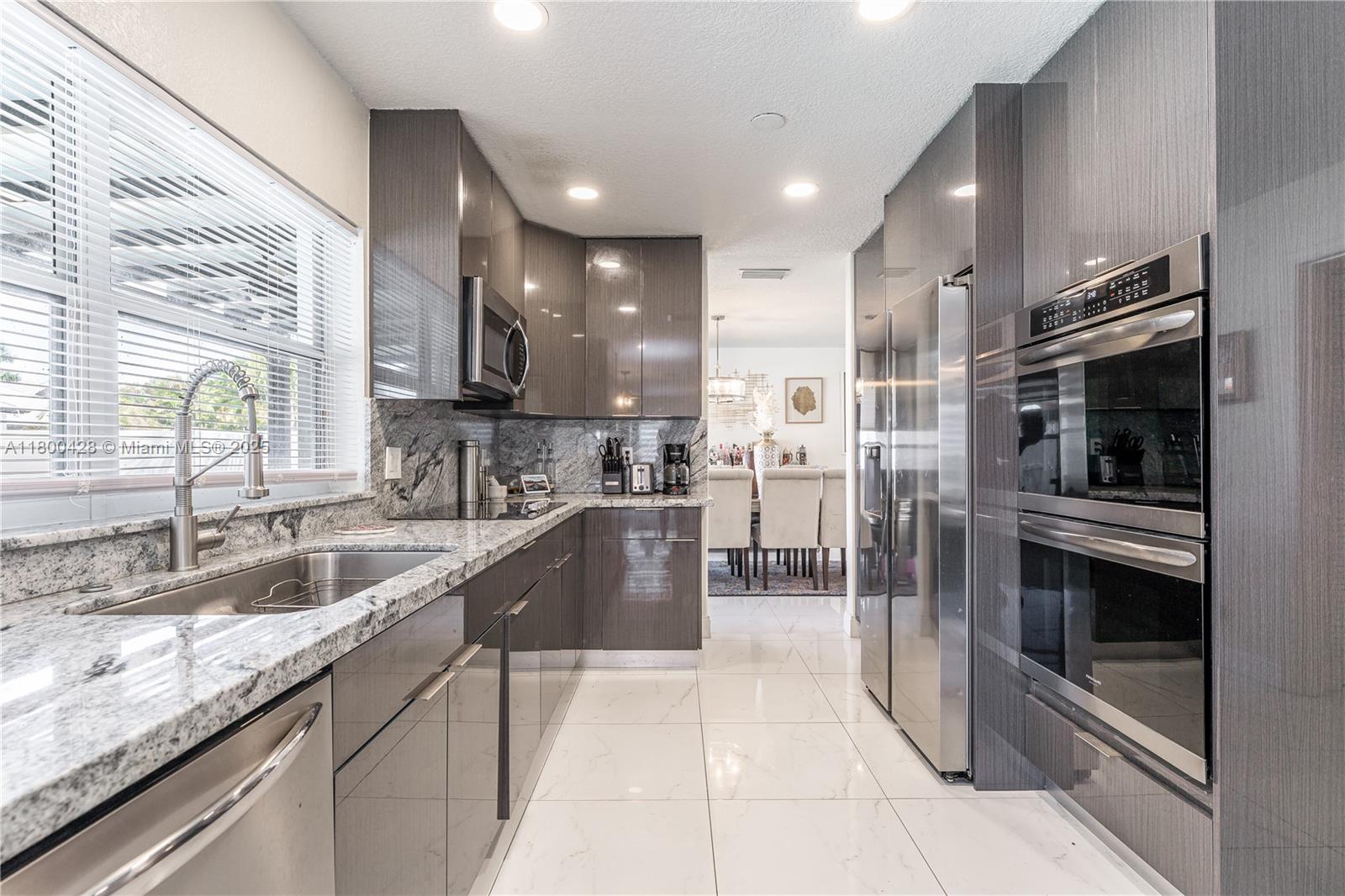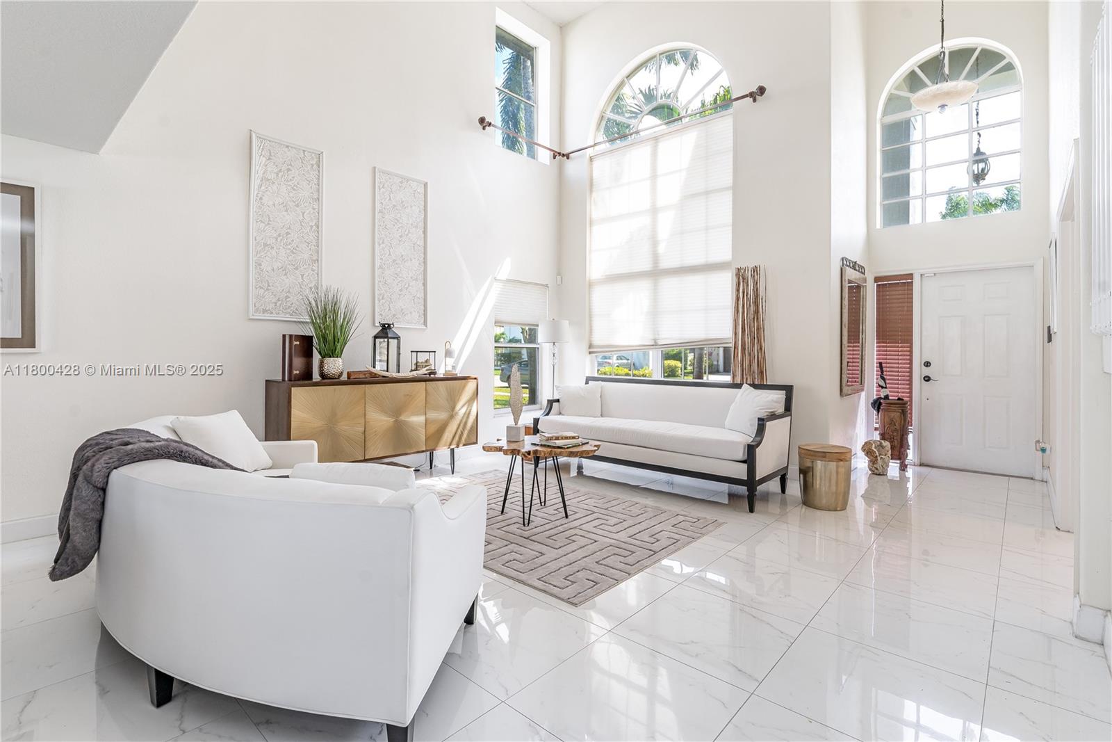 This stunning 4-bedroom, 3 full-bath home also features a spacious loft that can easily serve as a 5th bedroom. Soaring ceilings and abundant natural light greet you upon entry. Porcelain tile floors span the entire first floor, flowing into an updated kitchen with modern finishes. All bathrooms have been beautifully renovated. The home includes two brand-new A/C units, a new roof, and a new pool pump, offering comfort and peace of mind. Upstairs boasts fresh paint and warm laminate floors. The oversized backyard is perfect for entertaining, featuring a sparkling pool and a large pergola ideal for relaxing or hosting. With its flexible layout, stylish updates, and inviting outdoor space, this home is move-in ready. Schedule your private showing today!