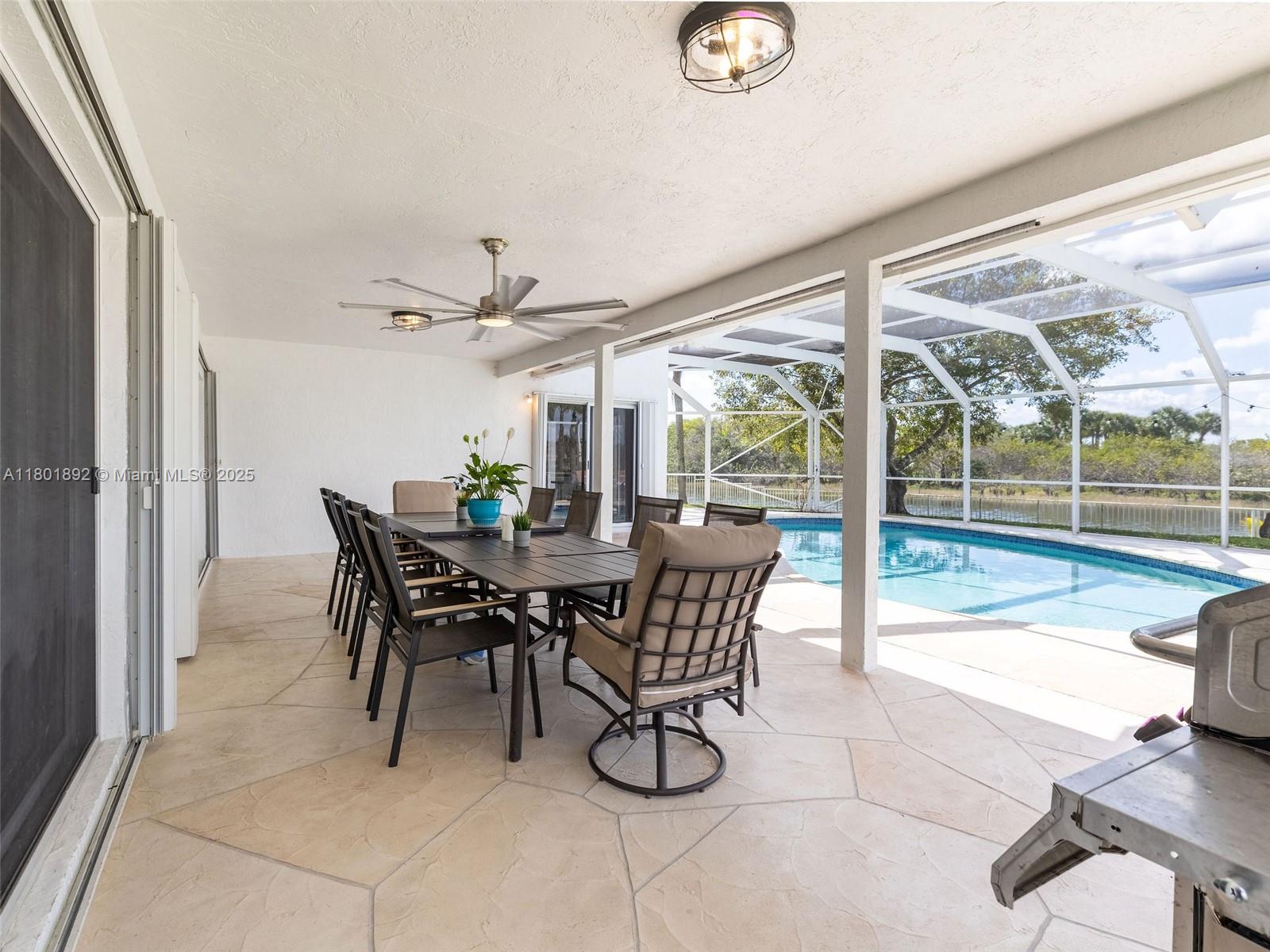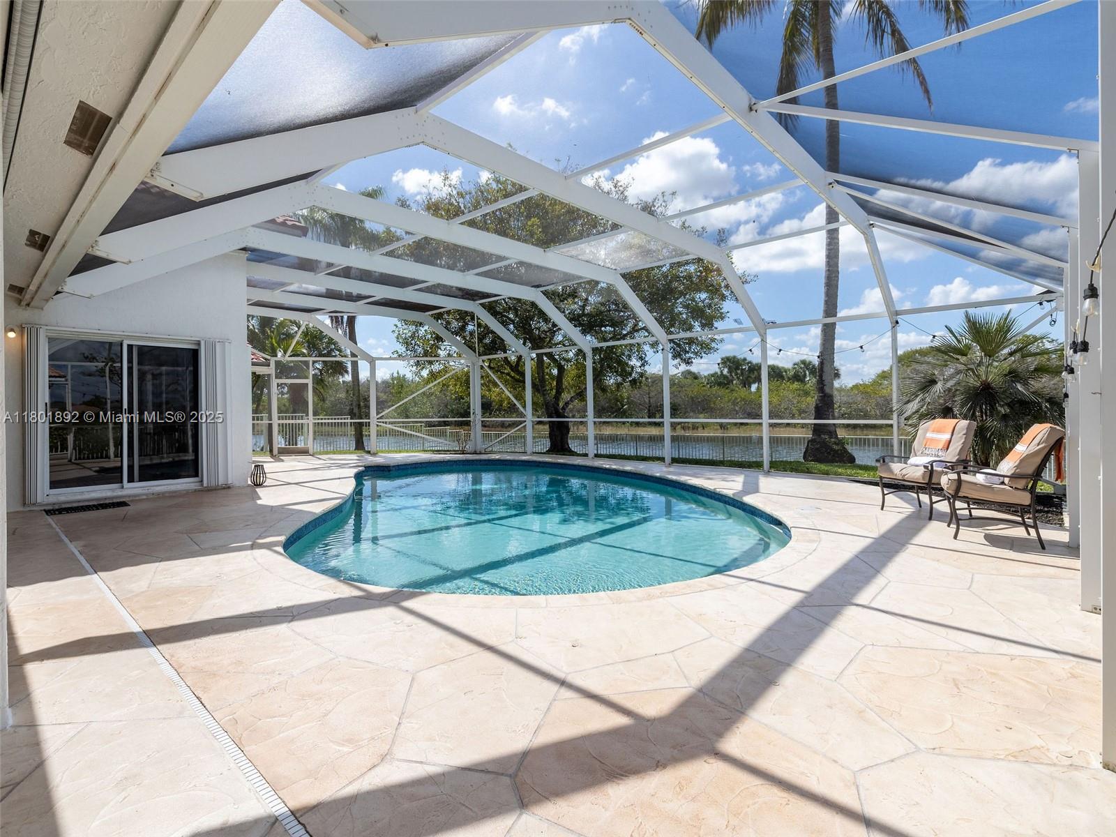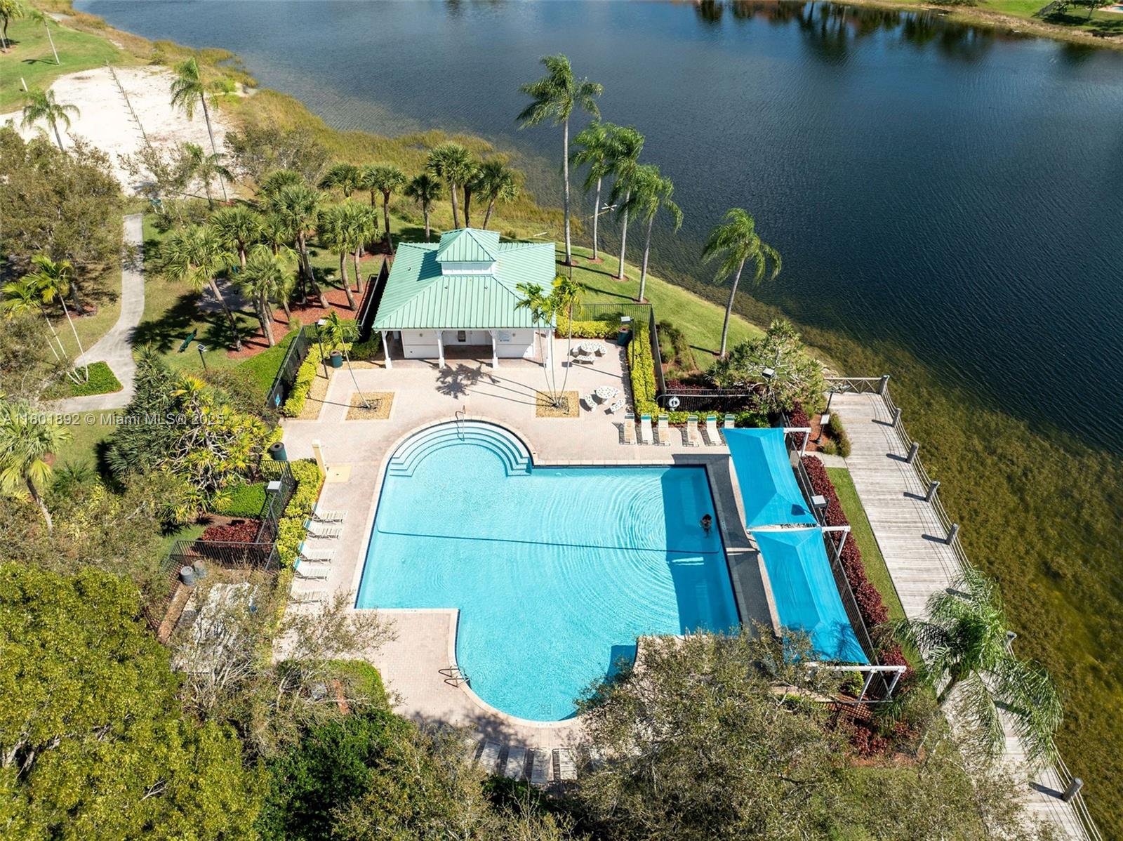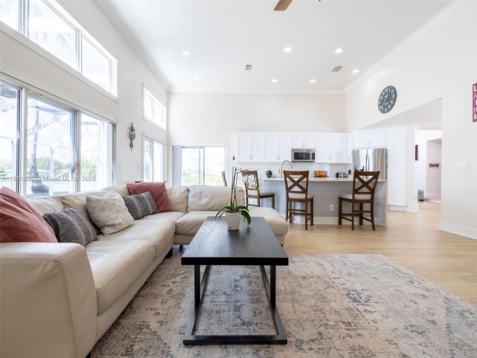 Fantastic lakefront/pool home in Silver Lakes! Gorgeous property at The Enclave, a gated subdivision. Updated 4/3.5 on an oversized, fully fenced pie-shape lot with 133 feet of lake views. Great layout, Open floor plan with 18' ceilings and full of light. Plenty of upgrades! Modern open kitchen with st steel appl(fridge 2024), quartz counters and oversized island with waterfall, overlooking the family room and backyard, ideal for entertaining. Primary bedroom and guest room on the 1st floor, for your convenience. Updated bathrooms, laundry room with sink, Hurricane proof garage door 2022, some impact windows, the rest all accordion shutters. Silver Lakes has great amenities incl. club house, pool, beach volley and walking paths around the entire Community.Cable and Internet incl. in maint.
