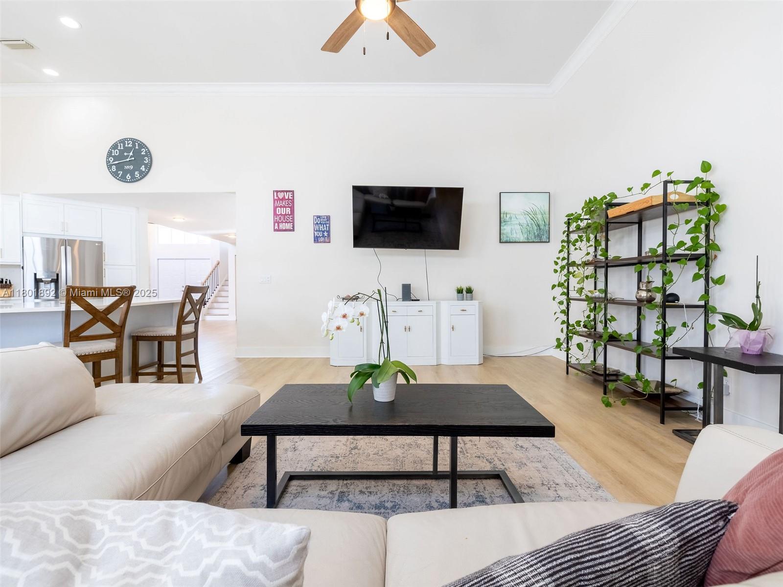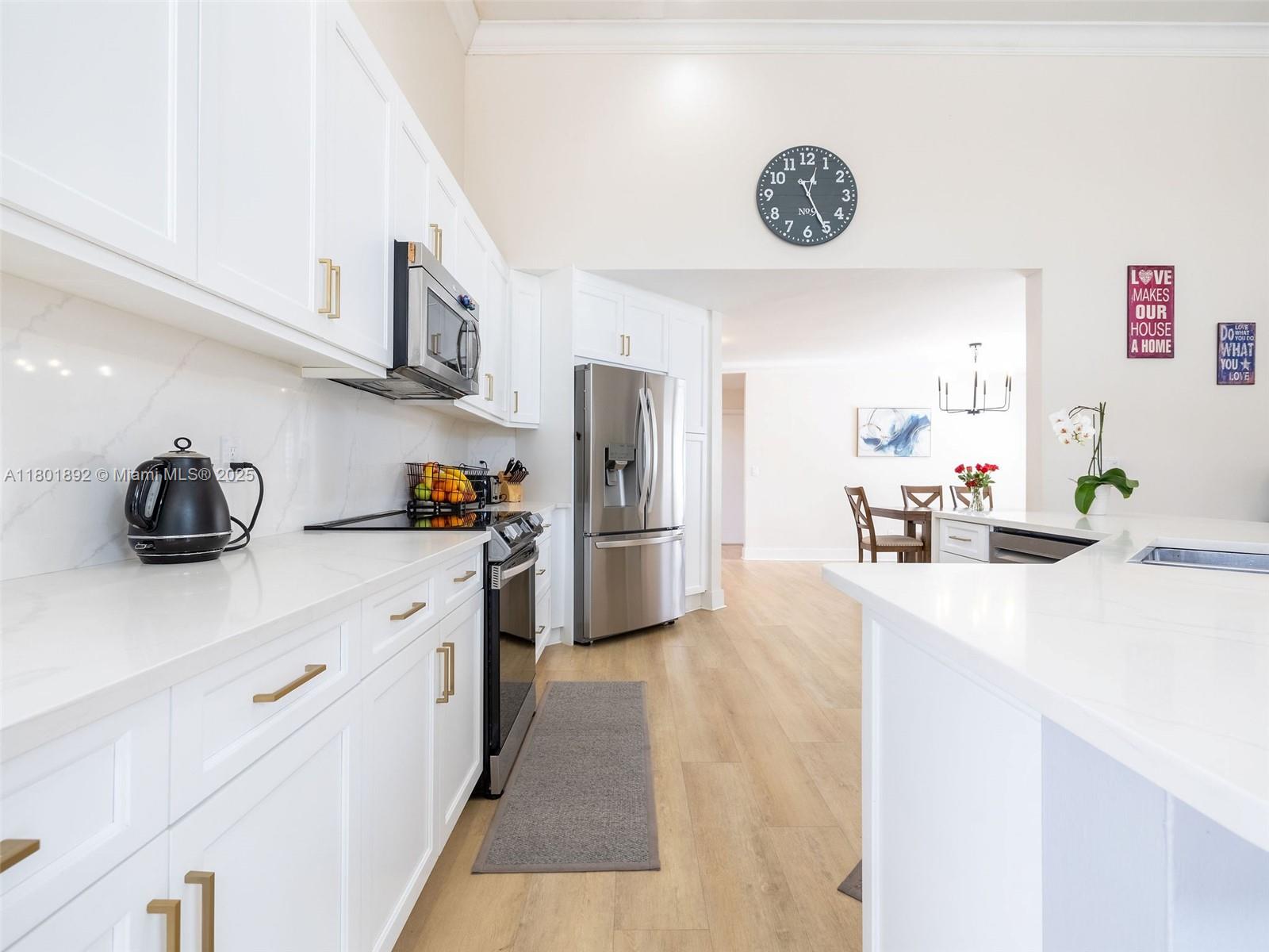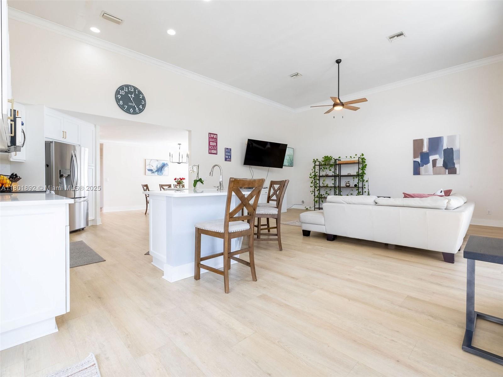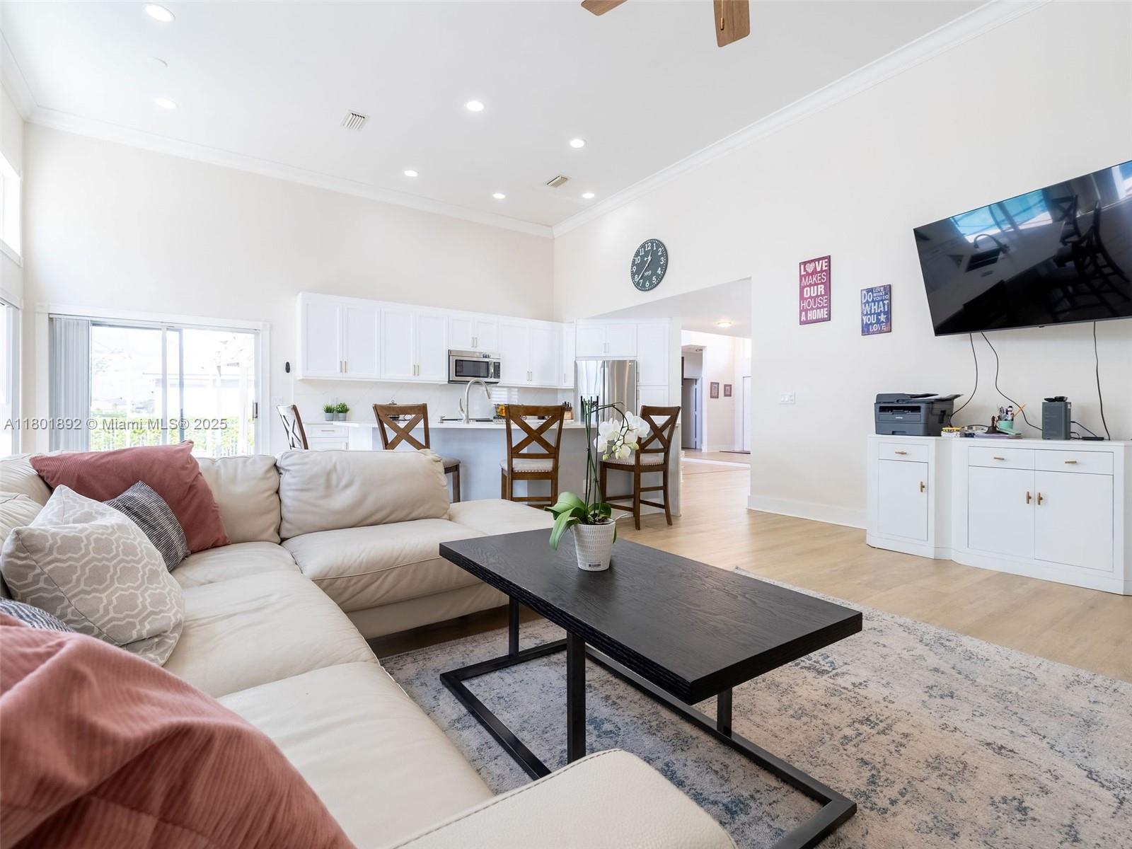 Fantastic lakefront/pool home in Silver Lakes! Gorgeous property at The Enclave, a gated subdivision. Updated 4/3.5 on an oversized, fully fenced pie-shape lot with 133 feet of lake views. Great layout, Open floor plan with 18' ceilings and full of light. Plenty of upgrades! Modern open kitchen with st steel appl(fridge 2024), quartz counters and oversized island with waterfall, overlooking the family room and backyard, ideal for entertaining. Primary bedroom and guest room on the 1st floor, for your convenience. Updated bathrooms, laundry room with sink, Hurricane proof garage door 2022, some impact windows, the rest all accordion shutters. Silver Lakes has great amenities incl. club house, pool, beach volley and walking paths around the entire Community.Cable and Internet incl. in maint.