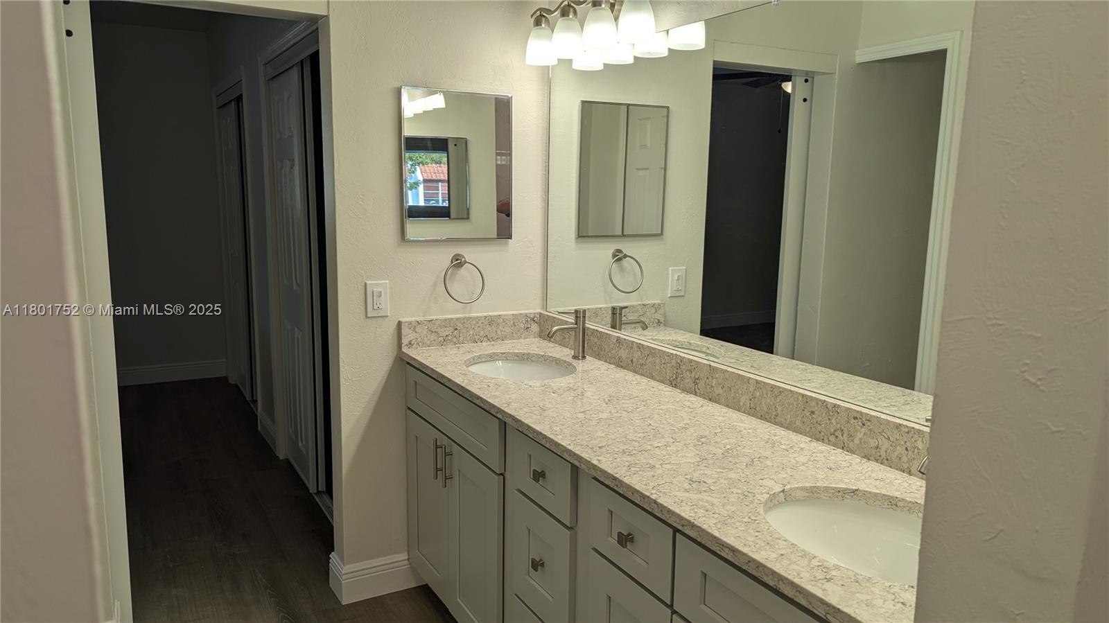 Amazing 2 bed/2.5 bath townhouse in Palm Springs Villas Hialeah. Fully remodeled, brand new stainless steel appliances , tile and laminate floors , breakfast nook area in the kitchen and a lot of cabinet space. Master bathroom with dual sink , huge balcony accessible from the master bedroom. Impact windows on the second floor , new doors and windows . Large laundry room on the first floor , small storage room below the stairs . Outdoor patio has an extended roof. Property is located close to Amelia Earhart Park "VERY LOW HOA. FEE $ 19.00 Monthly" seller is going to give a $ 1,000 credit for washer and dryer at closing time.
