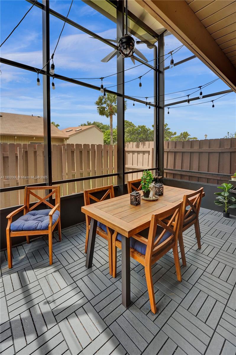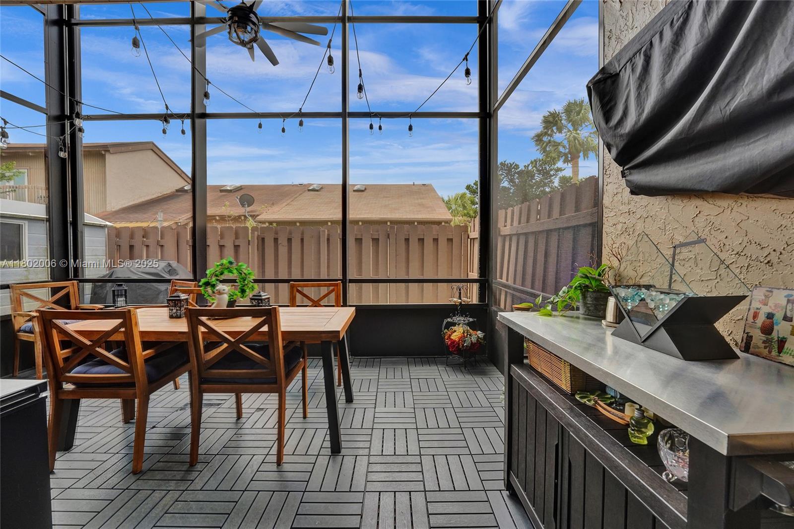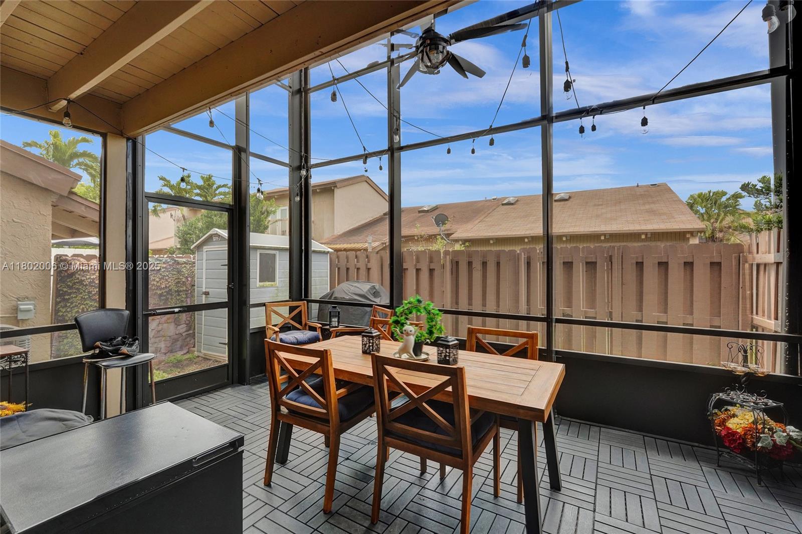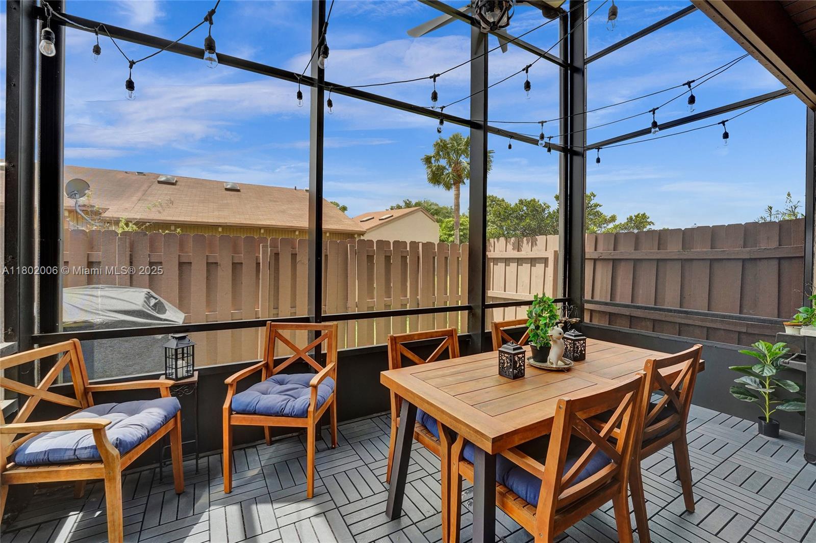 Priced below recent independent appraisal—great value! Stunning 2-bed, 2-bath townhome in highly sought-after Escape at Arrowhead community near Nova University. Features include a brand-new roof, stylish laminate flooring, a spacious screened-in porch, and accordion hurricane shutters for storm protection. Open-concept living and dining area flows into a modern kitchen with plenty of storage. The upstairs loft includes a cozy nook perfect for a home office or study space. The master suite boasts two large walk-in closets and a private bath. Enjoy outdoor living on both front and rear patios with scenic golf course views. This pet-friendly community has a pool, tennis courts, and more. No rental restrictions. Easy access to I-75, Turnpike, I-95, shopping, dining, and entertainment.