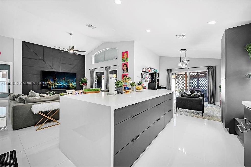 Tastefully updated Single Family Home in Encantada. This 4/3, 2 Car Garage, Home has been fully renovated inside and outside. Open floor plan, w/ split bedrooms. Home has a beautifull patio. Porcelain tiles throughout, Brand New Contemporary Kitchen with Quartz tops, and Custom Cabinetry. SS Kitchen Appliances. Bathrooms, recently fully renovated with Custom Showers, Vanities, & Rain Shower Heads. High Impact windows.A/C 2021, Association offers great amenities including heated Community Pool, and Kiddie Pool, Club House, Fitness Center, Tennis, Basketball, and Volleyball courts, and Kiddie playground. Close to shoppings, schools, and many restaurants.