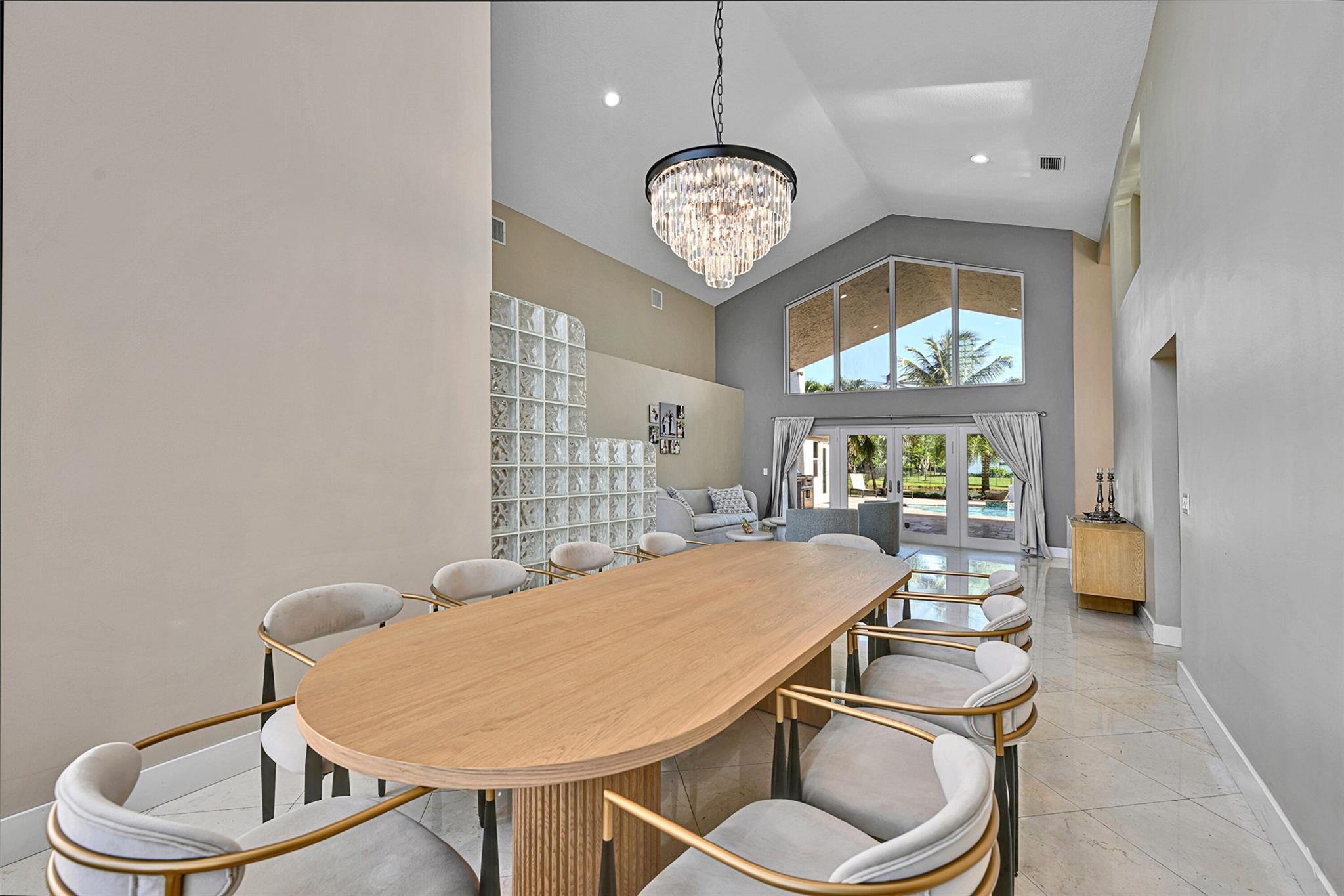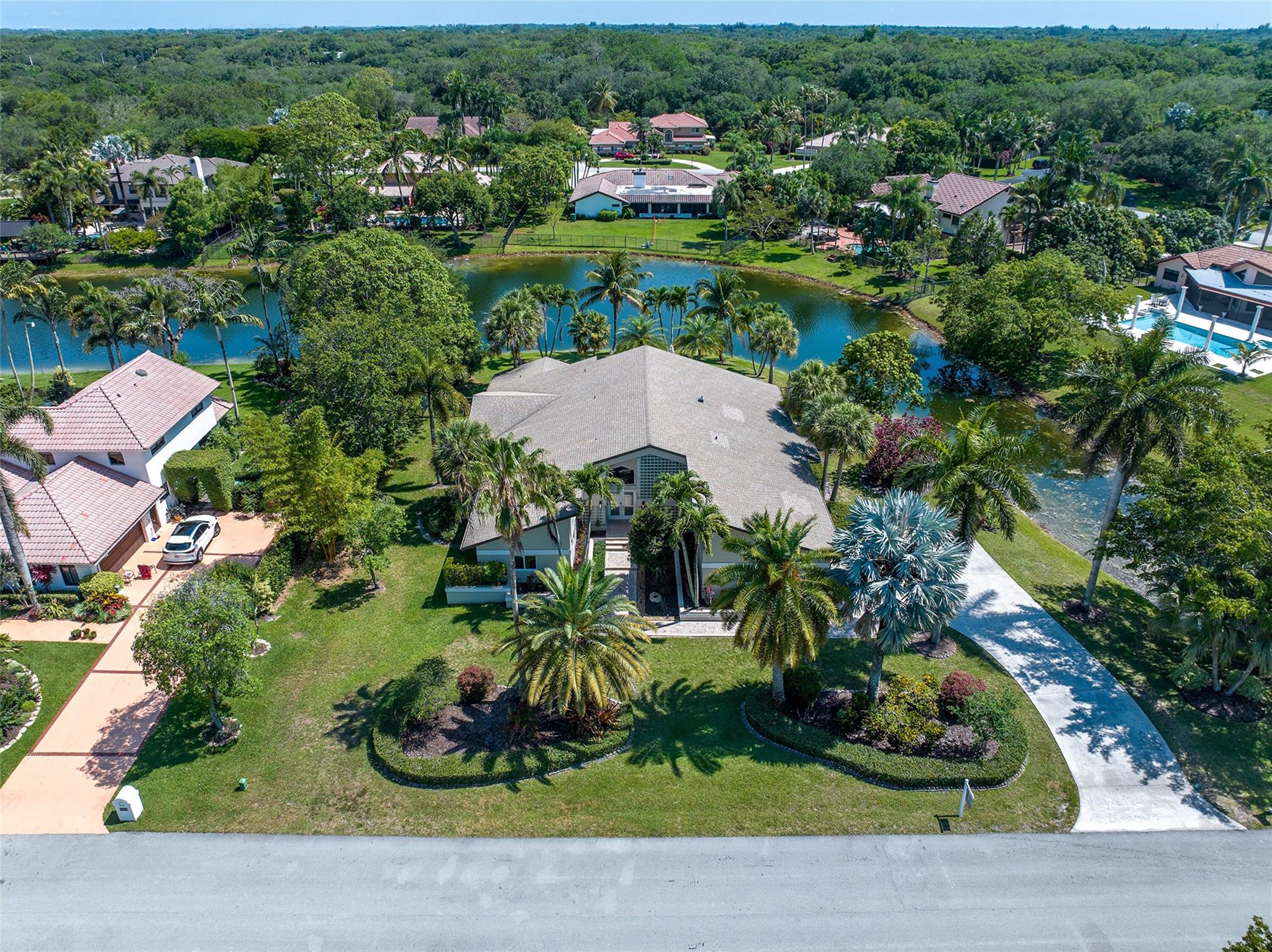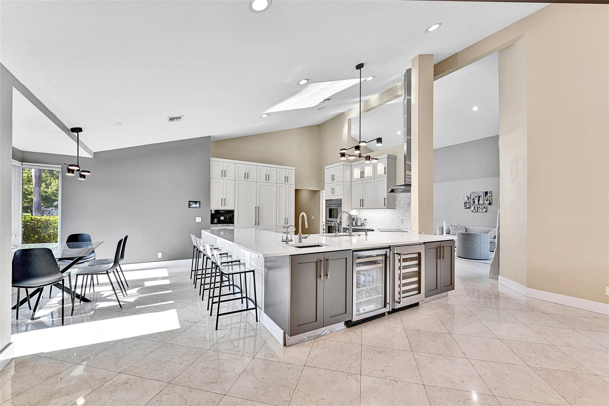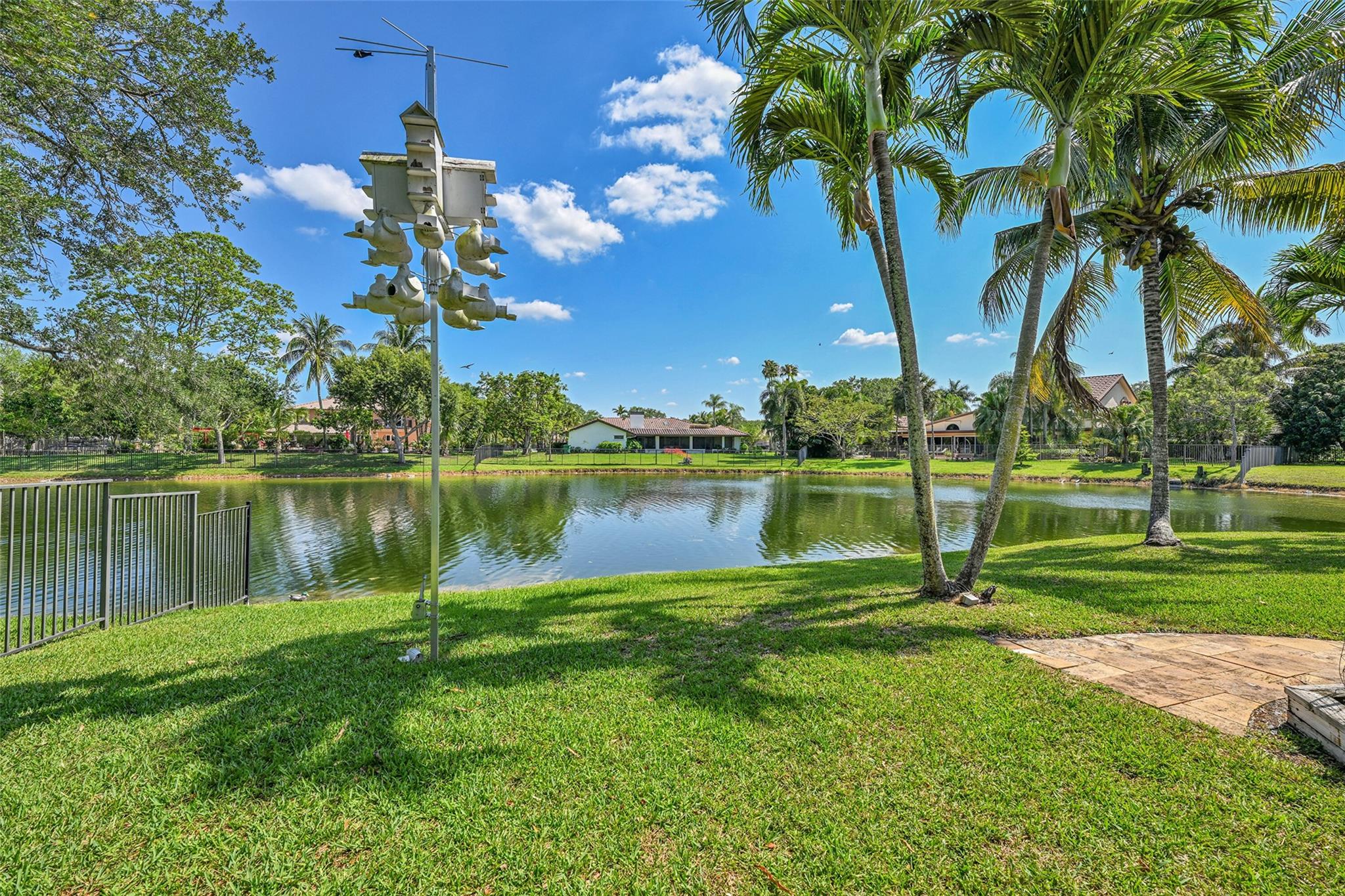 Discover refined living in the highly desirable Whispering pines community- where every home is uniquely crafted and surrounded by lush landscapes, peaceful water views and the soothing sounds of nature. This 5-bed, 3.5-bathroom estate is set on a builder's acre and offers the perfect balance of elegance and comfort. Designed with soaring 31-foot ceilings, the home features marble flooring in common areas, hardwood floors in bedrooms, and built in closets throughout. The oversized primary bedroom overlooks the pool. At the heart of the home is a chef-inspired kitchen outfitted with Thermador appliances and built in Miele coffee system. Step outside to your resort style backyard with heated pool, stunning water views, and a brand new in ground basketball hoop. This rare find won't last.