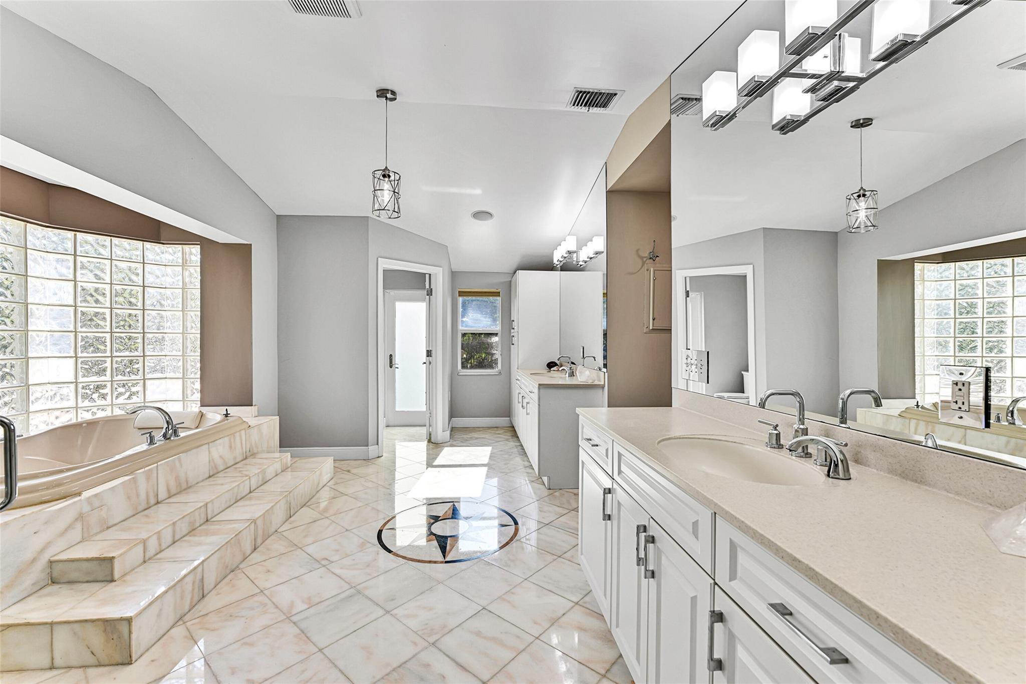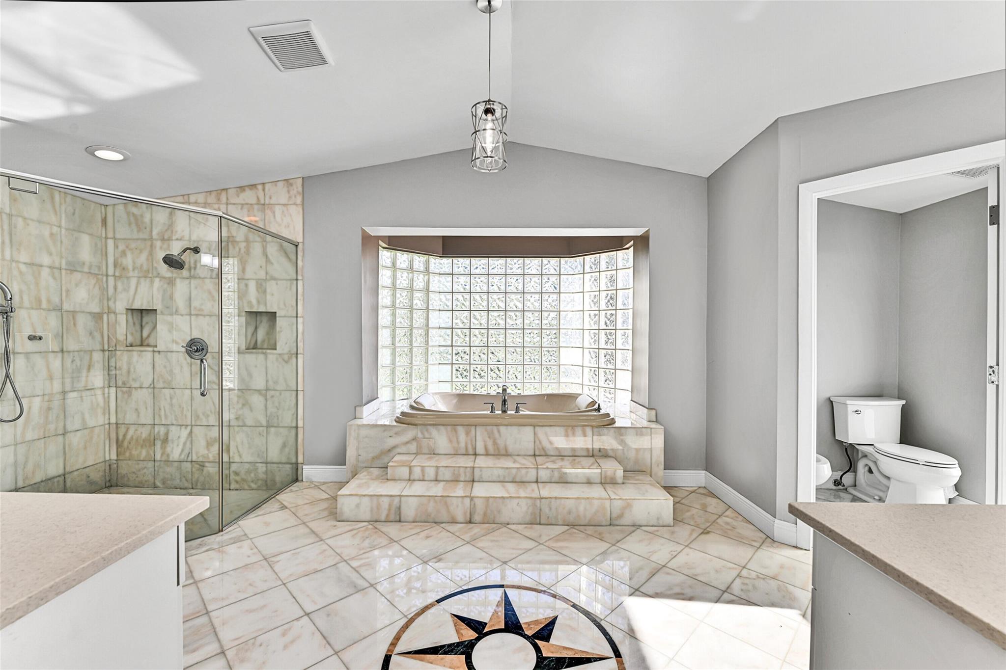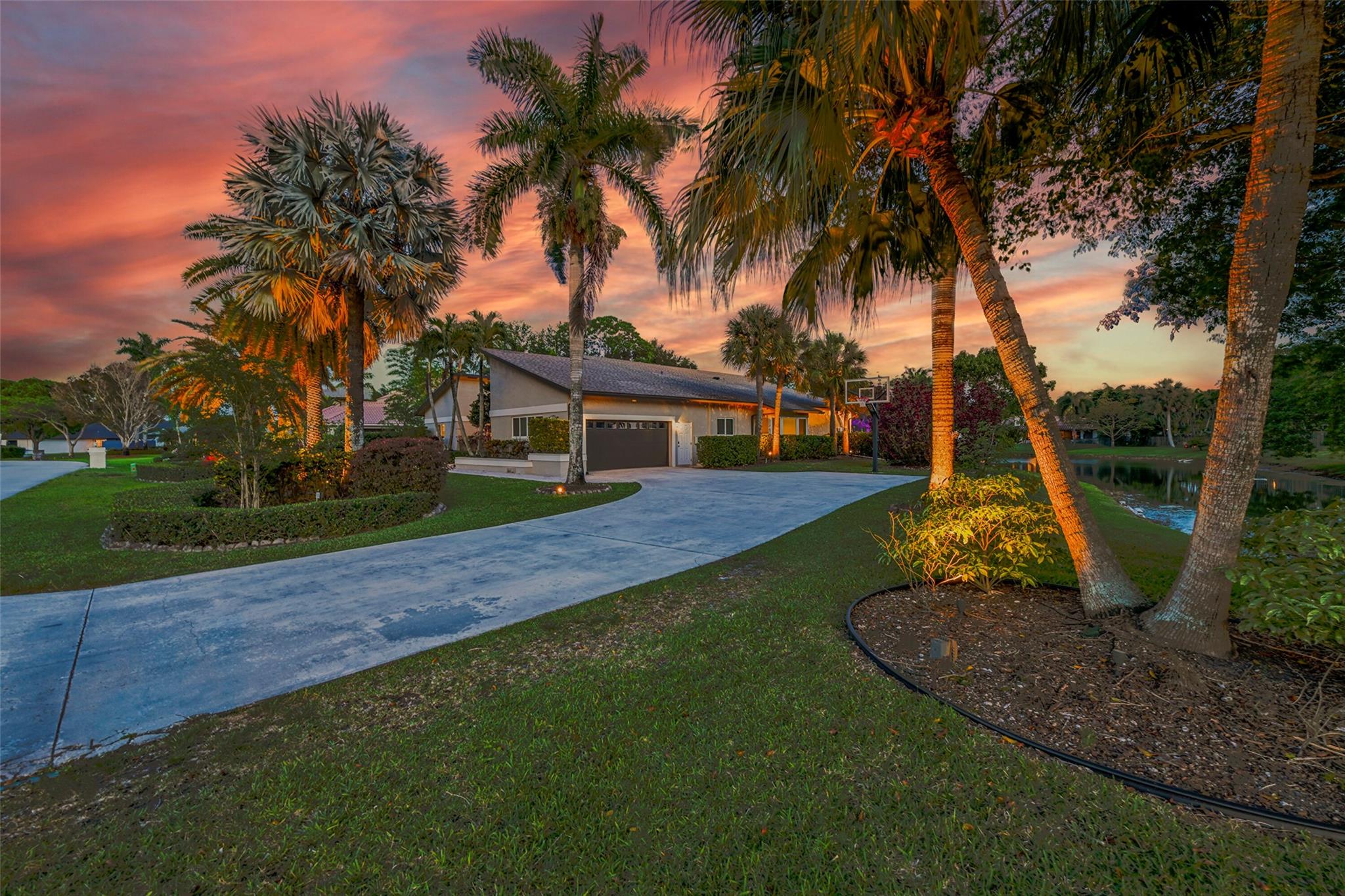 Discover refined living in the highly desirable Whispering pines community- where every home is uniquely crafted and surrounded by lush landscapes, peaceful water views and the soothing sounds of nature. This 5-bed, 3.5-bathroom estate is set on a builder's acre and offers the perfect balance of elegance and comfort. Designed with soaring 31-foot ceilings, the home features marble flooring in common areas, hardwood floors in bedrooms, and built in closets throughout. The oversized primary bedroom overlooks the pool. At the heart of the home is a chef-inspired kitchen outfitted with Thermador appliances and built in Miele coffee system. Step outside to your resort style backyard with heated pool, stunning water views, and a brand new in ground basketball hoop. This rare find won't last.